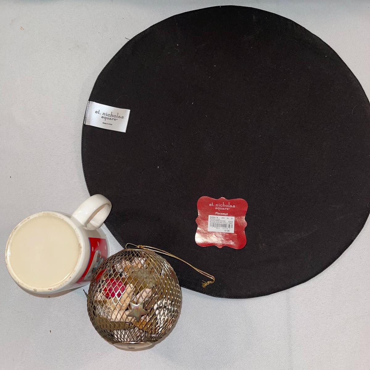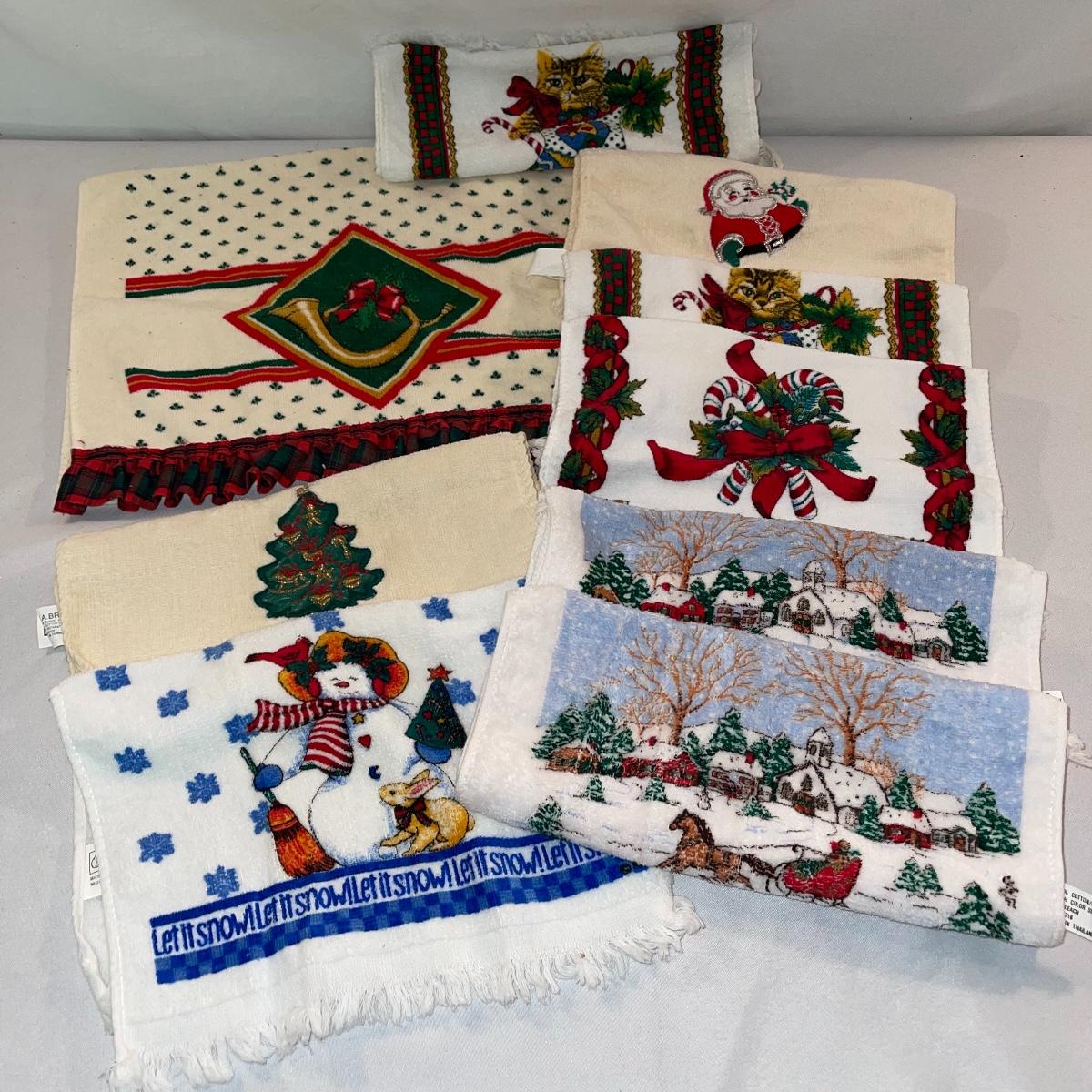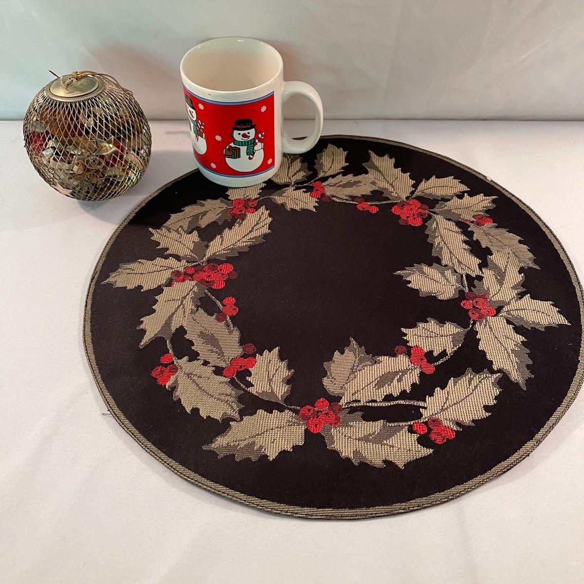 Christmas has come early for the winning bidder of this gigantic assortment of festive fare! Included are four Polar Express by Hallmark dinner plates, various mugs, place mats, angel statues, assorted hand towels, a flag, pillows, a throw blanket, candle holders, various dishes, two baskets, two table cloths, and more! The small tapestry pillows are approximately 12” x 12”. See pics to witness the true scope of this beautiful Christmas collection.