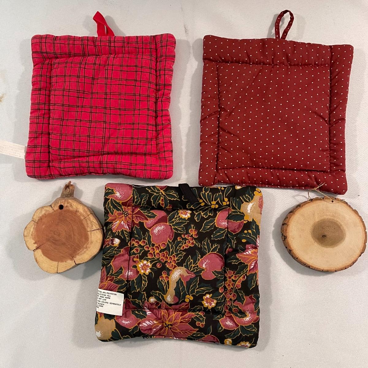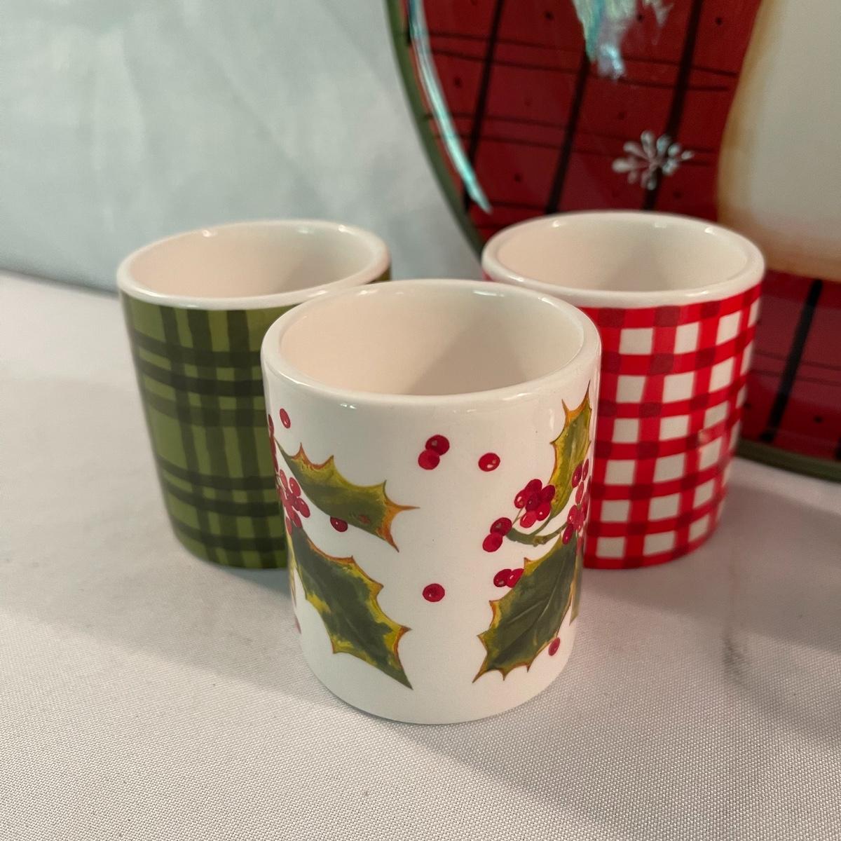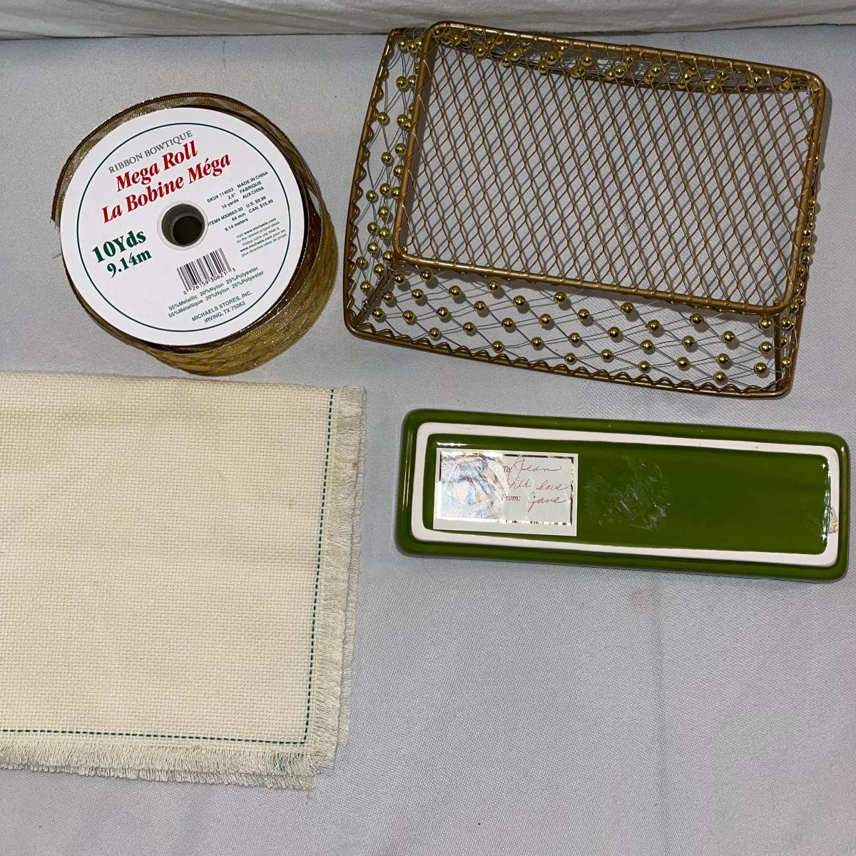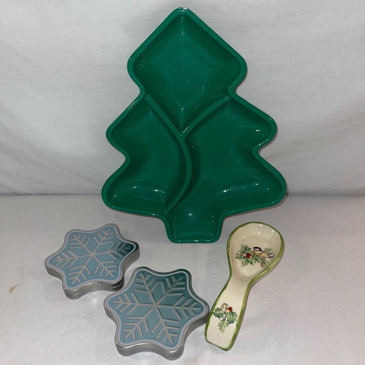 Christmas has come early for the winning bidder of this gigantic assortment of festive fare! Included are four Polar Express by Hallmark dinner plates, various mugs, place mats, angel statues, assorted hand towels, a flag, pillows, a throw blanket, candle holders, various dishes, two baskets, two table cloths, and more! The small tapestry pillows are approximately 12” x 12”. See pics to witness the true scope of this beautiful Christmas collection.