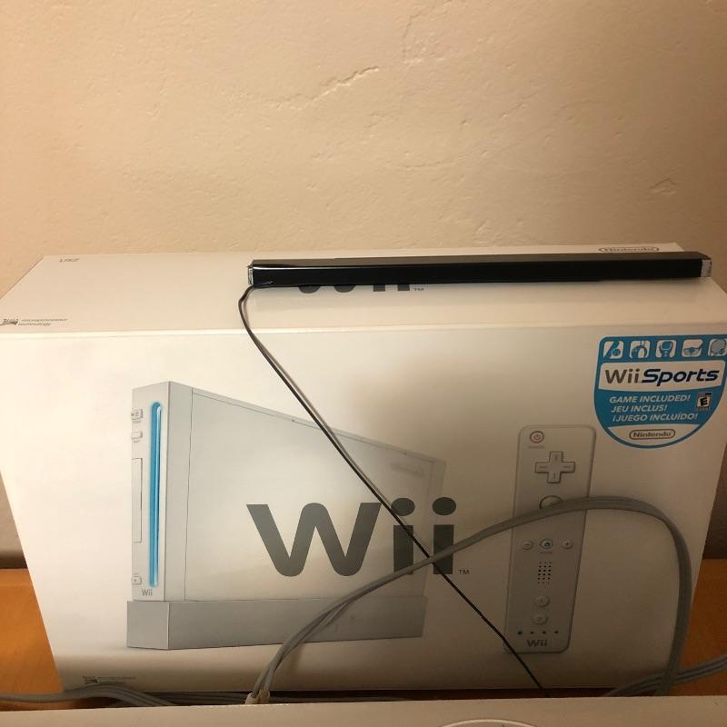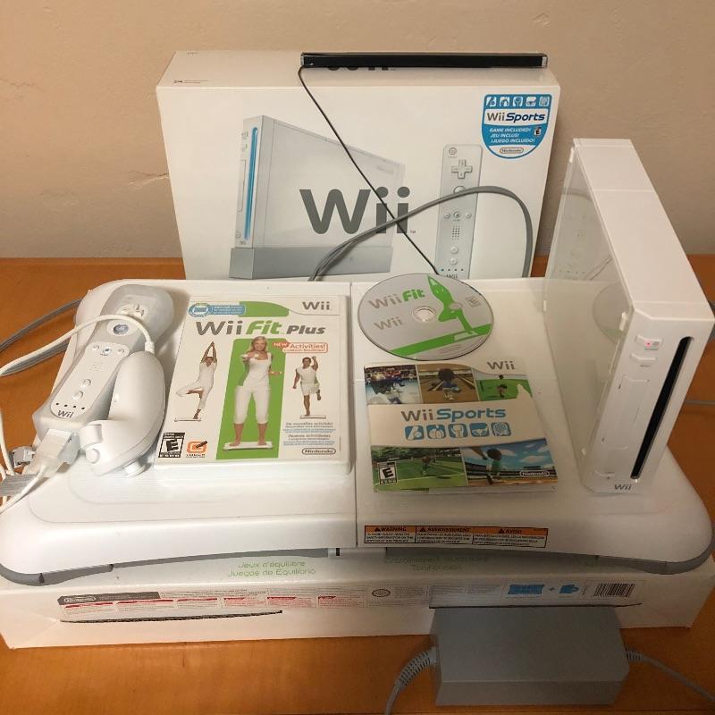 Like new Nintendo Wii sports with remote, remote attachment, WiFi mat. Has original boxes and all cords. Console comes on when plugged in. Booklet, and CDs included. Shipping available. No excuses for not exercising when you have to stay at home!