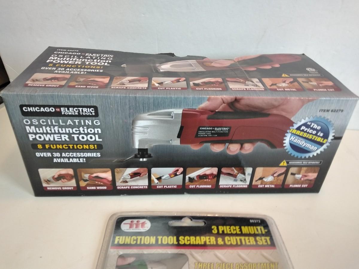 8 FUNCTION, CHICAGO ELECTRIC OSCILLATING MUTIFUNCTION POWER TOOL WITH BLADES