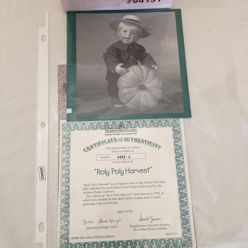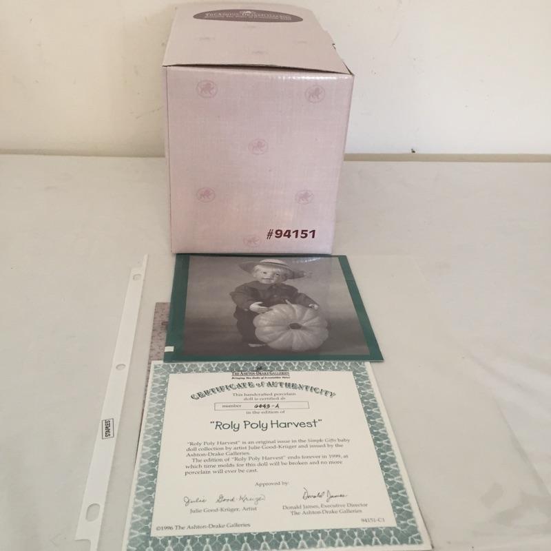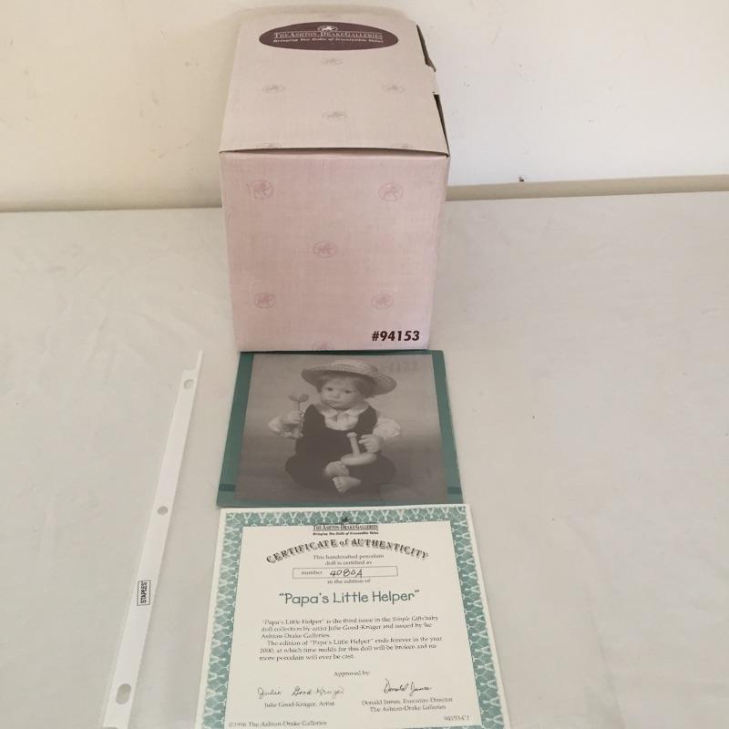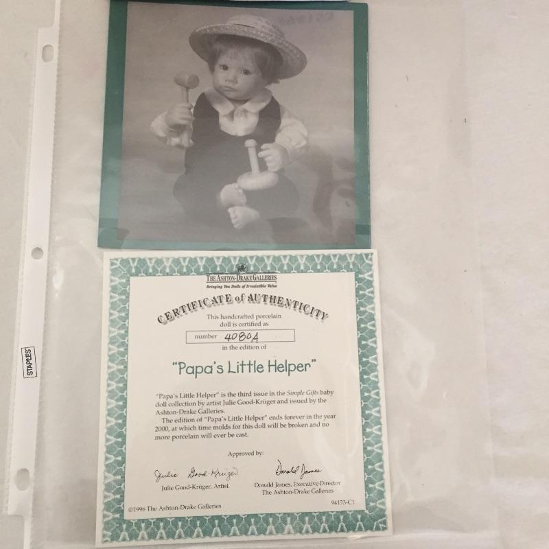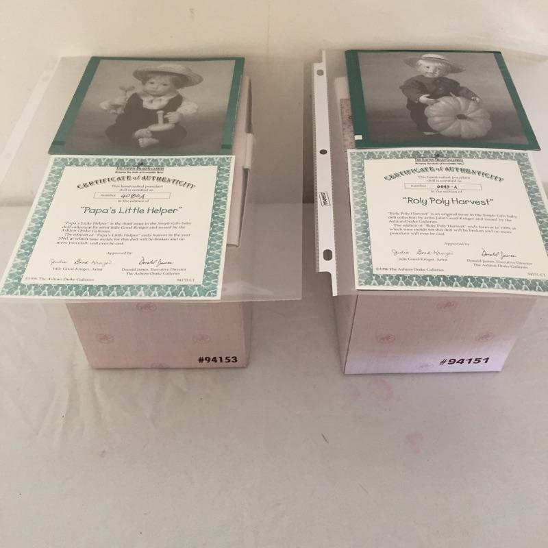 Simple Gifts Collection Dolls by Ashton-Drake includes Roly poly harvest and Papa’s little helper with hammer. Both with COA.