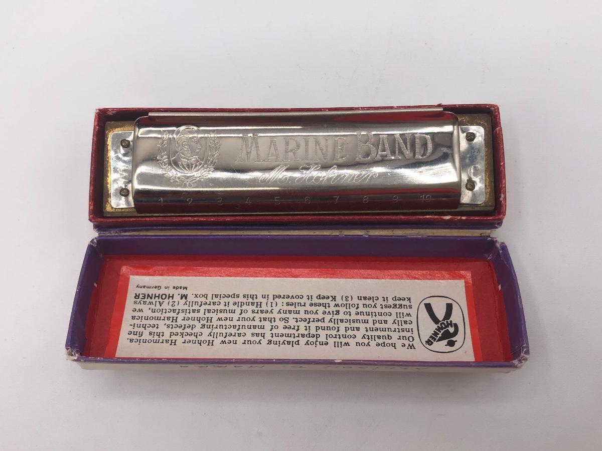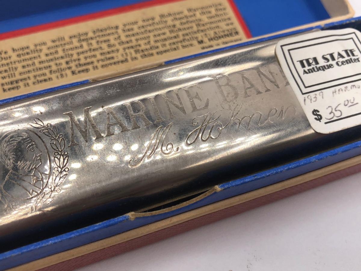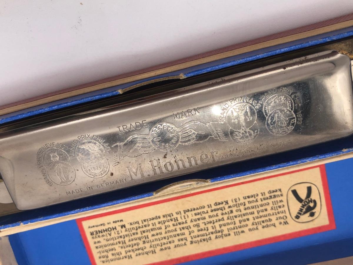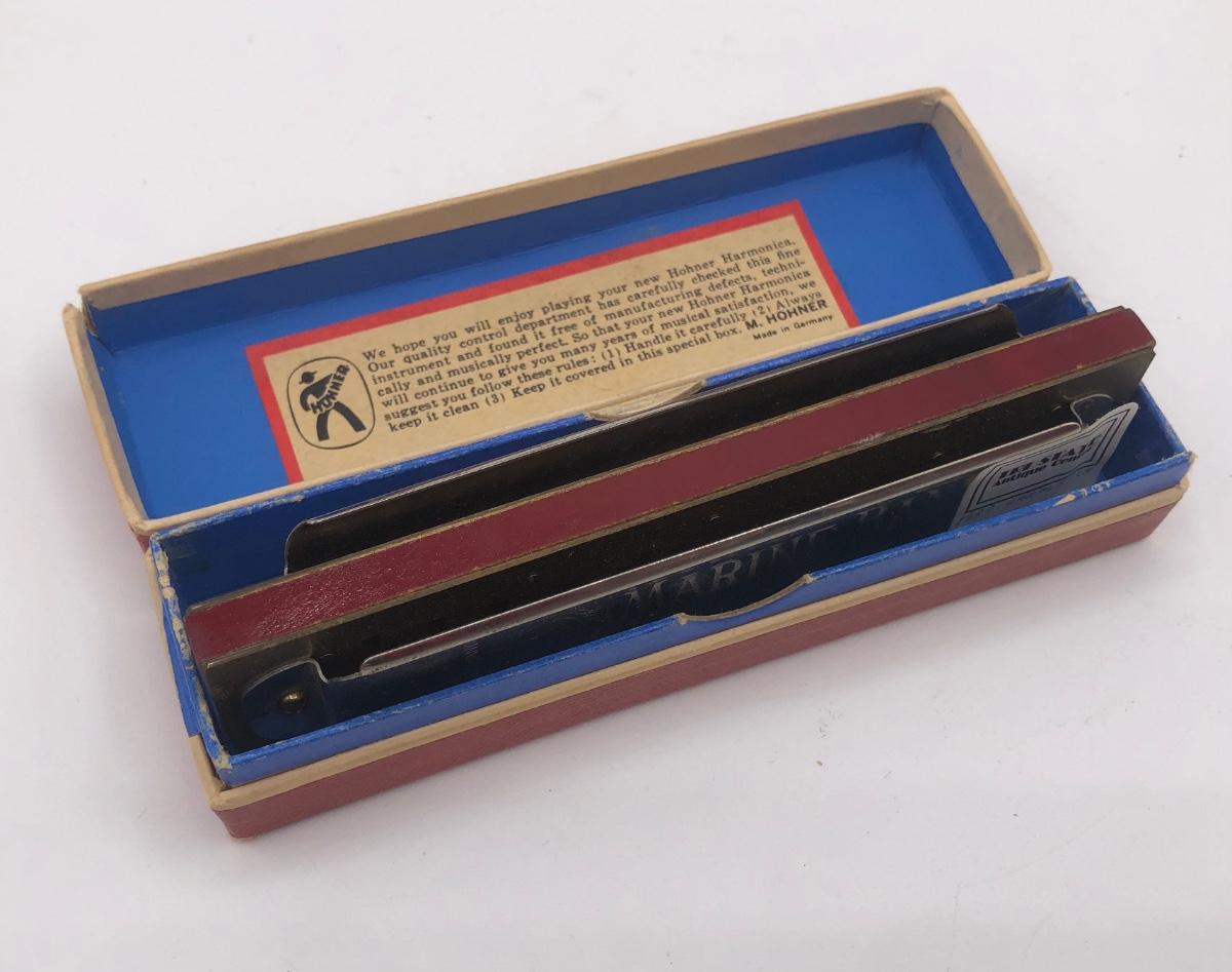 LOT 272F: Vintage M Hohner Harmonicas - 1939 Marine Band w/ Box, Marine Band No 1896 w/ Box & Blues Harp in Special 20 Case