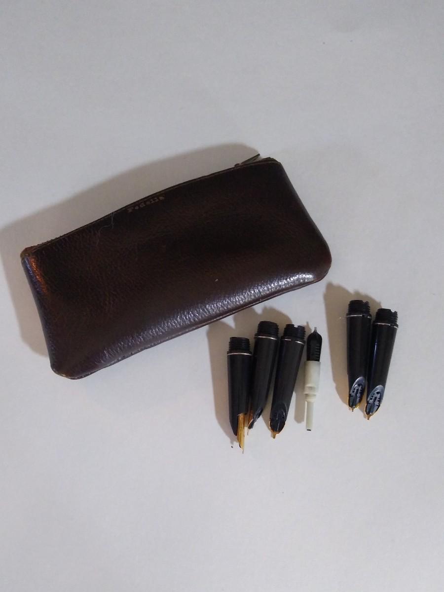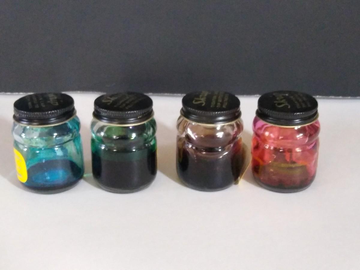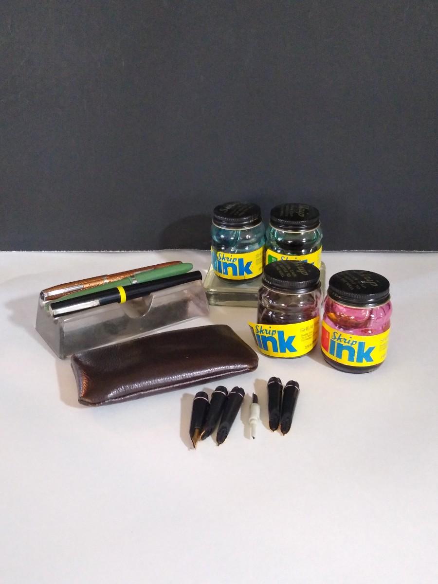 LOT 272L: Set of Vintage Calligraphy Pens, Ink & Clear Glass Stand and Tray