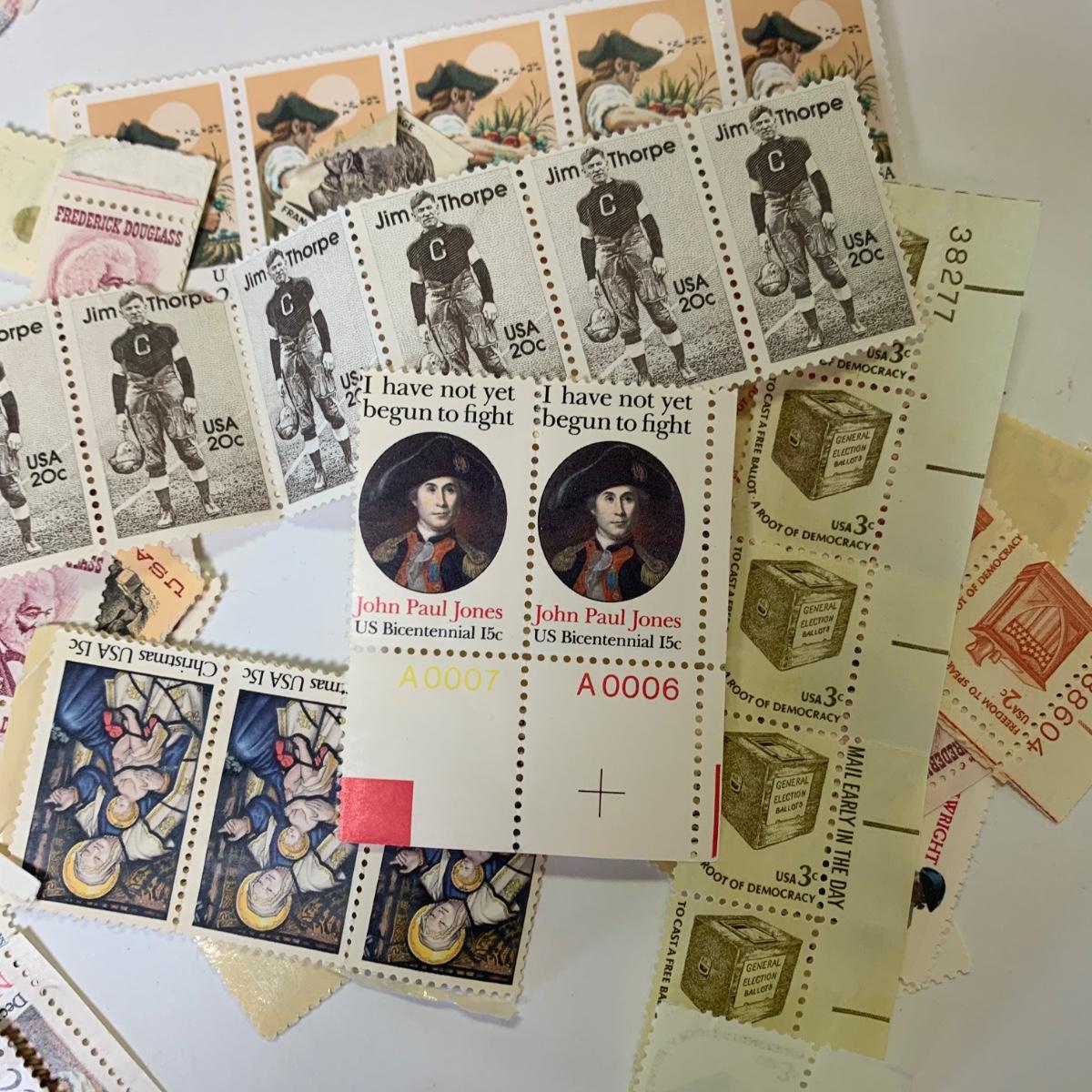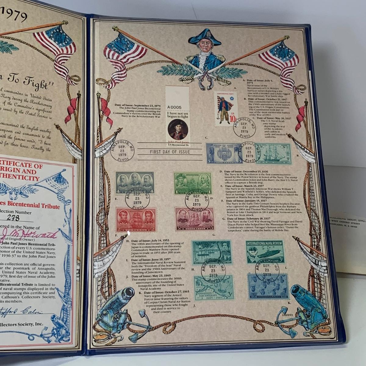 A collection of loose stamps is included with the official John Paul Jones Tribute folder.