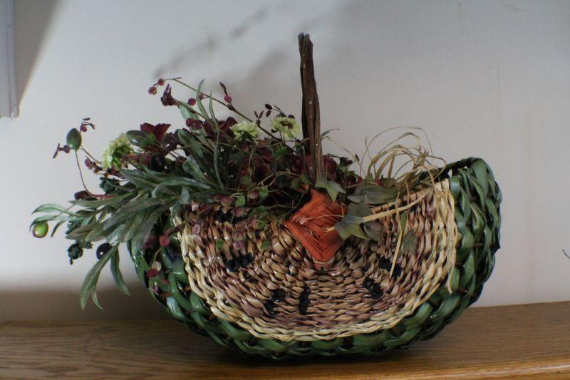 LOT #273: Artificial Flower Arrangement inside Watermelon Style Basket