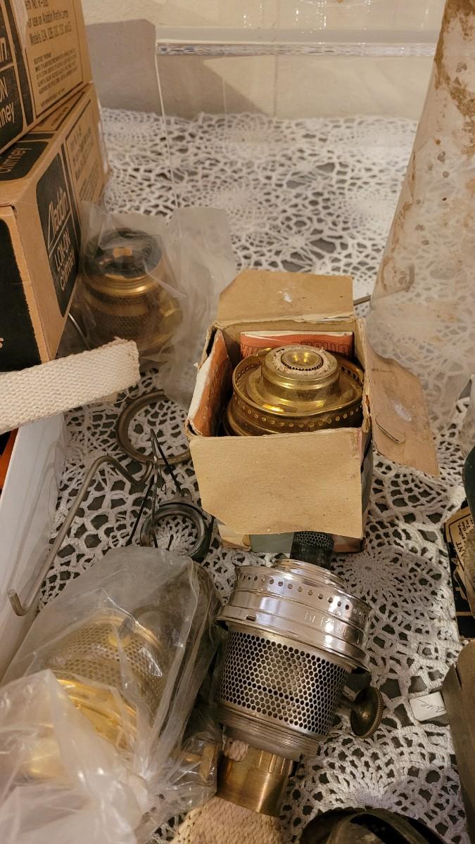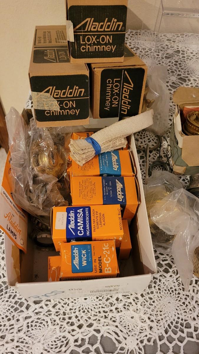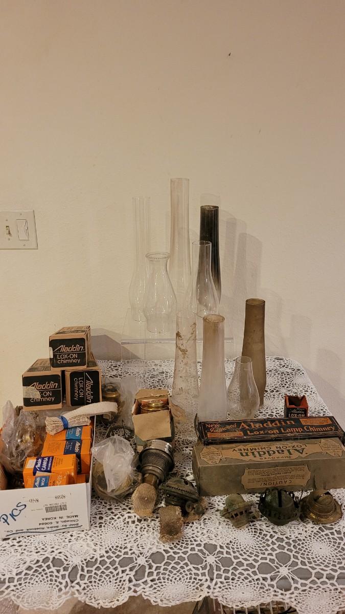Lot 273: Large Lot of Kerosene Lamp Chimneys, Wicks and Other Parts