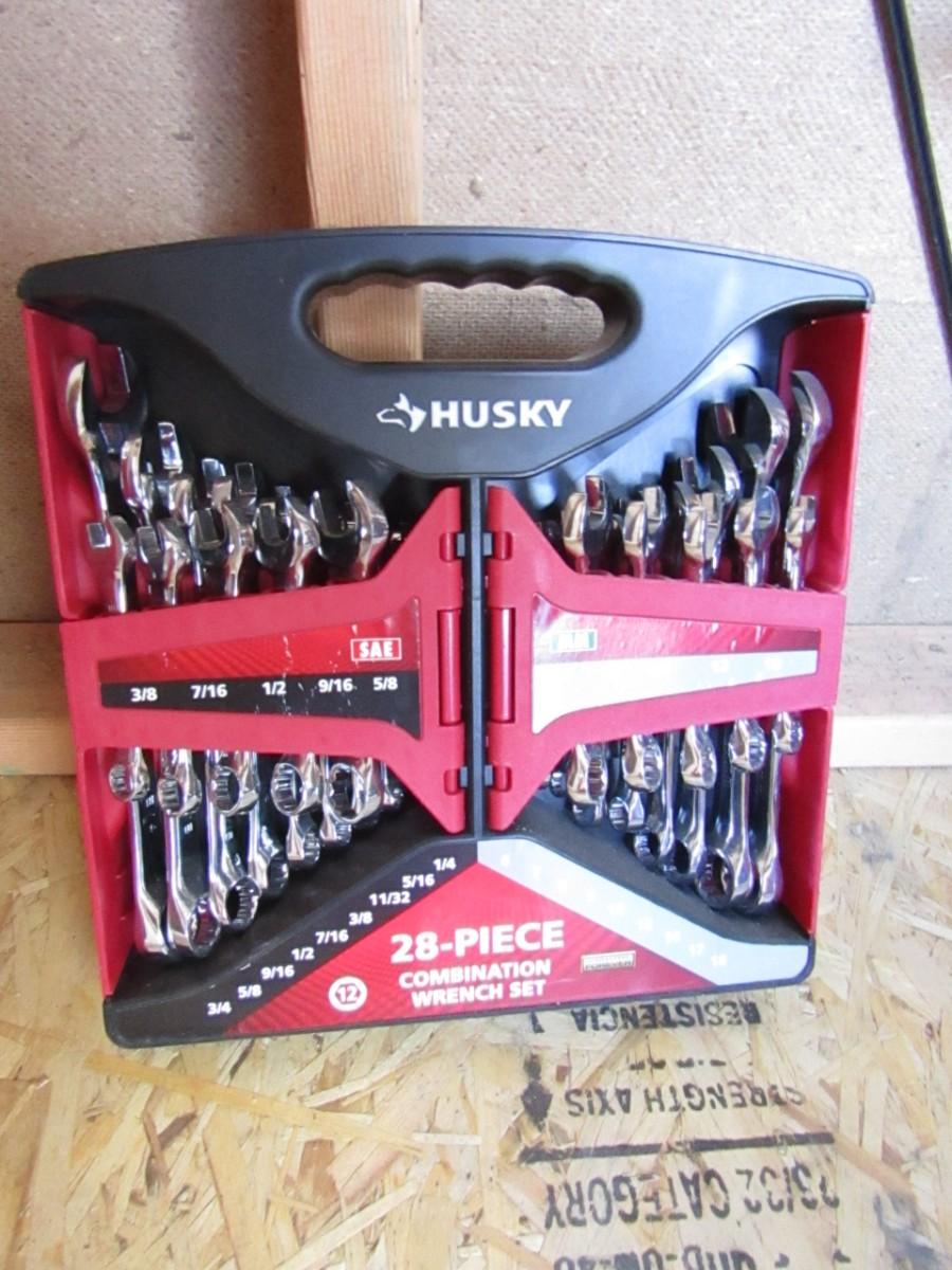 HUSKEY 28 PC COMBO WRENCH SET, MULTI-OUTLET AND EXTENSION CORD