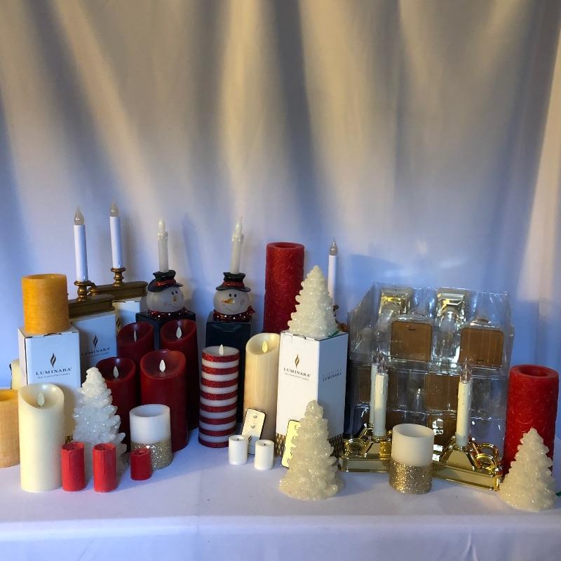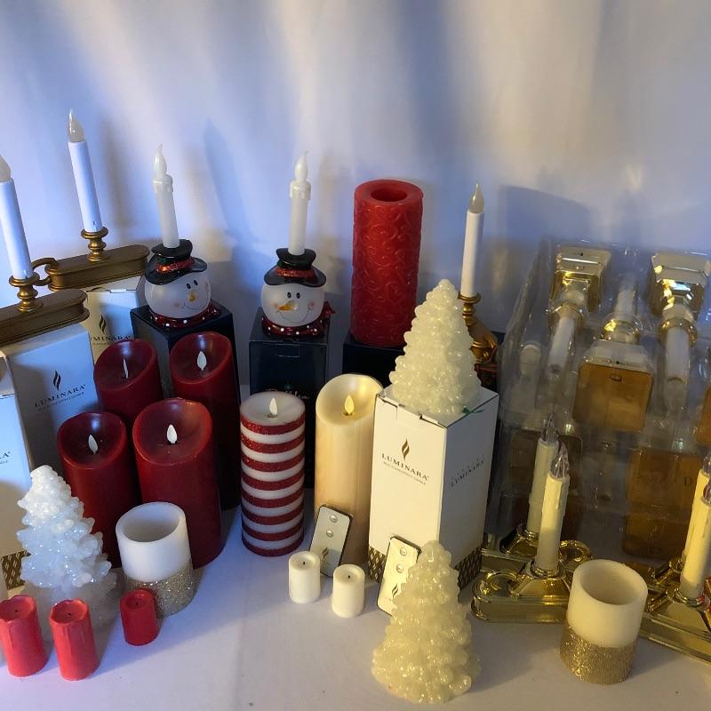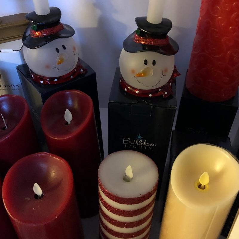 Many brand new in the box that includes Bethlehem and Luminara brand candles and Christmas trees, snowmen and more. Have your C and AA batteries ready.