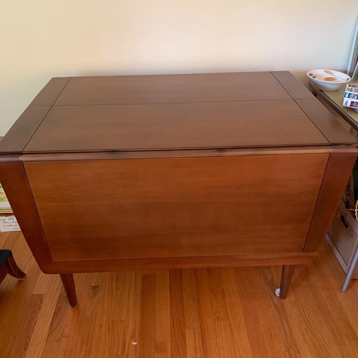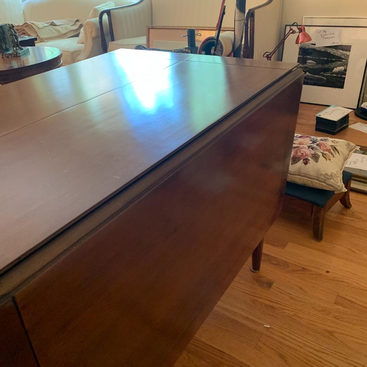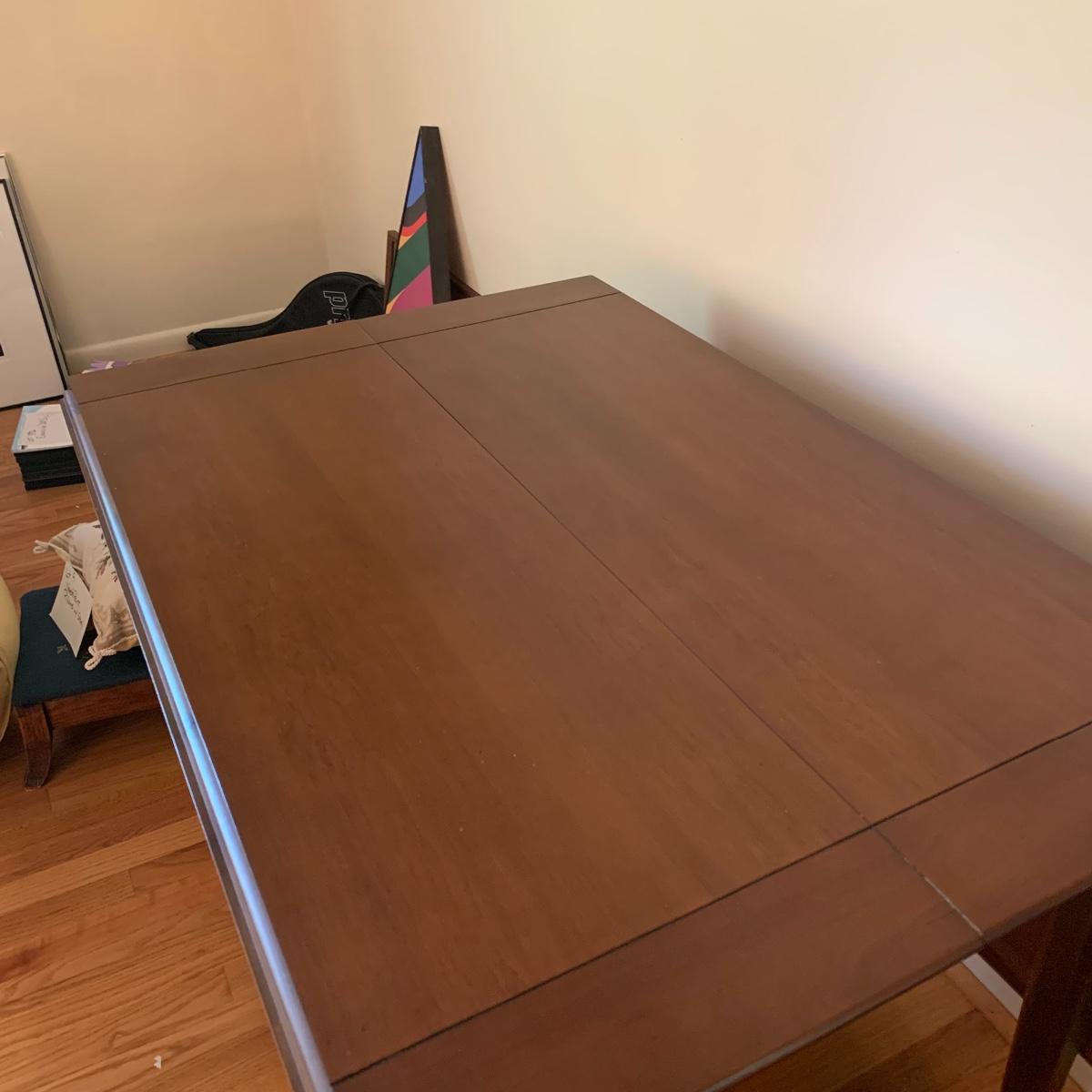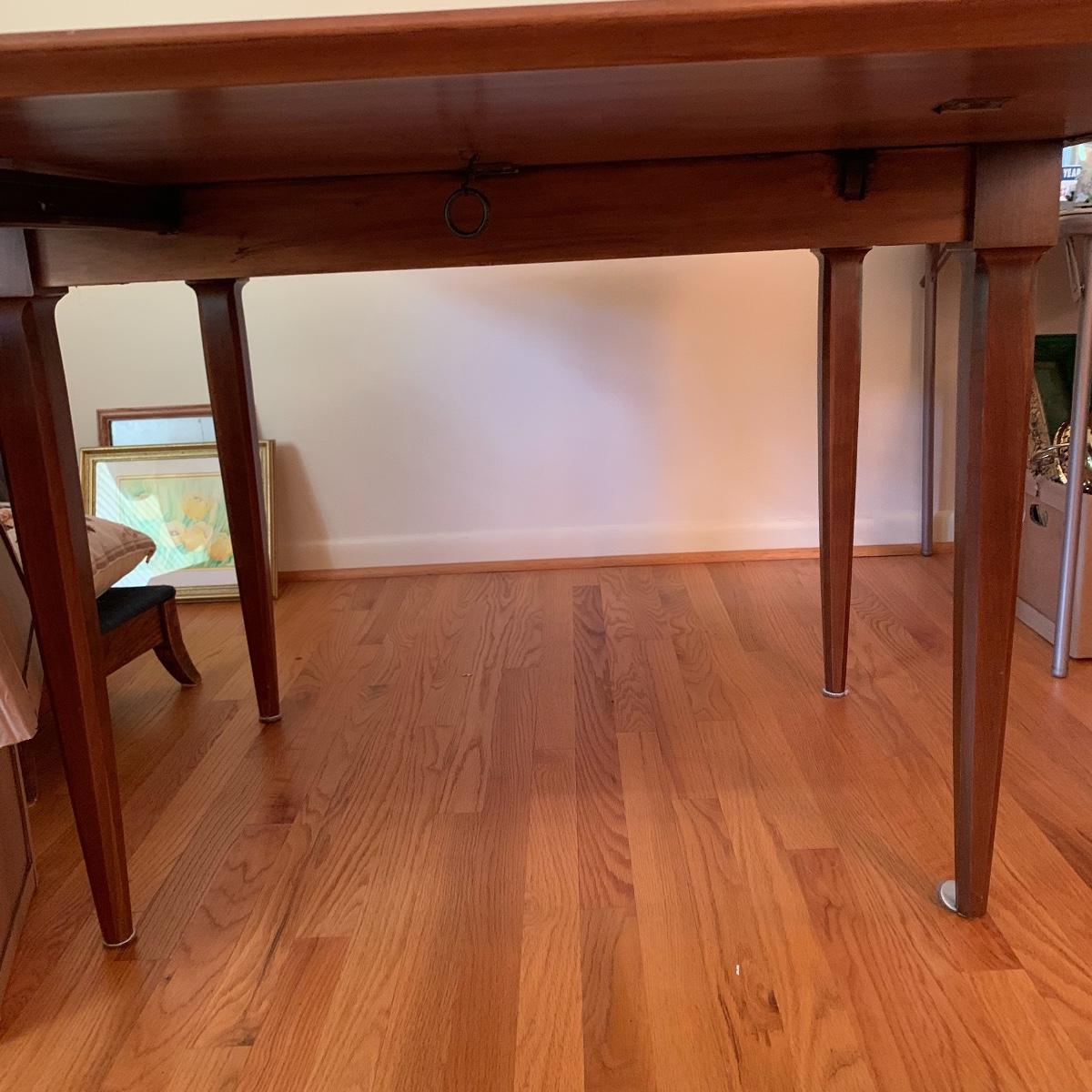 This gorgeous drop leaf table is ready for its new home. It features rounded edges, a routed decorative groove and a stunning finish. It is very easy to operate for quick conversion to a larger table. When the table is extended this piece measures 42” wide X 29” tall X 65” long. With the leaves down it is 28” long. This table has a few small scratches but is otherwise in good condition. Local pickup only.