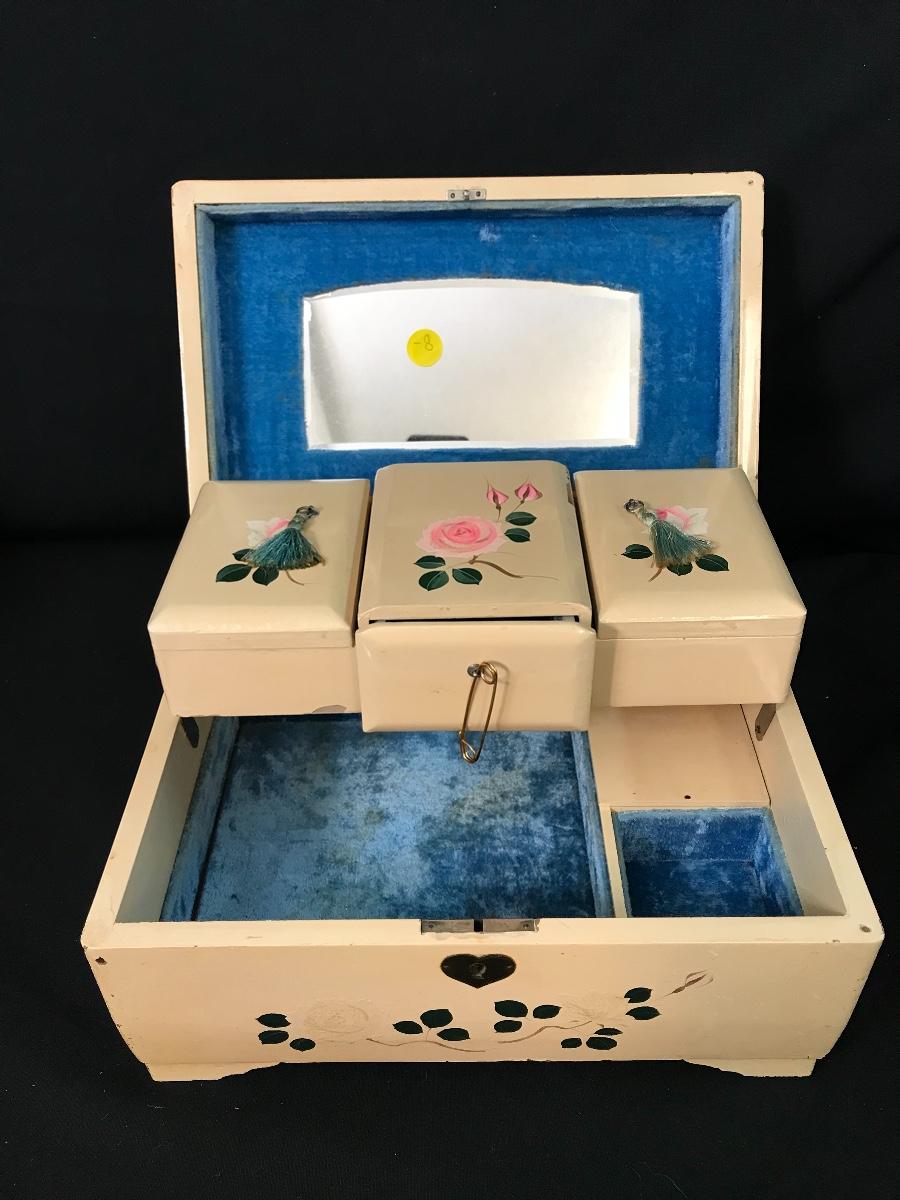 Bombay musical ring box,, Jewelry Boxes, gretting card organizer, cases & More. Please see all pictures as they are the best representation of the items. The pictures show condition, measurements if taken, and what is included in the lot. Due to the large amount that we photograph and the time frame, we are not always able to take measurements. All items unless noted, are pre-owned and have been used. If you purchased furniture, you must bring help. We do not allow one person to carry large furniture out on their own. Bring help, tools and a truck for the safety of our client’s homes, and your personal safety. Company policy. Thank you.