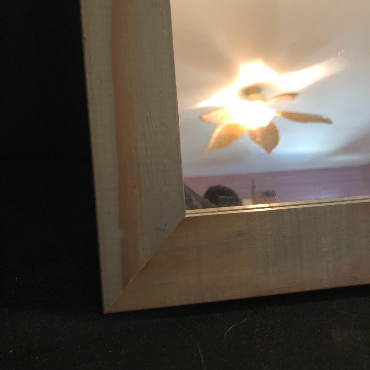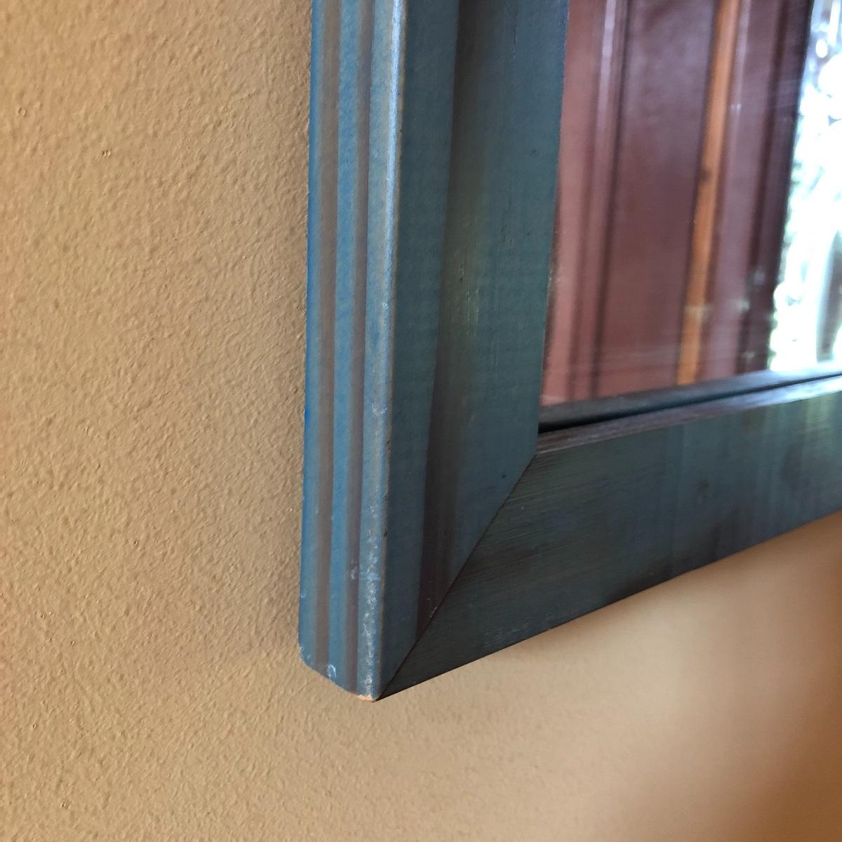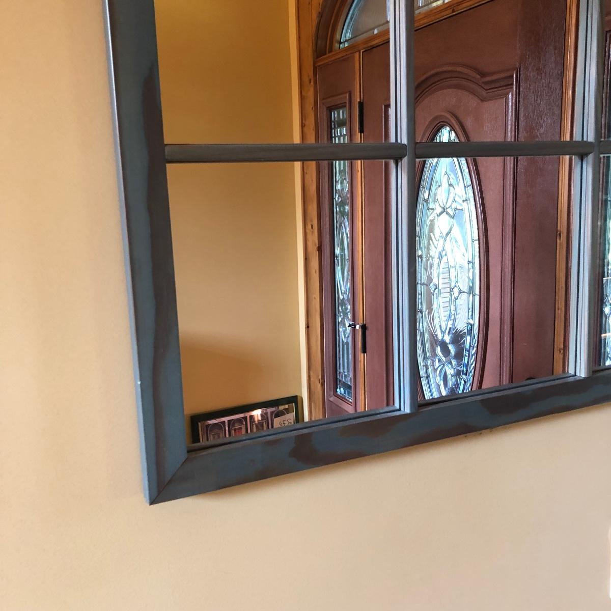 This wooden mirror is made to look like a window with its wooden grid. Mirror measures 24.5” x 32.5”.