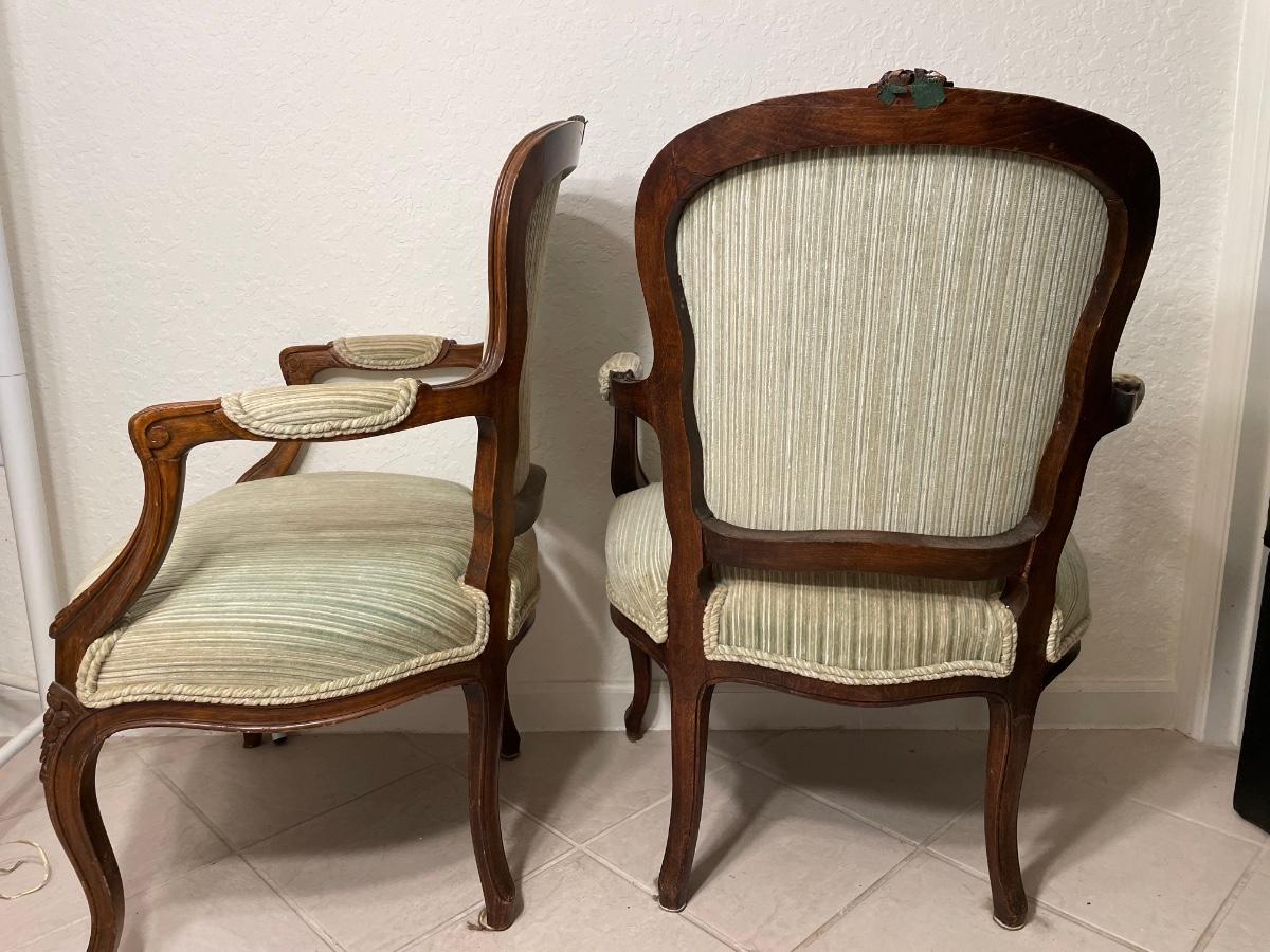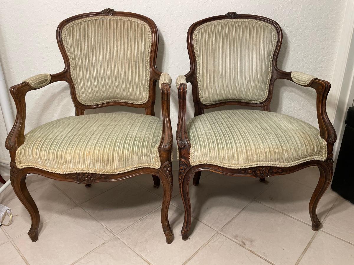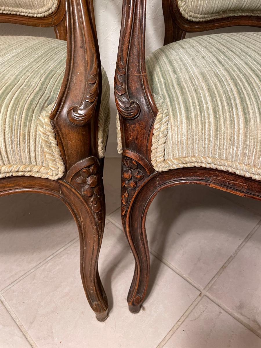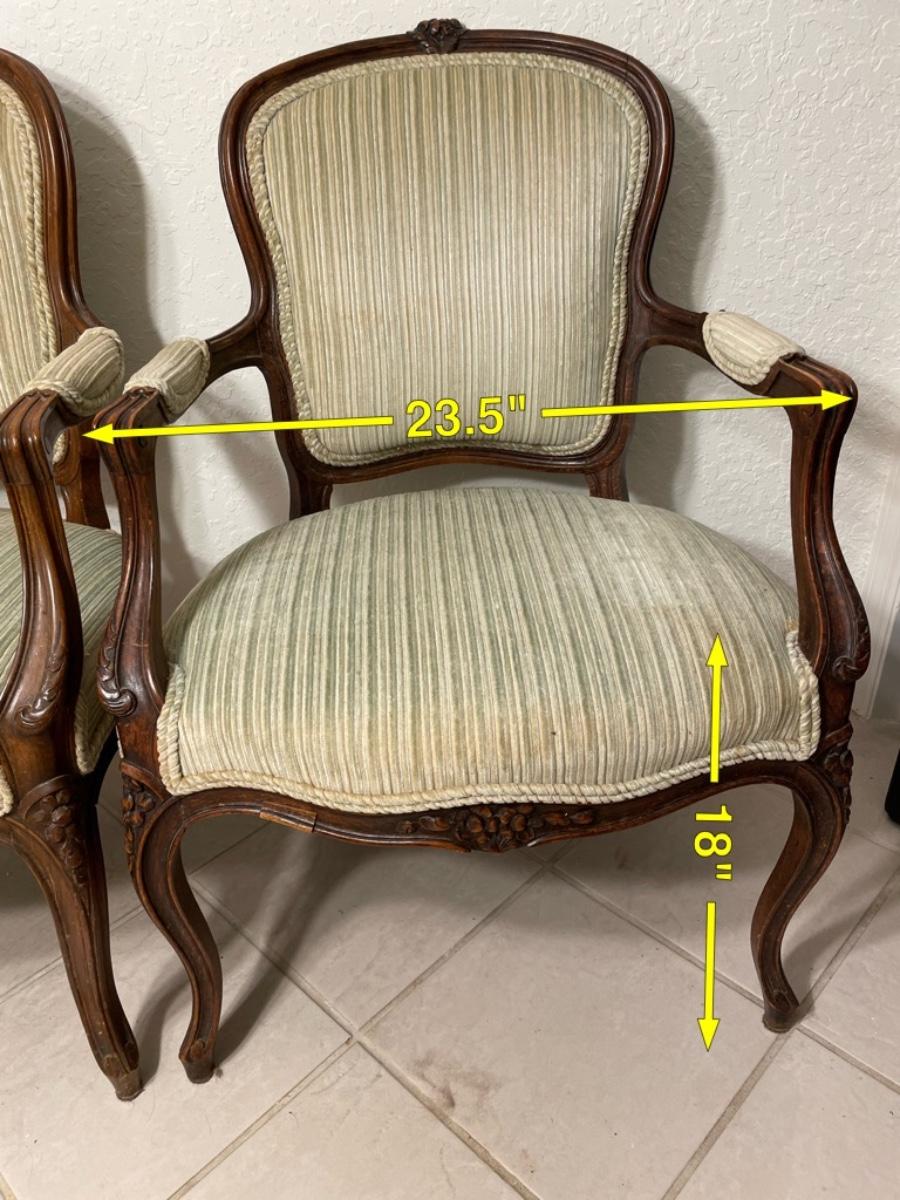 Fruitwood frame and foam is in excellent condition but fabric is a little worn.