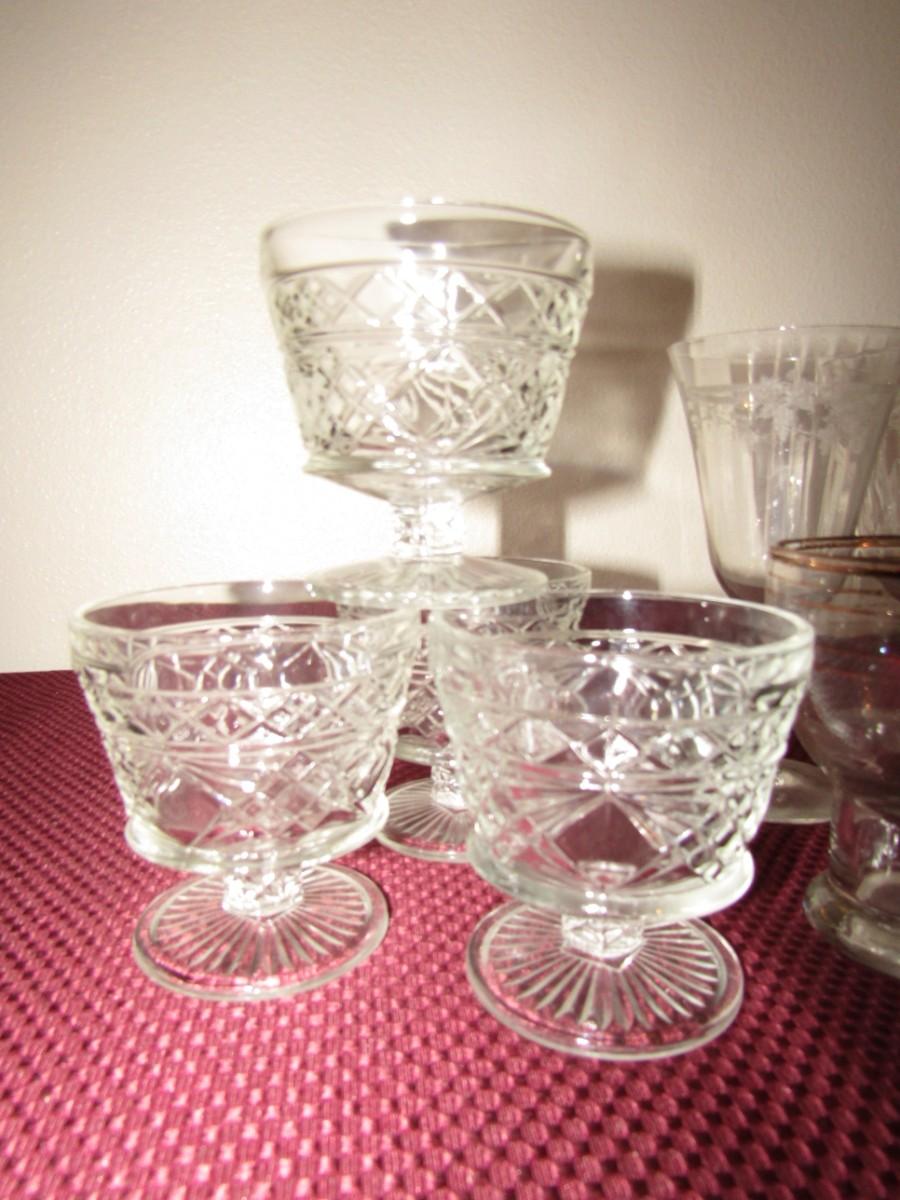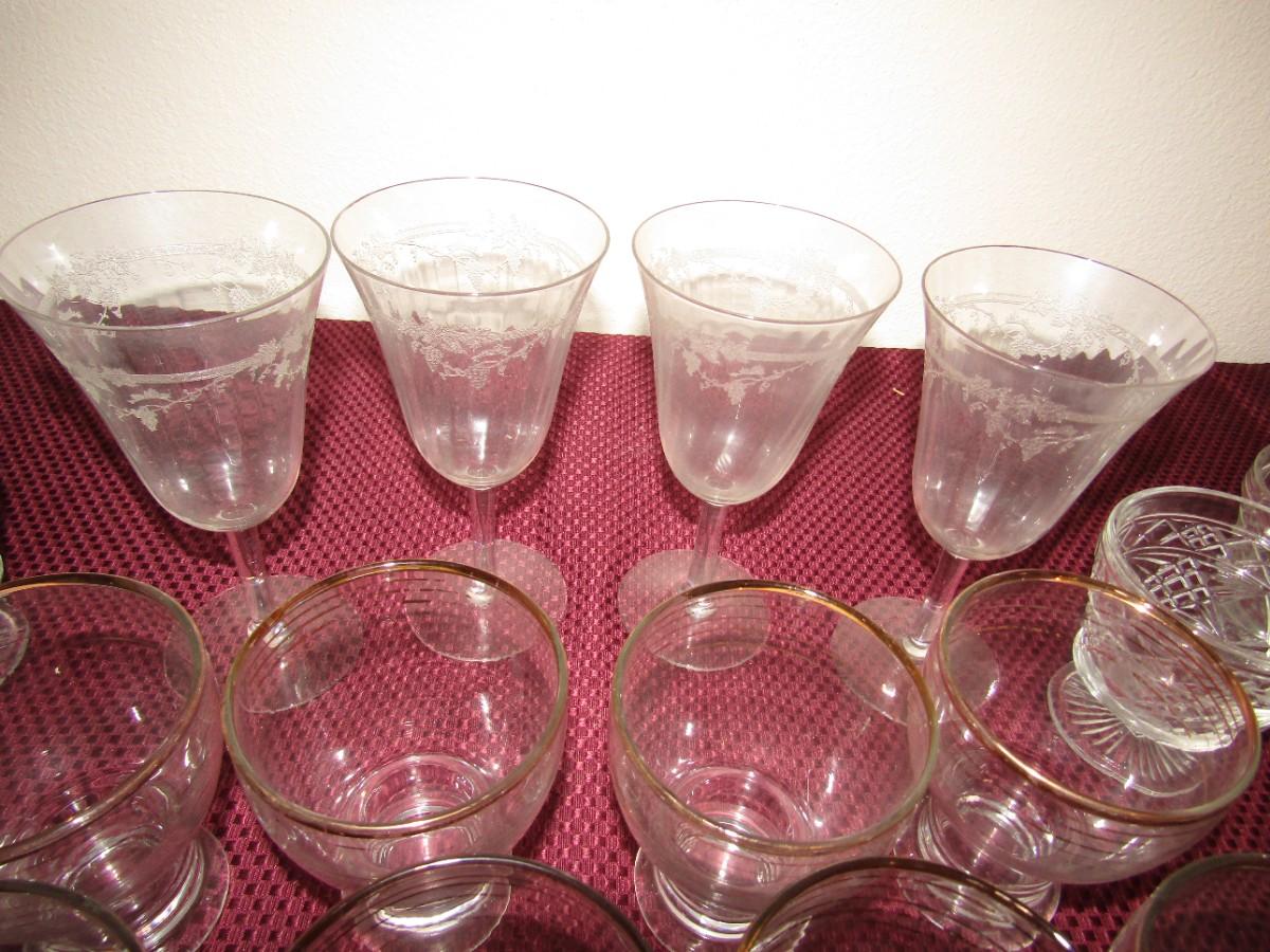4 ETCHED CRYSTAL STEMMED GLASSES