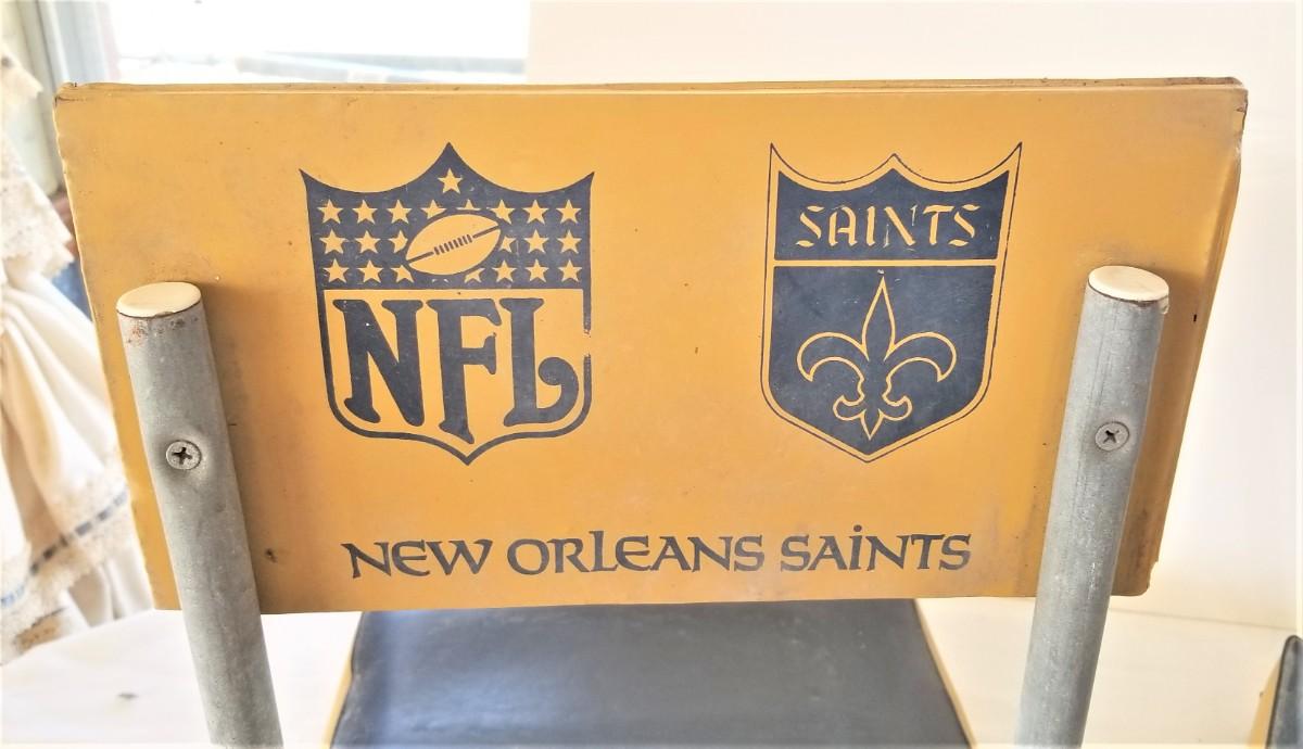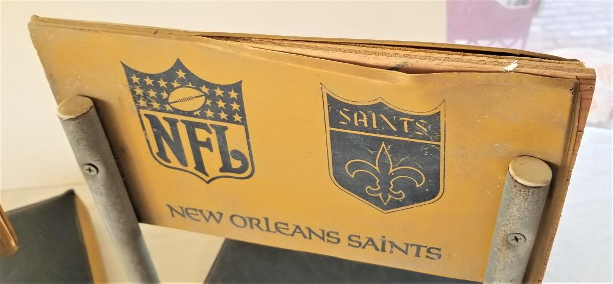 Attic find! Cool pair of vintage NFL Licensed New Orleans Saints folding stadium seats. They are rather rough (as shown) but still an awesome find. 16.25" tall, 12" across.