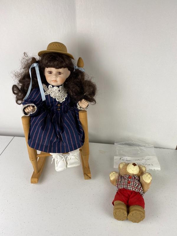 Lot 273-Ceramic Doll Rocking Chair 1986 Furskins Near