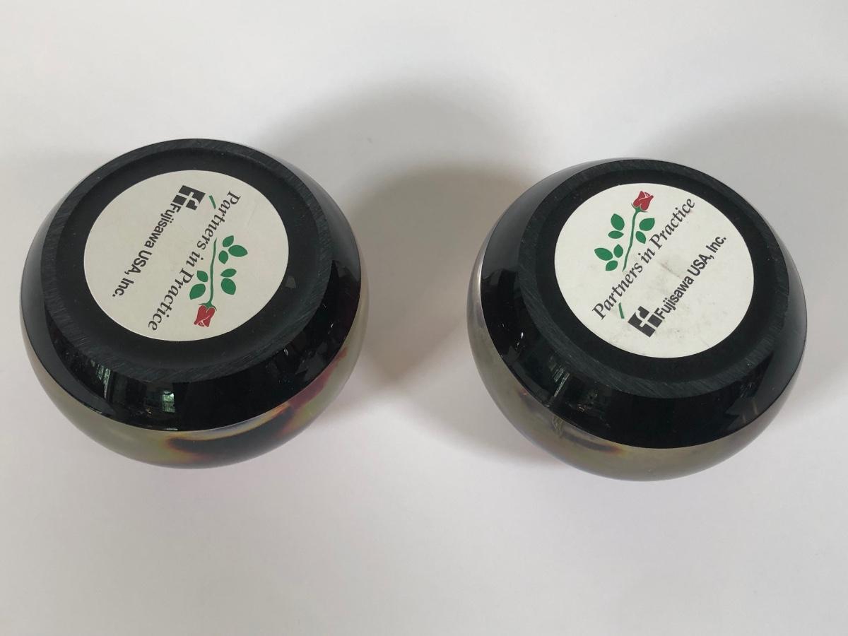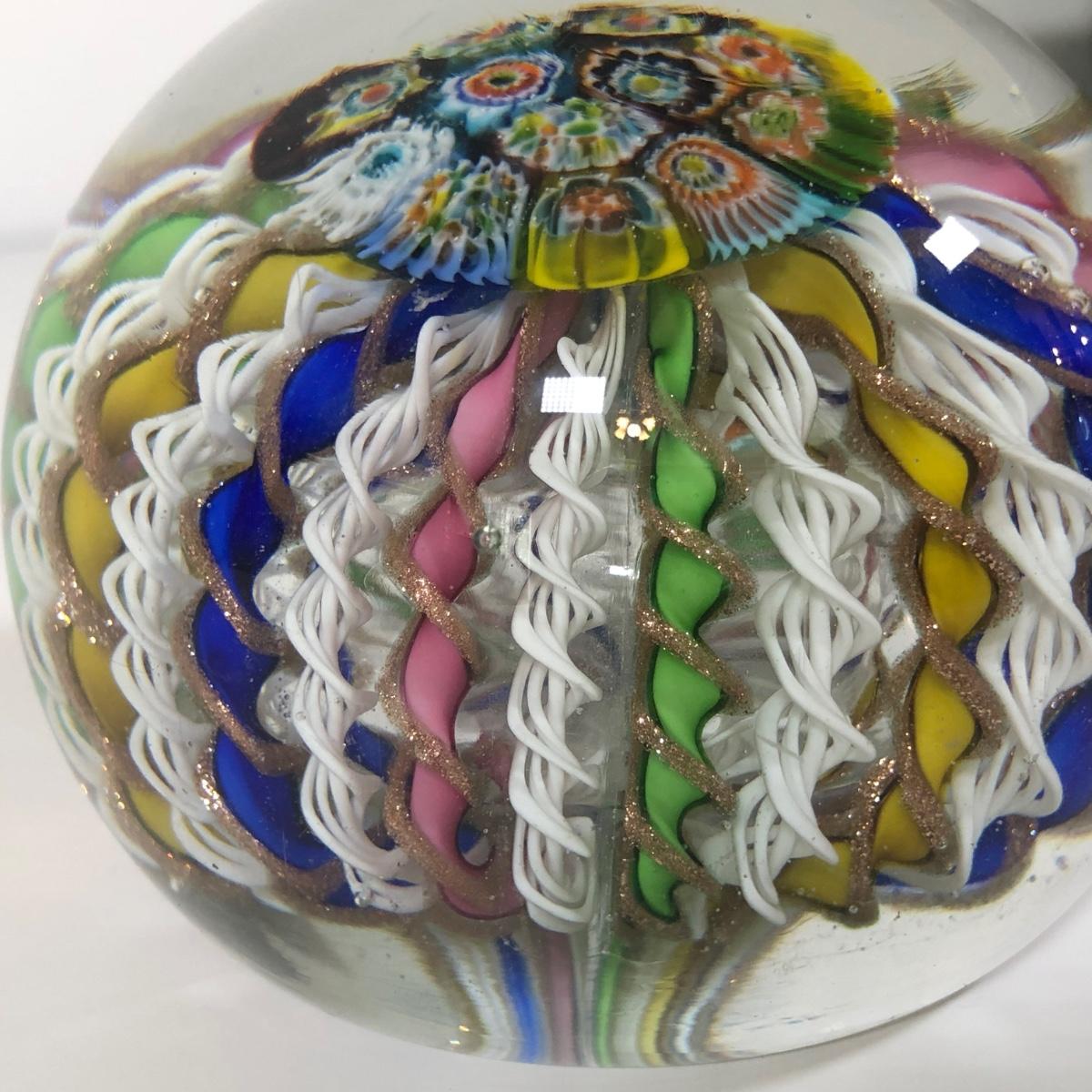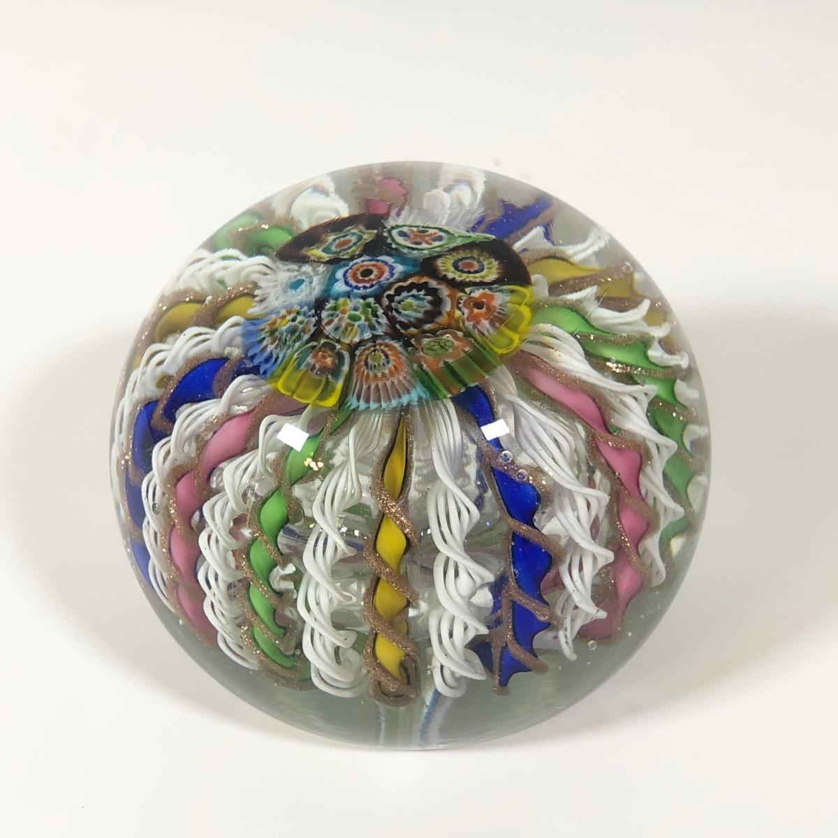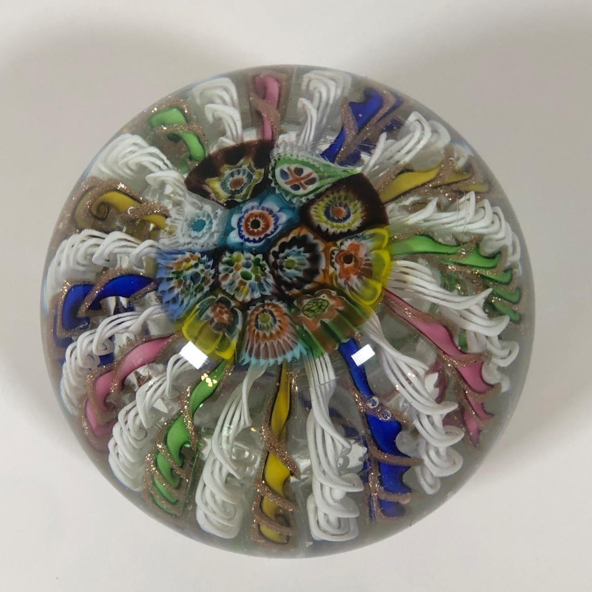LOT 273L: Glass Millefiori Paperweight & 2 Encased Rose Paperweights