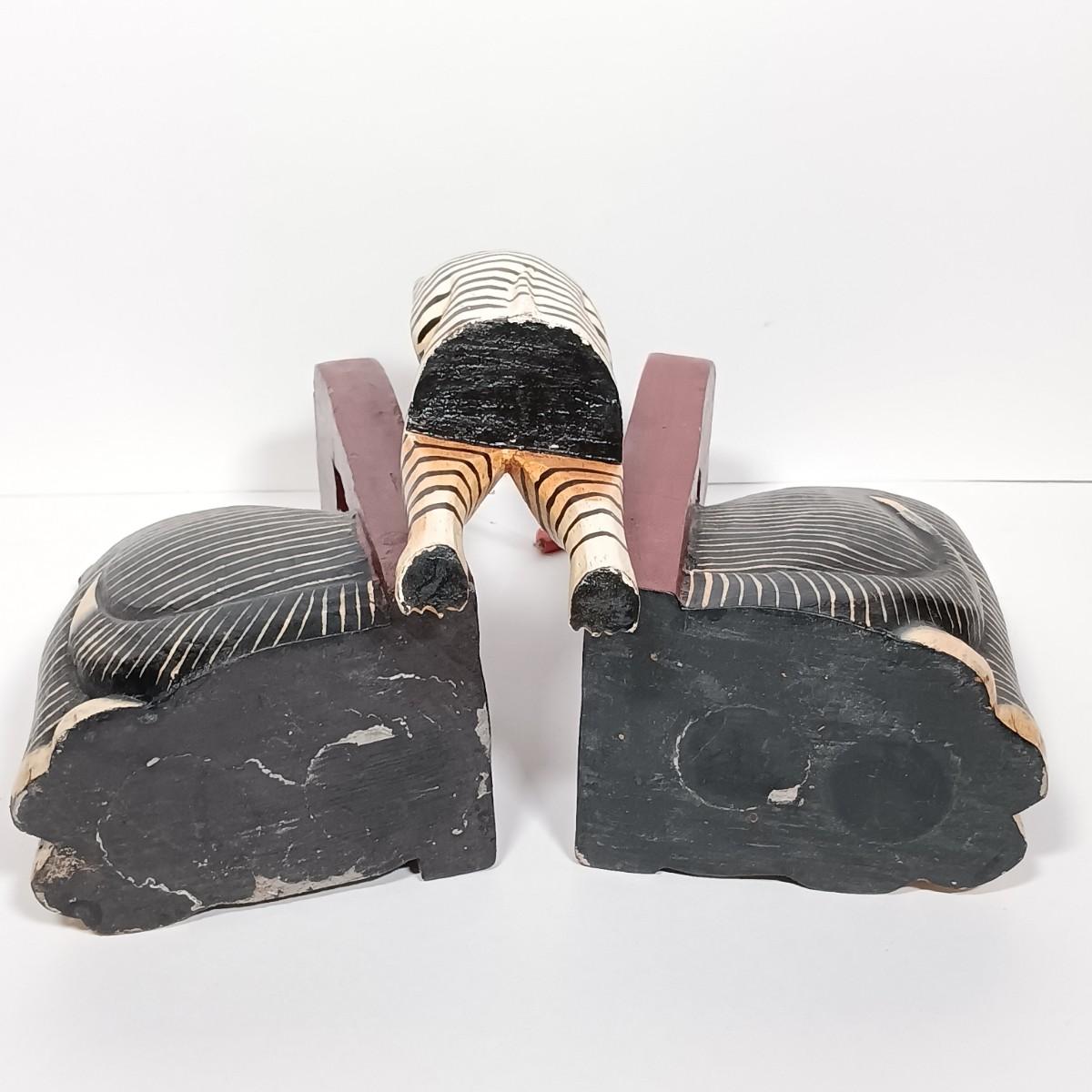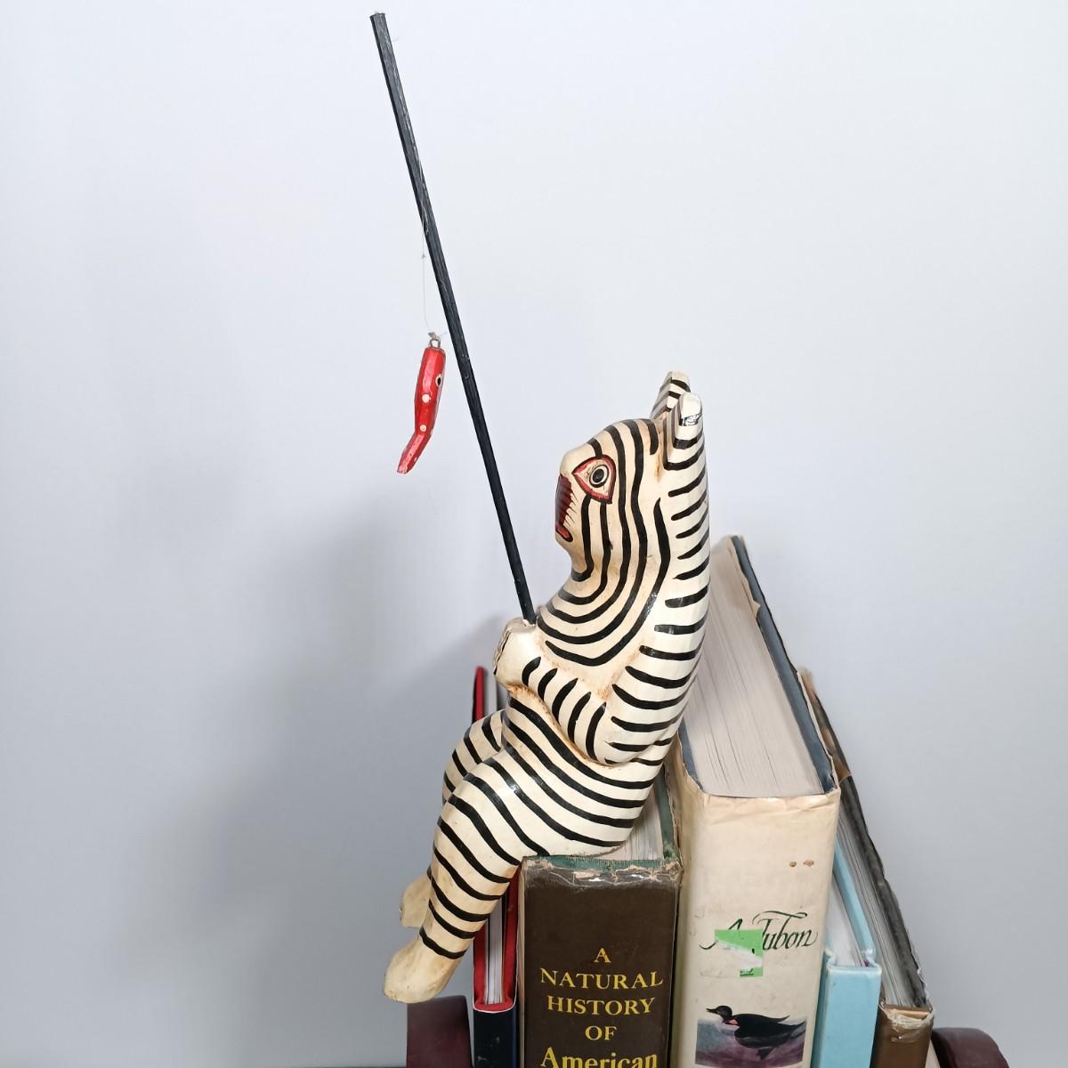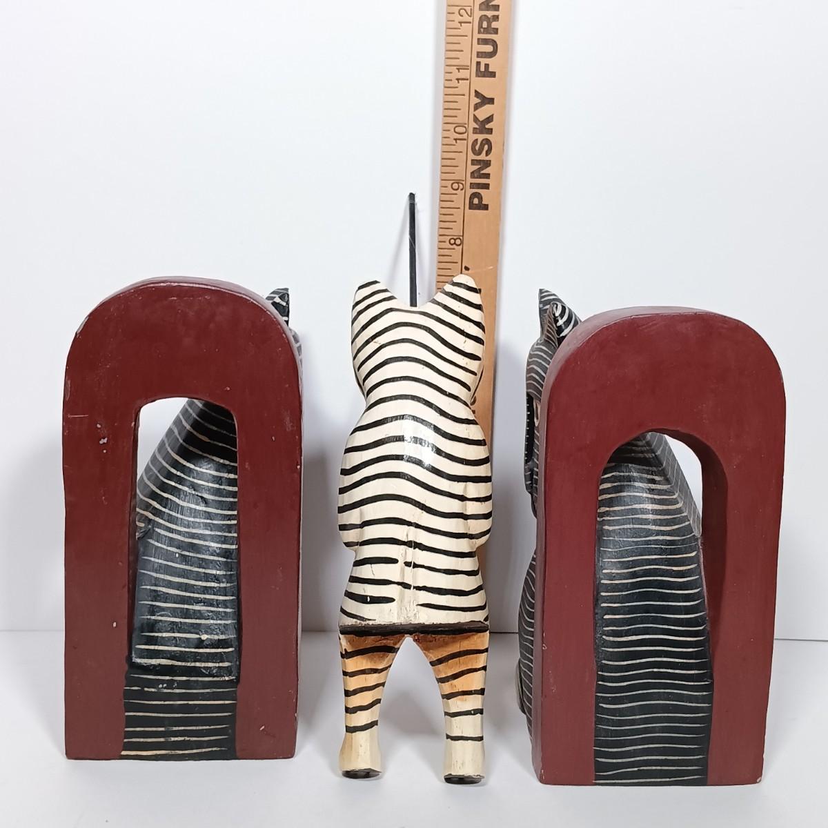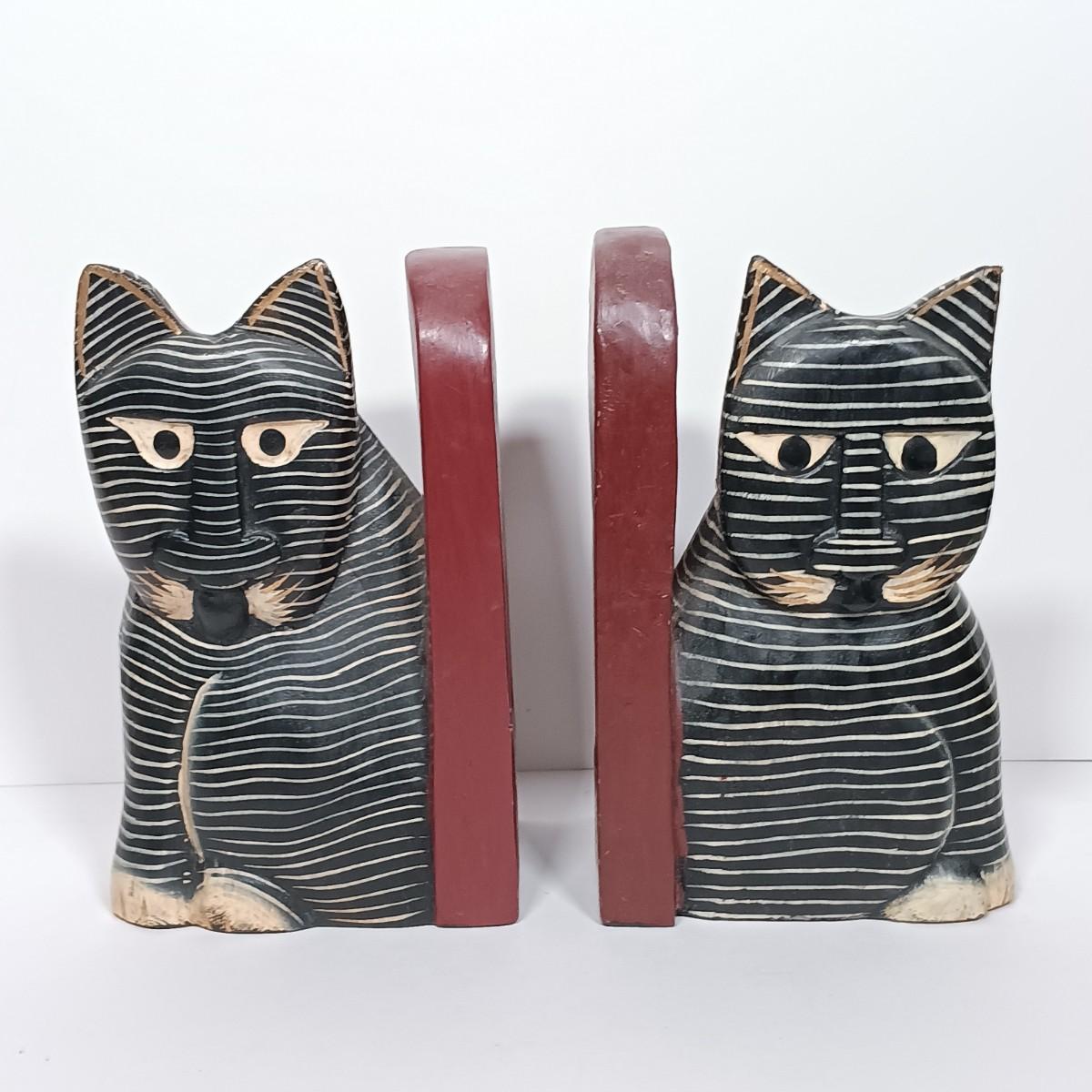 LOT 274: Carved Wood Fishing Cat and Cat Bookends with Books
