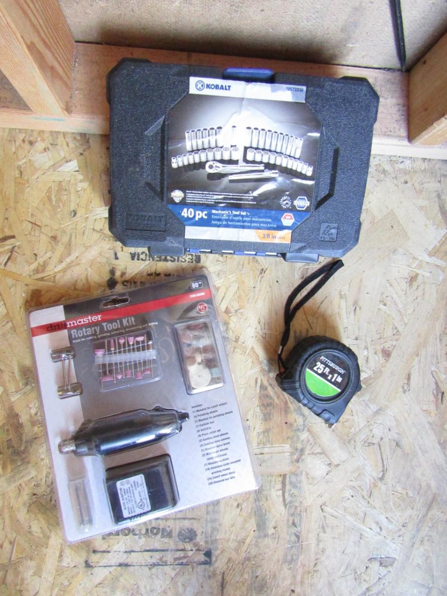 LOT 274 NEW KOBALT MECHANIC'S TOOL SET, TAPE MEASURE AND ROTARY TOOL KIT