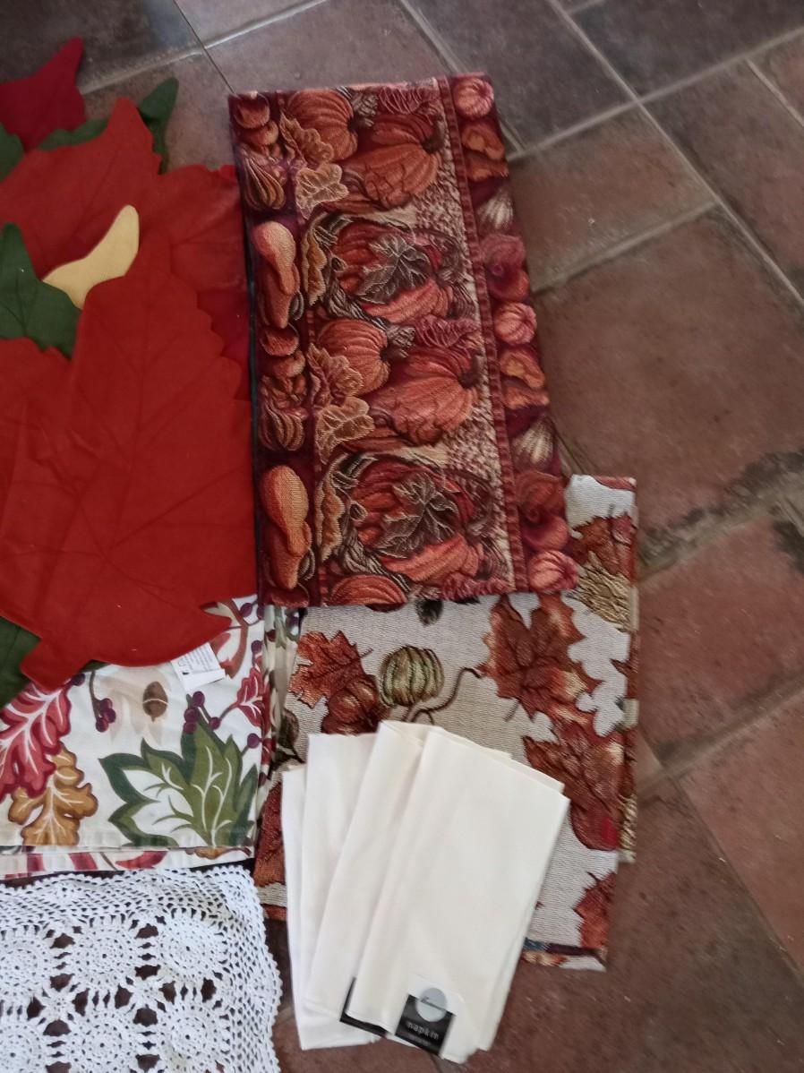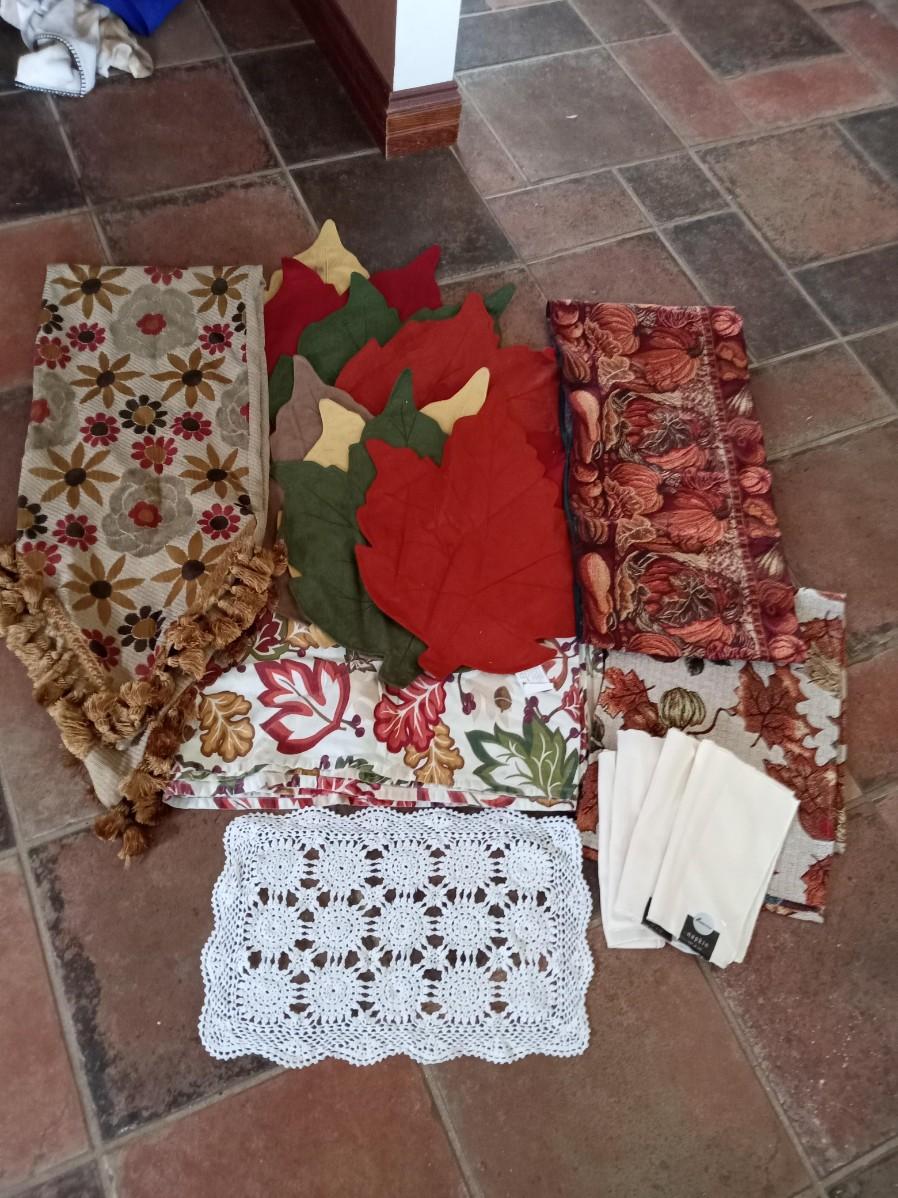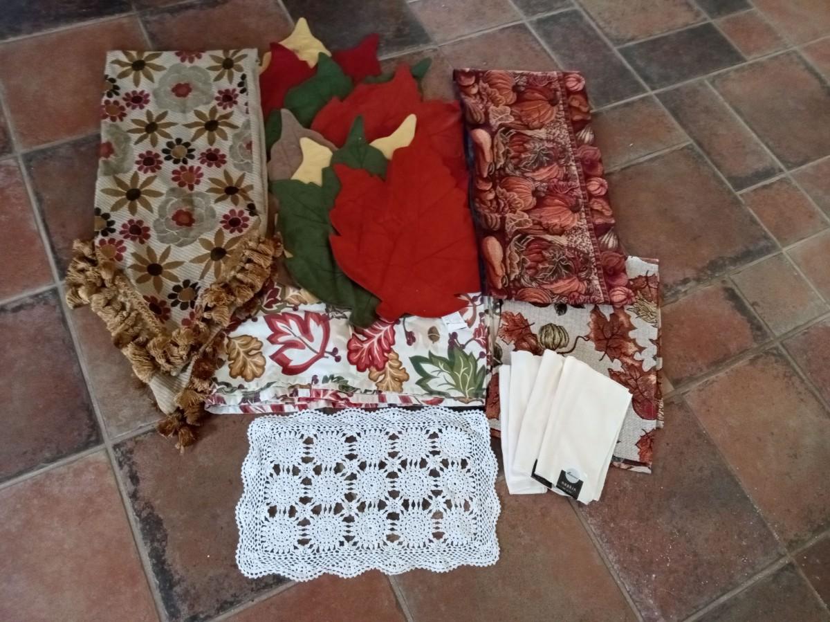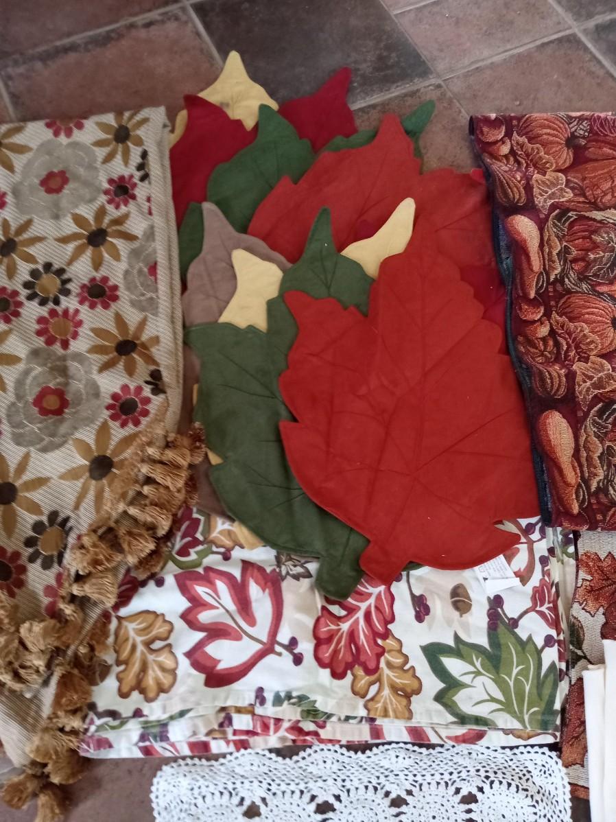 TABLE RUNNERS, LEAF PLACEMATS, LINEN NAPKINS AND A DOILY
