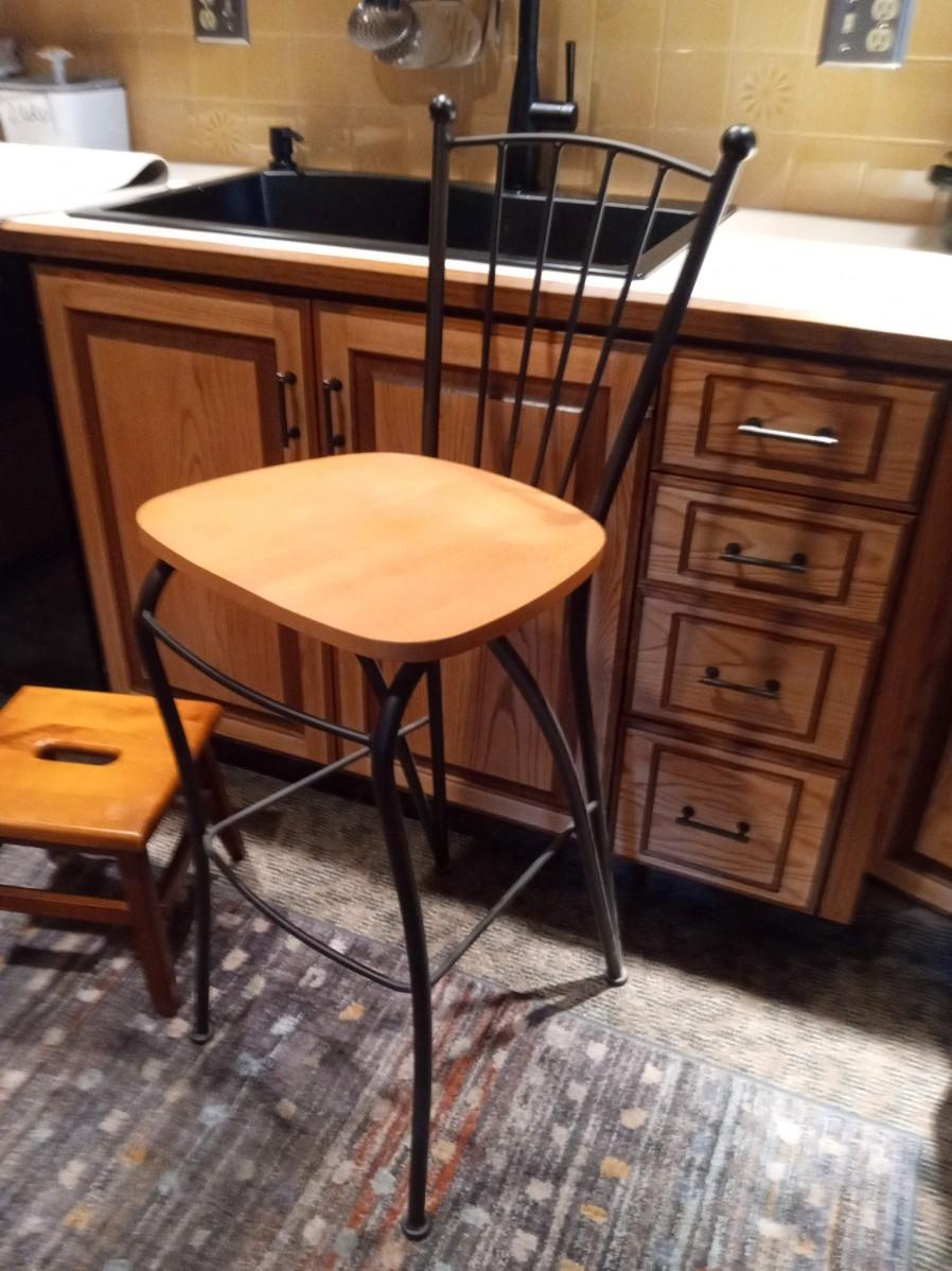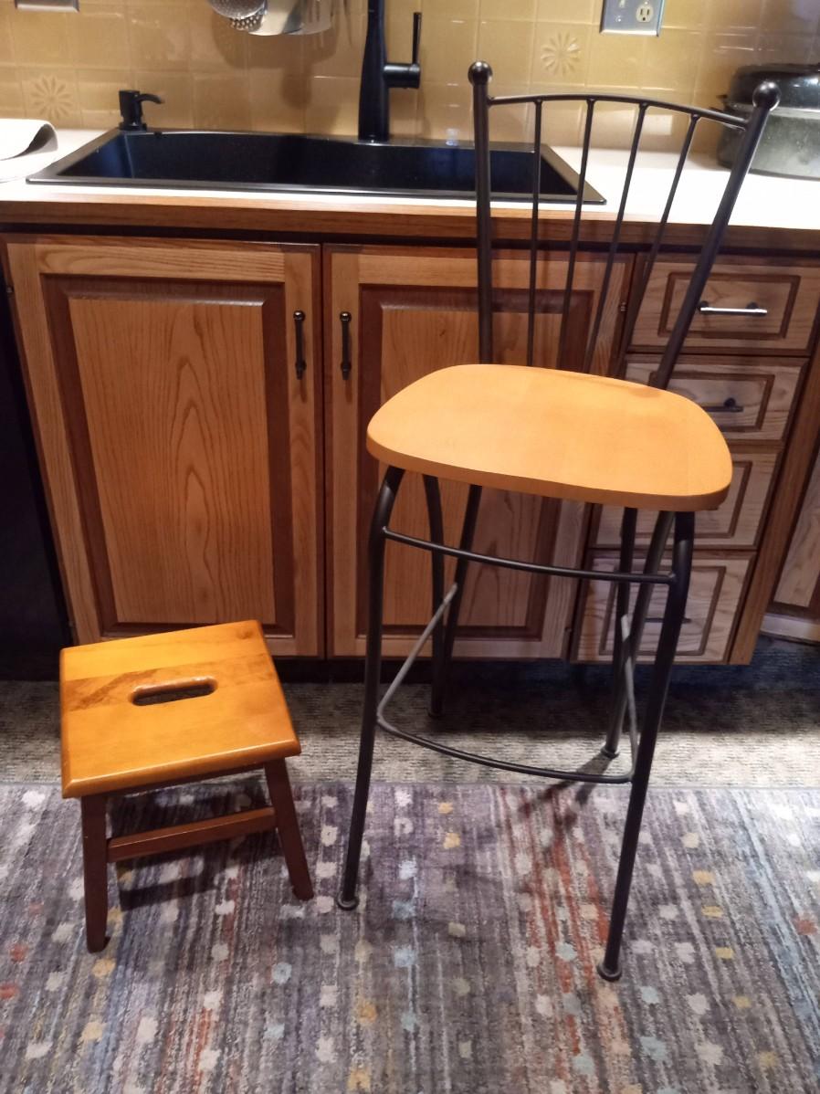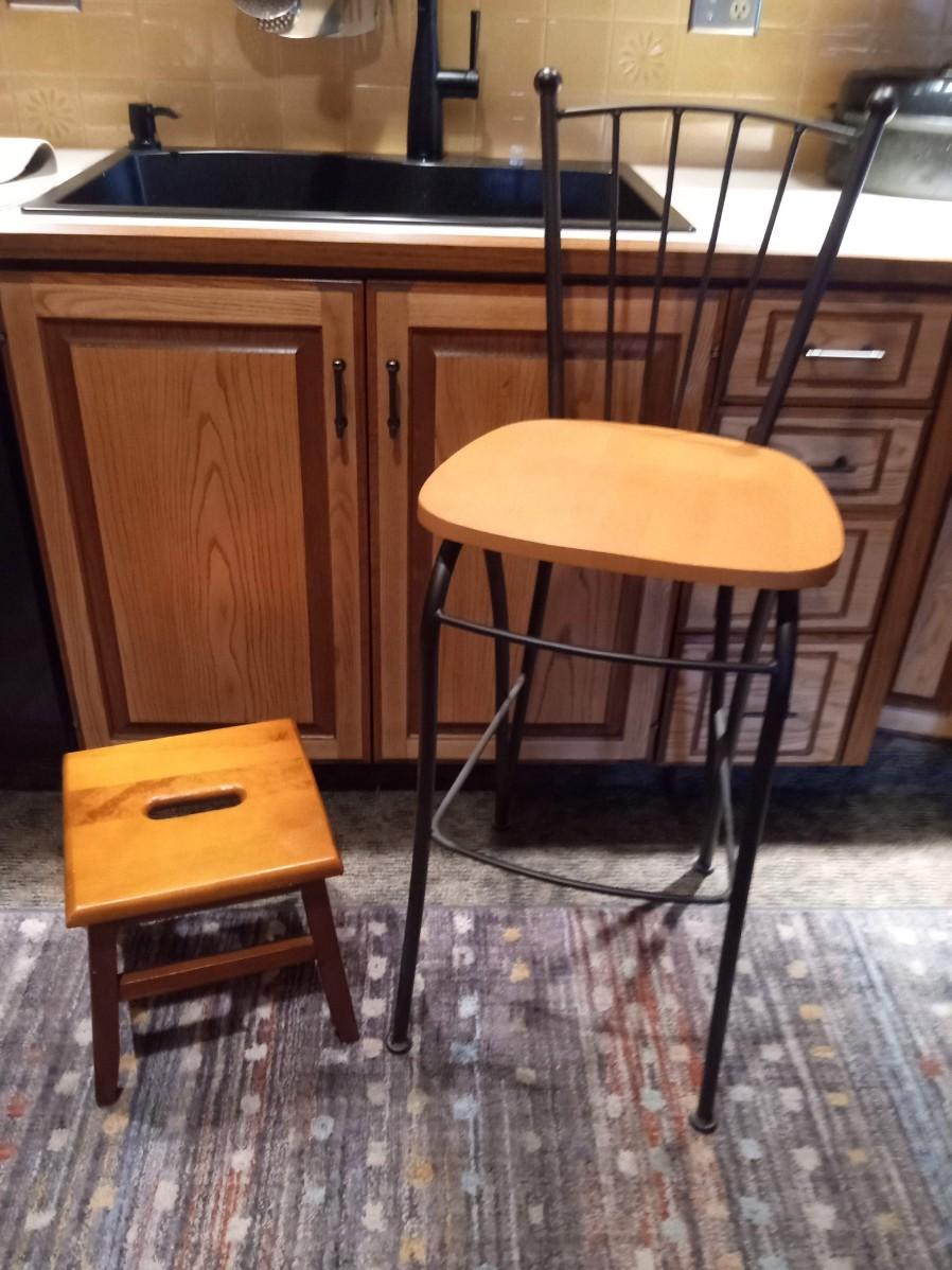 LOT 274  WOODEN STOOL AND A BAR STOOL