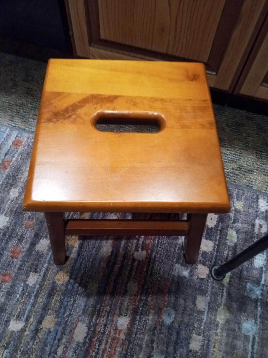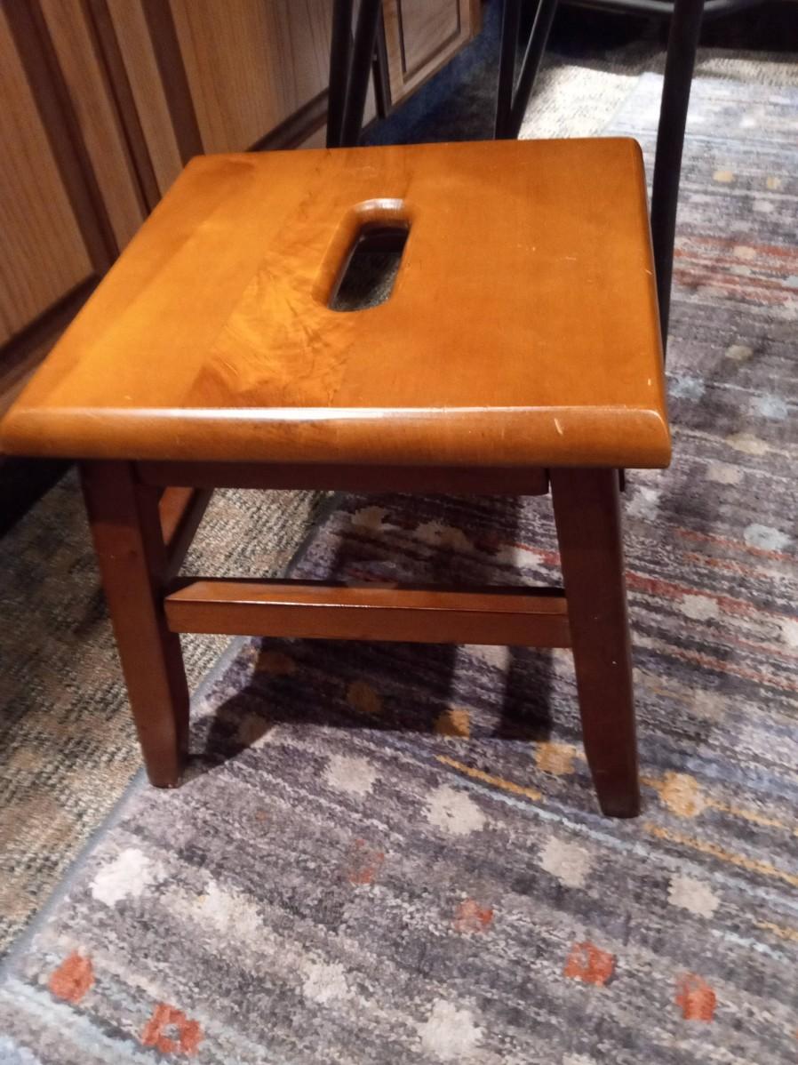 THE WOODEN STOOL IS 12" SQUARE AND 12" TALL