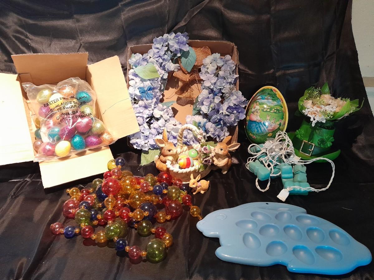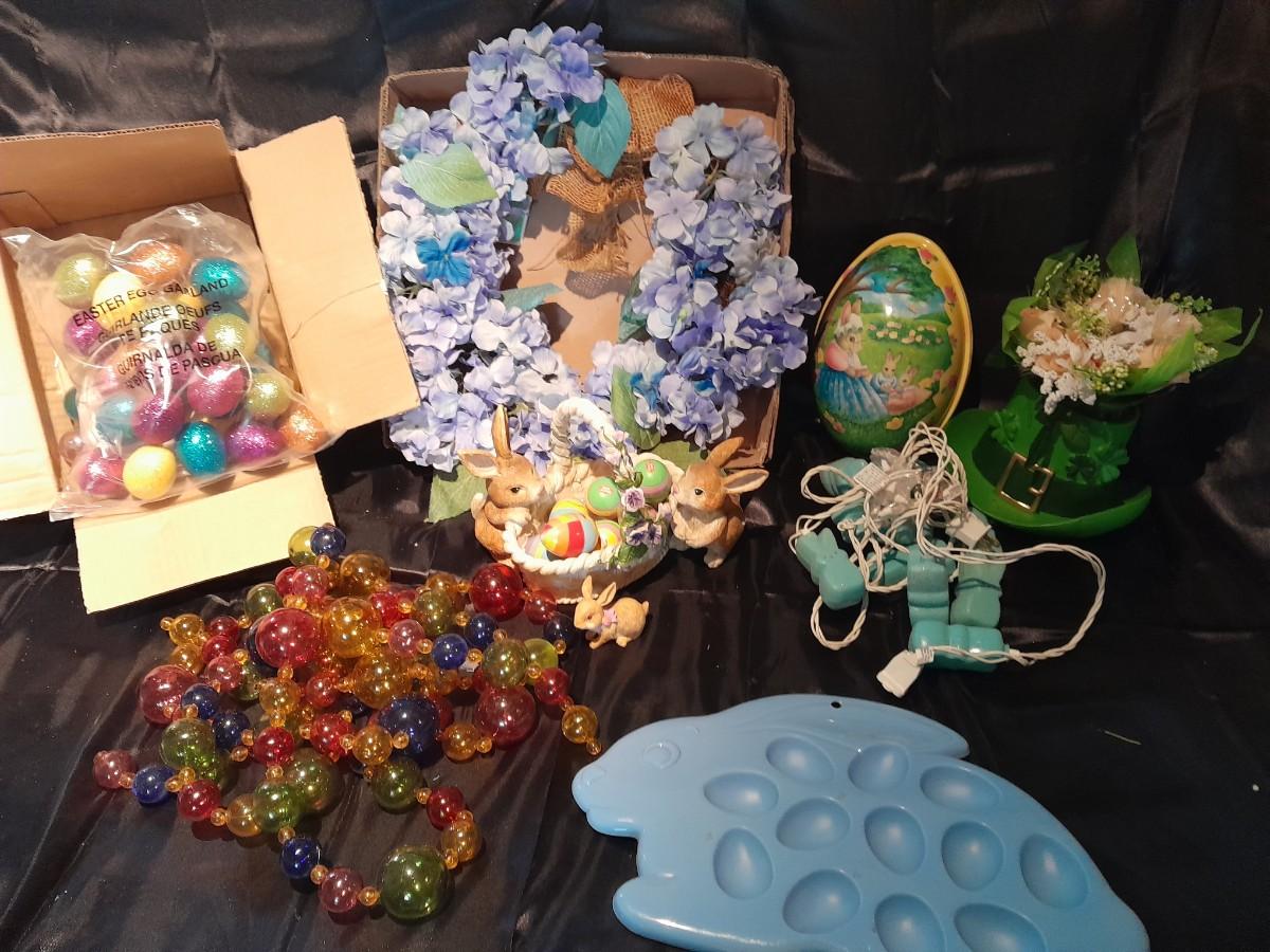 LOT 274 EASTER DECORATIONS WREATH, EGG GARLAND AND MORE