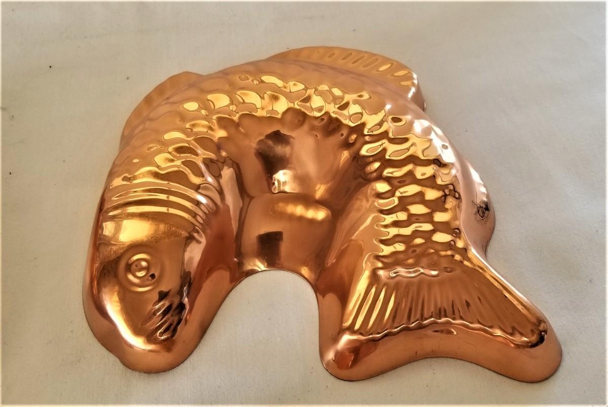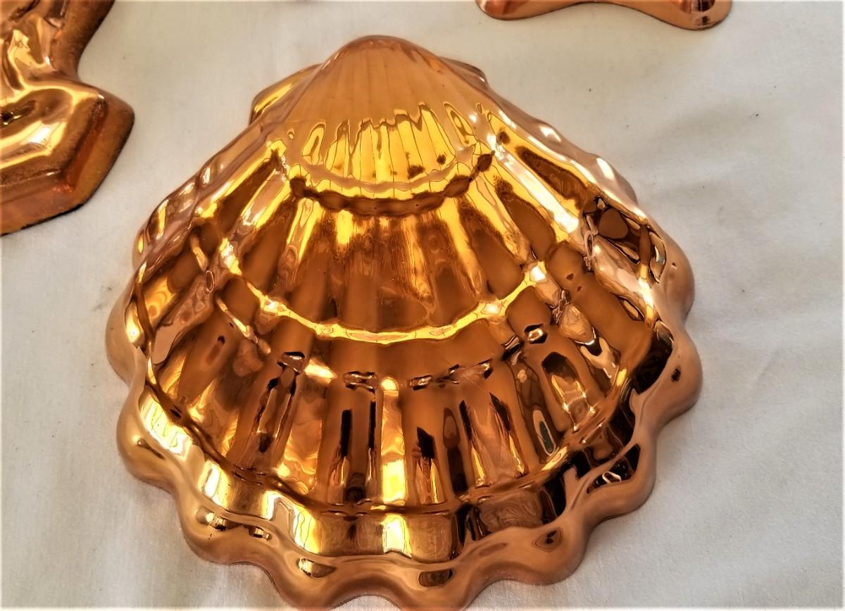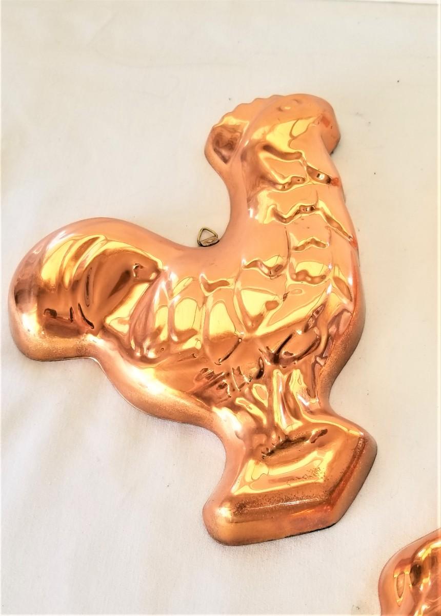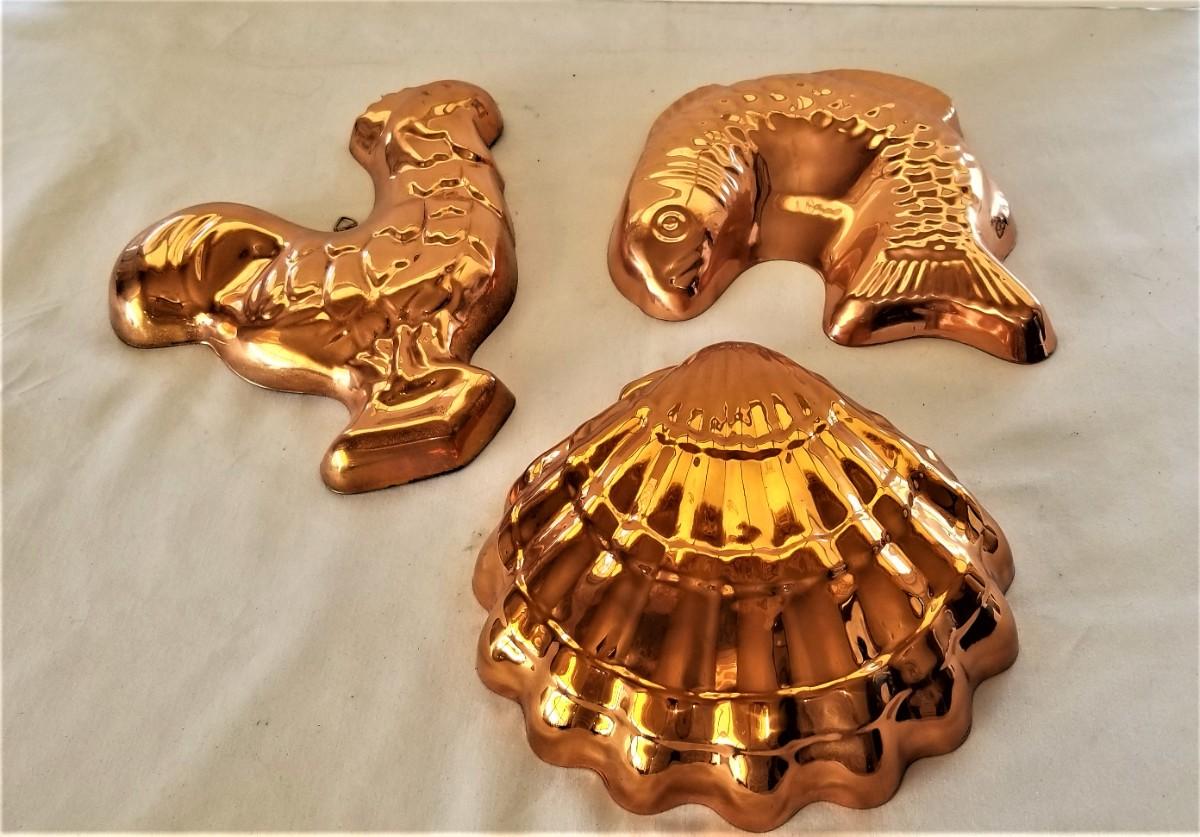 You get all you see here - three contemporary copper decorative molds - Chicken (11" tall), Shell and a fish. Good condition.