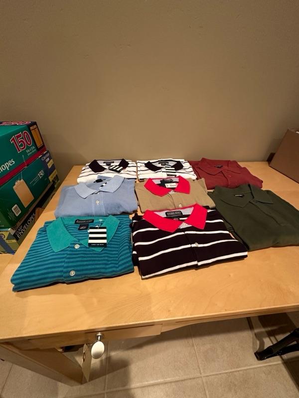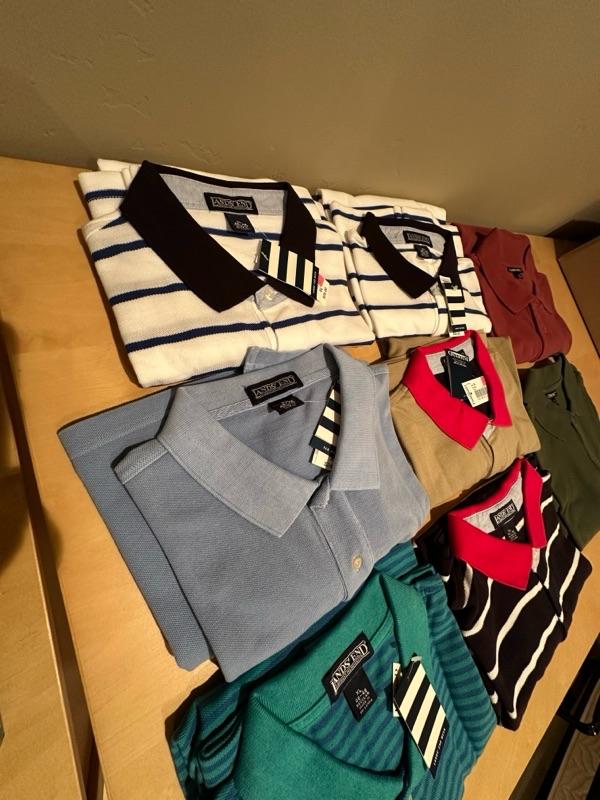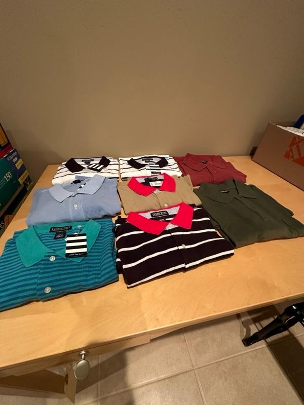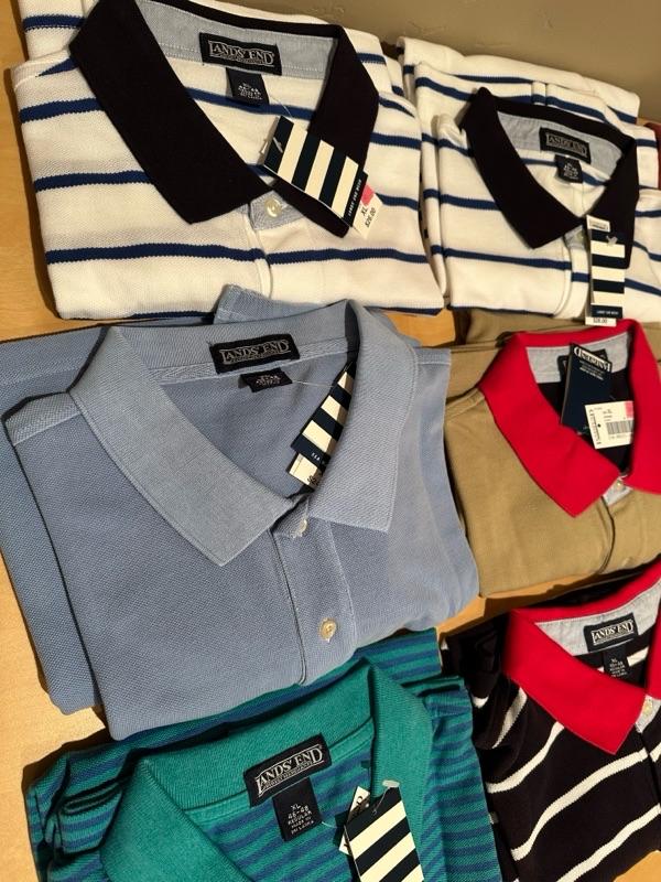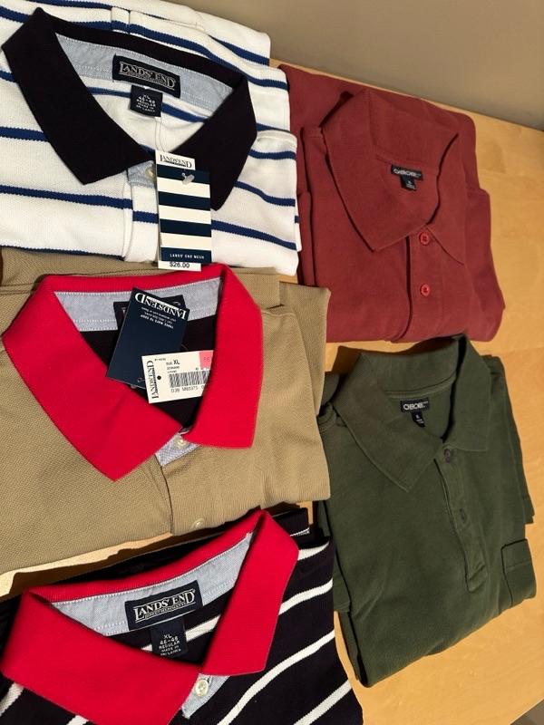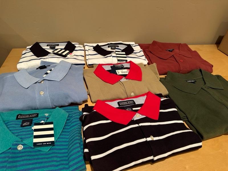 six extra large Lands’ End polo shirts, new tags and two extra large Cherokee shirts