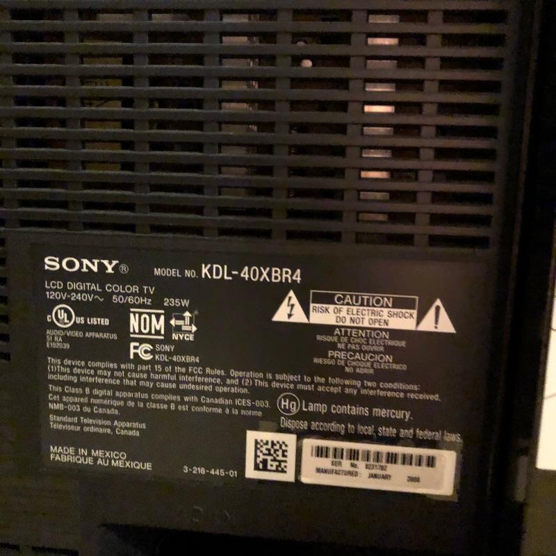 This Sony color TV appears to be in good condition, more information can be found looking at the images for model and serial numbers, etc. It powered on when tested. It is designed to be wall mounted and comes with the necessary hardware. Also included are manuals for both the TV and wall-mount bracket and of course the remote control.