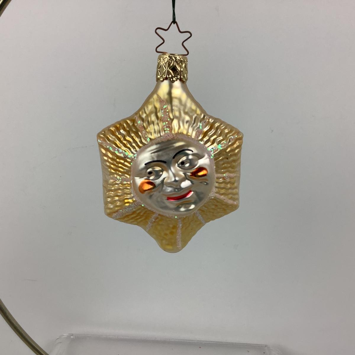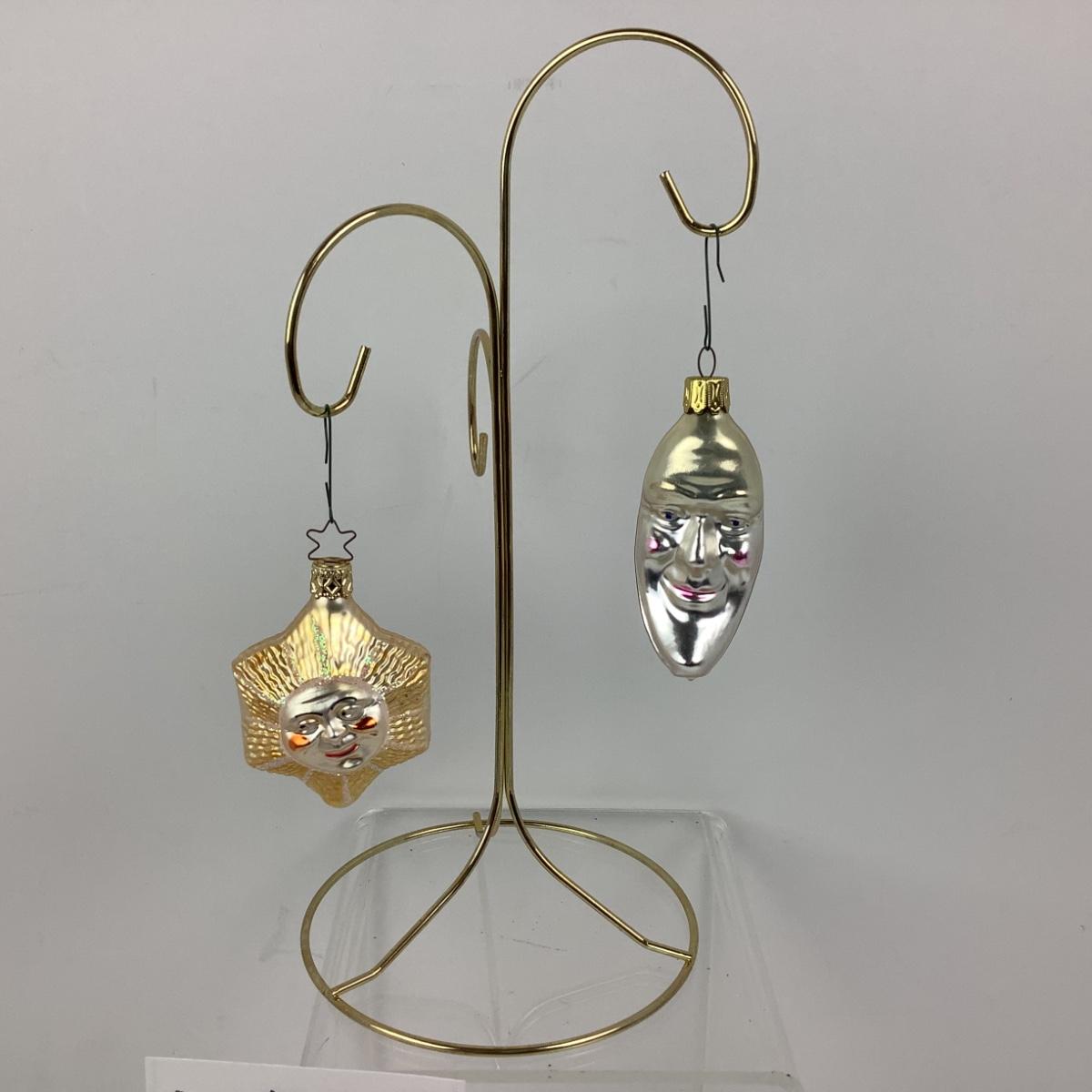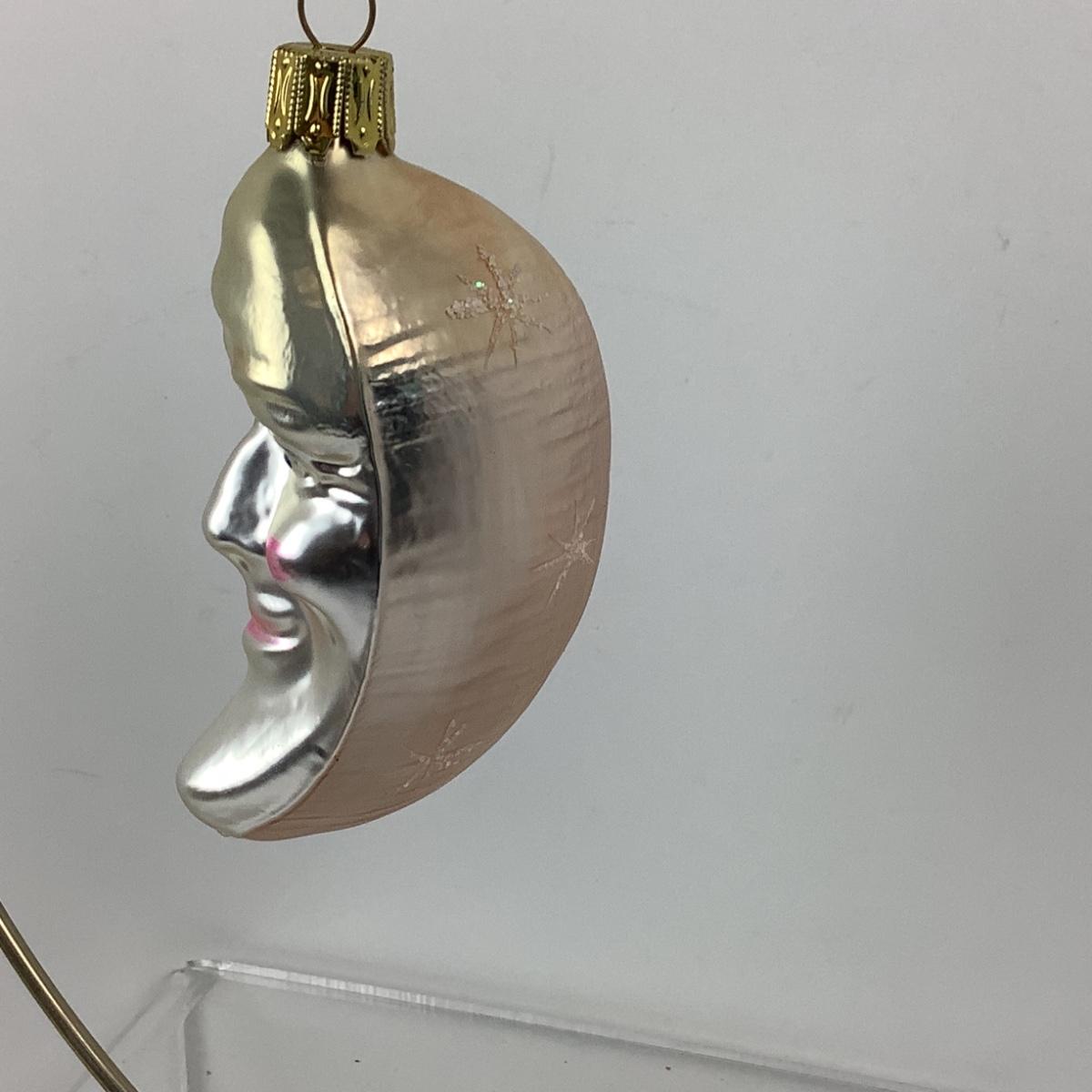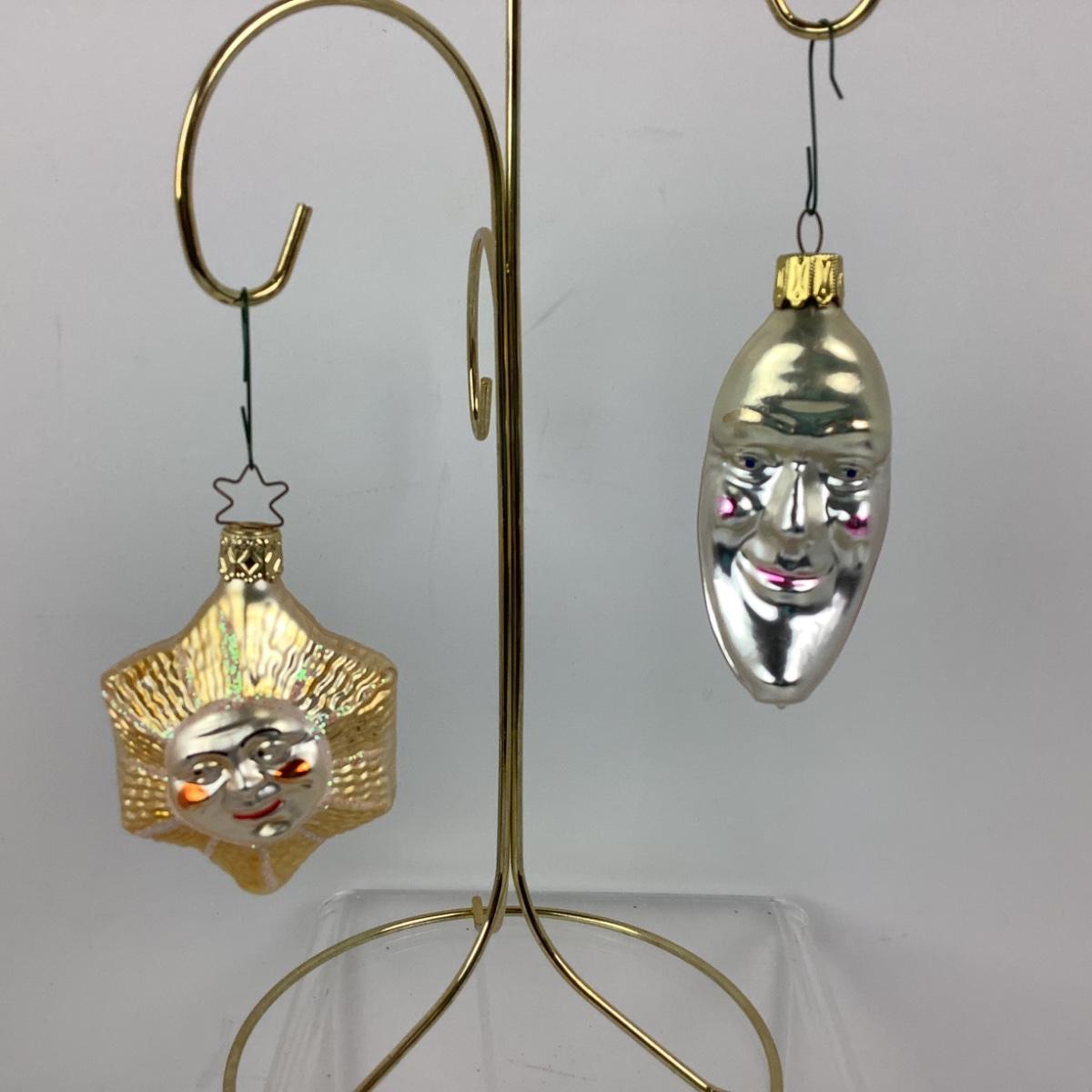 Vintage ANTHROPOMORPHIC Moon, Glitter Stars Christmas Ornament Face,