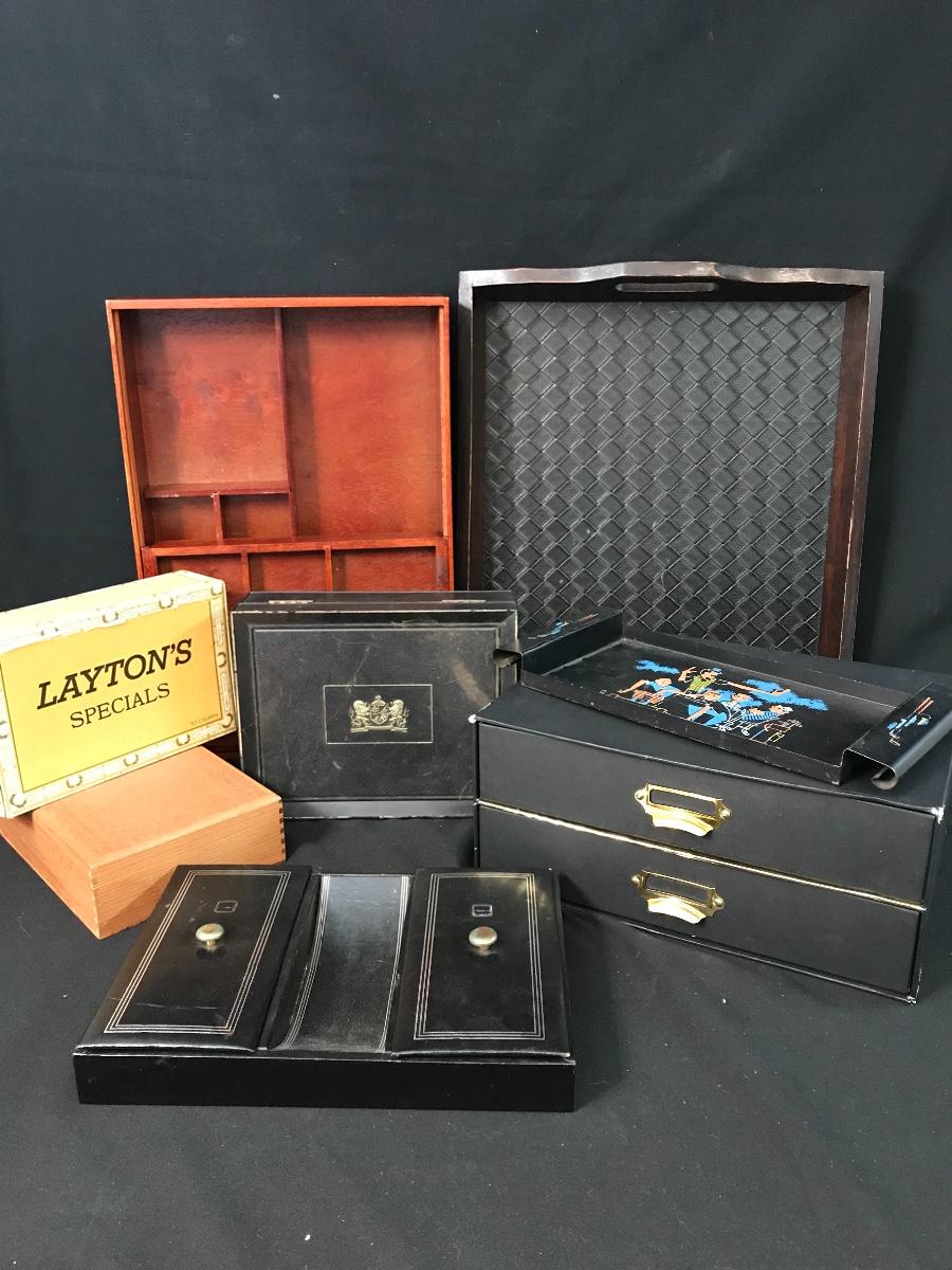 Wood Trays, Cigar Boxes & More. Please see all pictures as they are the best representation of the items. The pictures show condition, measurements if taken, and what is included in the lot. Due to the large amount that we photograph and the time frame, we are not always able to take measurements. All items unless noted, are pre-owned and have been used. If you purchased furniture, you must bring help. We do not allow one person to carry large furniture out on their own. Bring help, tools and a truck for the safety of our client’s homes, and your personal safety. Company policy. Thank you.