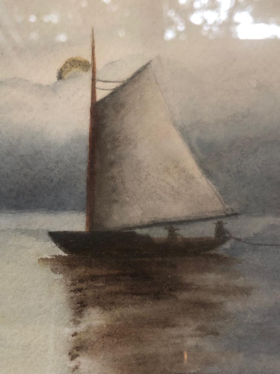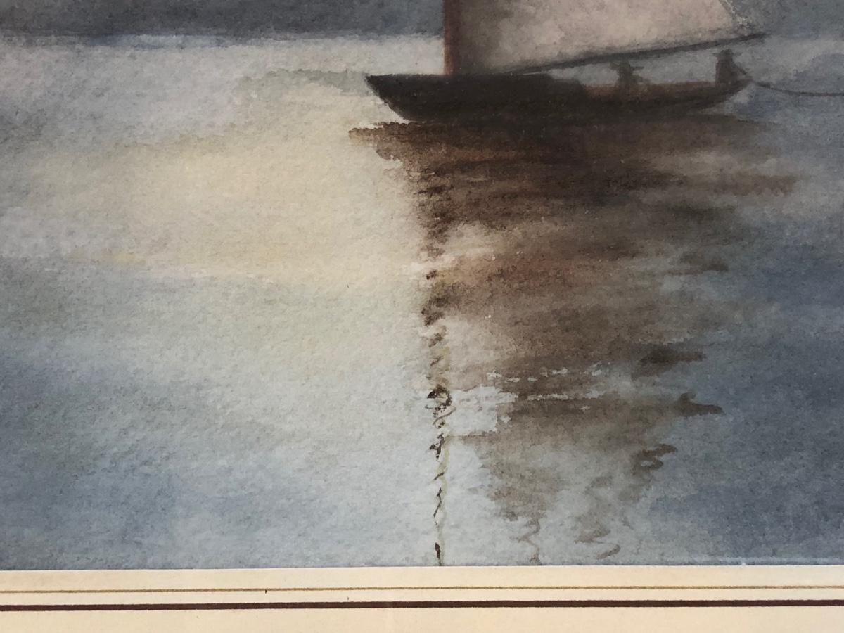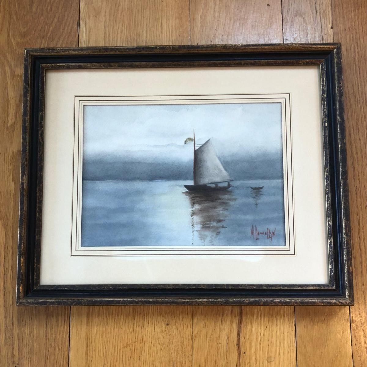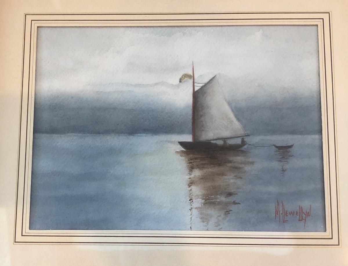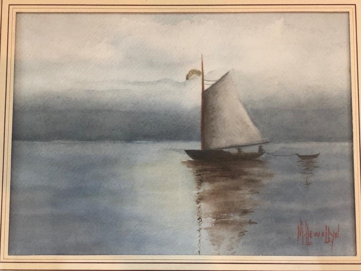 LOT 274F: Framed & Signed M Llewellyn Watercolor Sailboat Painting