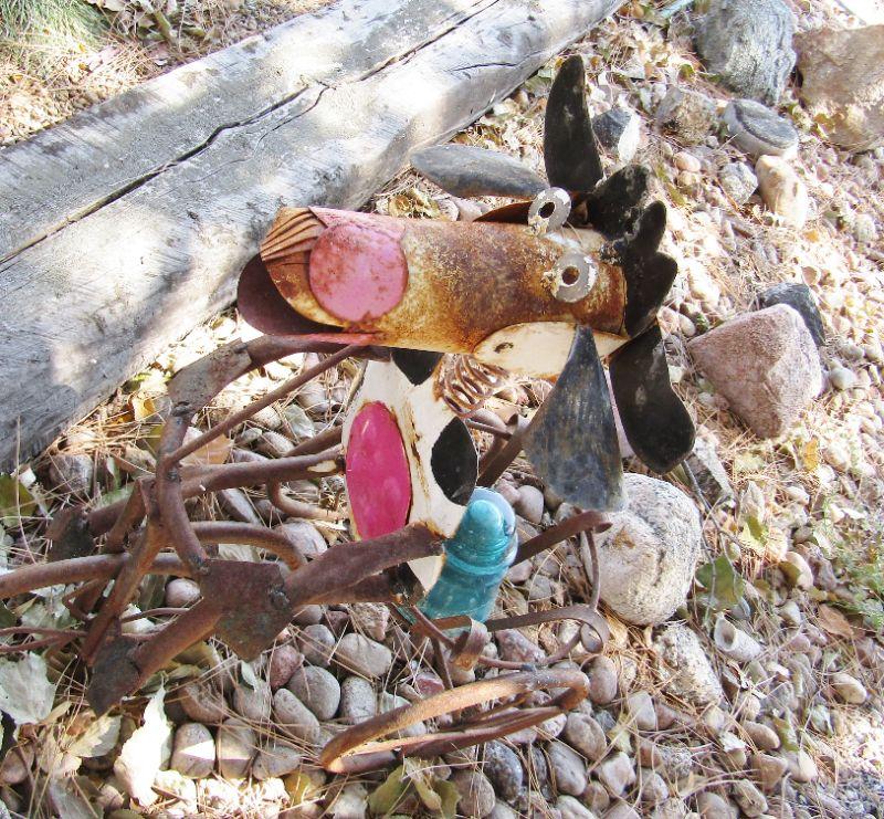 THIS CUTE PIECE OF YARD ART IS WEATHERED