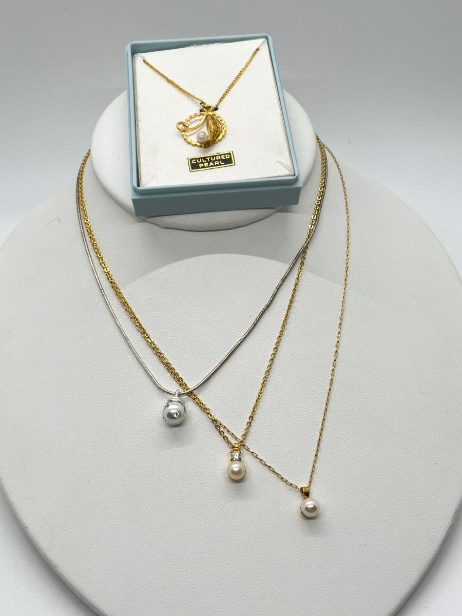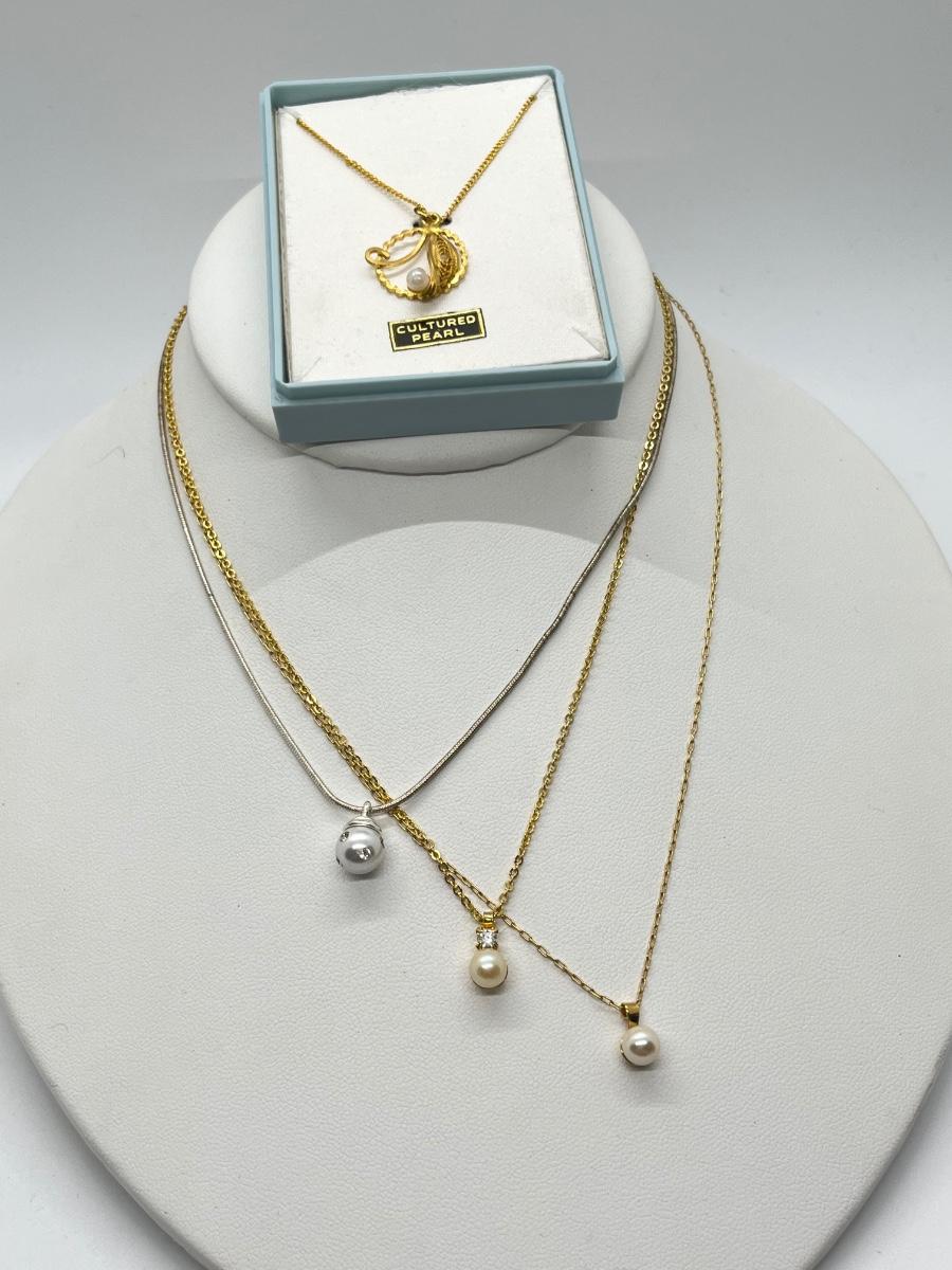 LOT 275: Two Single Pearl Necklaces - One Cultured Pearl Pendant - One Single Pearl Silvertone Necklace