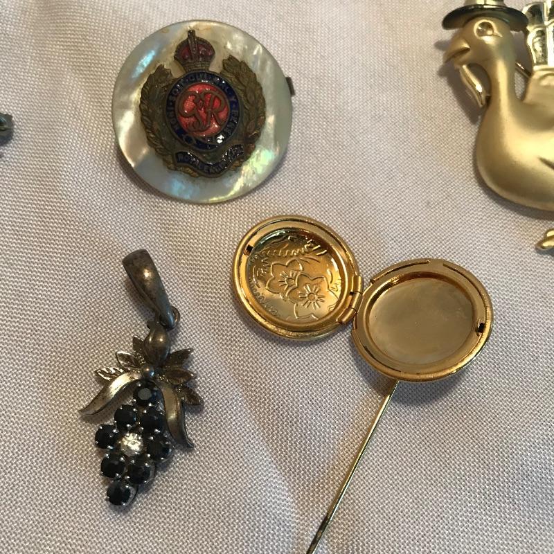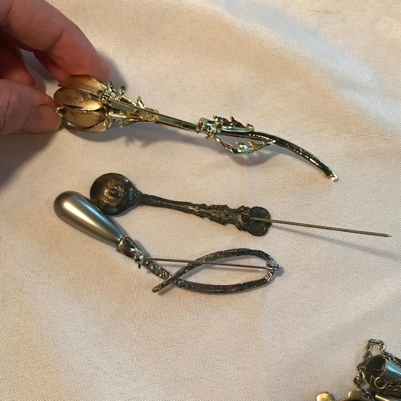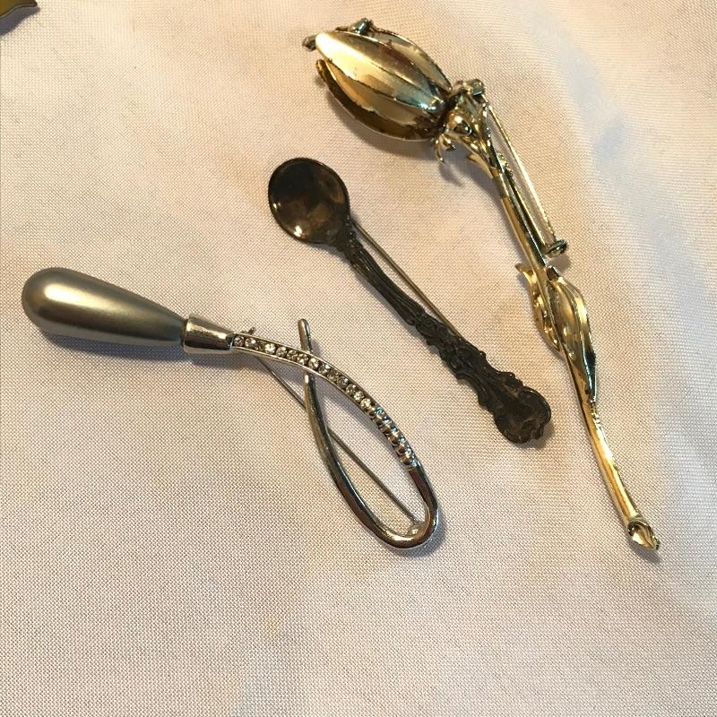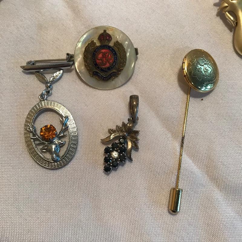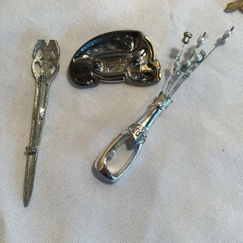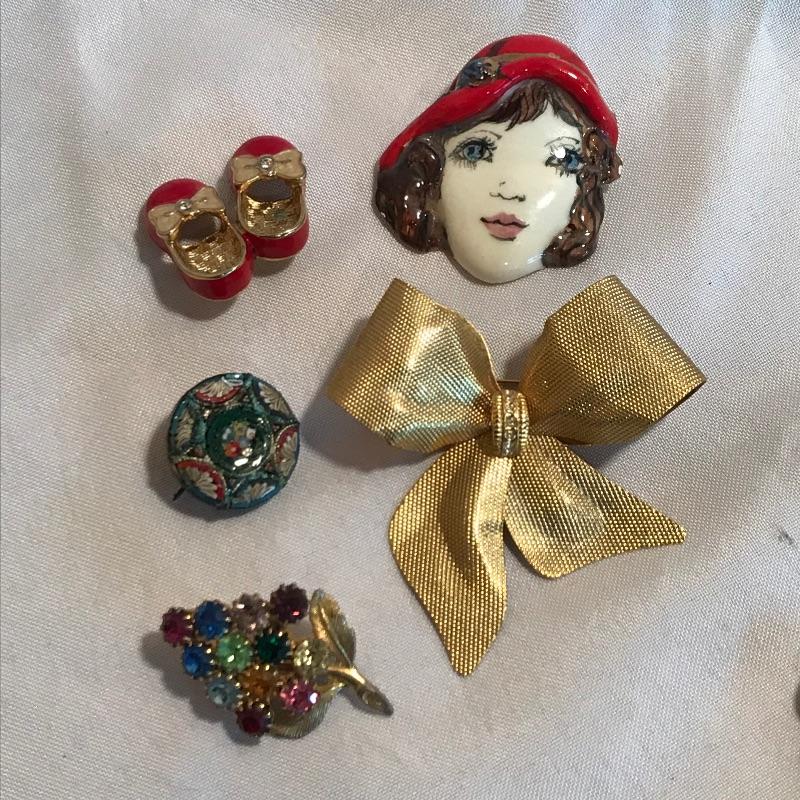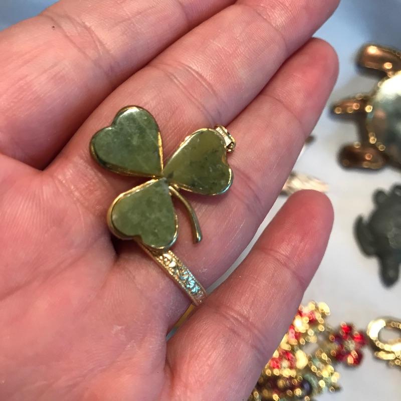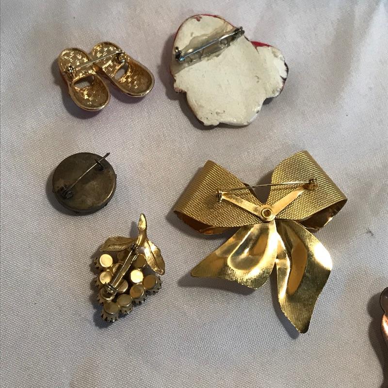 Full list to keep your wardrobe guessing. This collection is full of modern, classic, fun and holiday styles. There are three pieces that have sterling or 925 markings, a frog and turtle with stones and the clips with abalone style shell accents. All white gems were tested and did not register as diamonds or moissanite. There is a lot of personality here with plenty of turtles and elephants, materials range from metal, shell and even resin. See photos. Shipping available.
