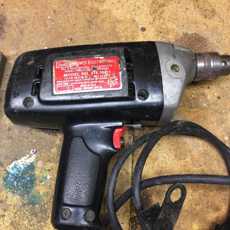 Craftsman 3/8” Drill with drill bits. Drill works but sheathing around cord is worn-See pictures.