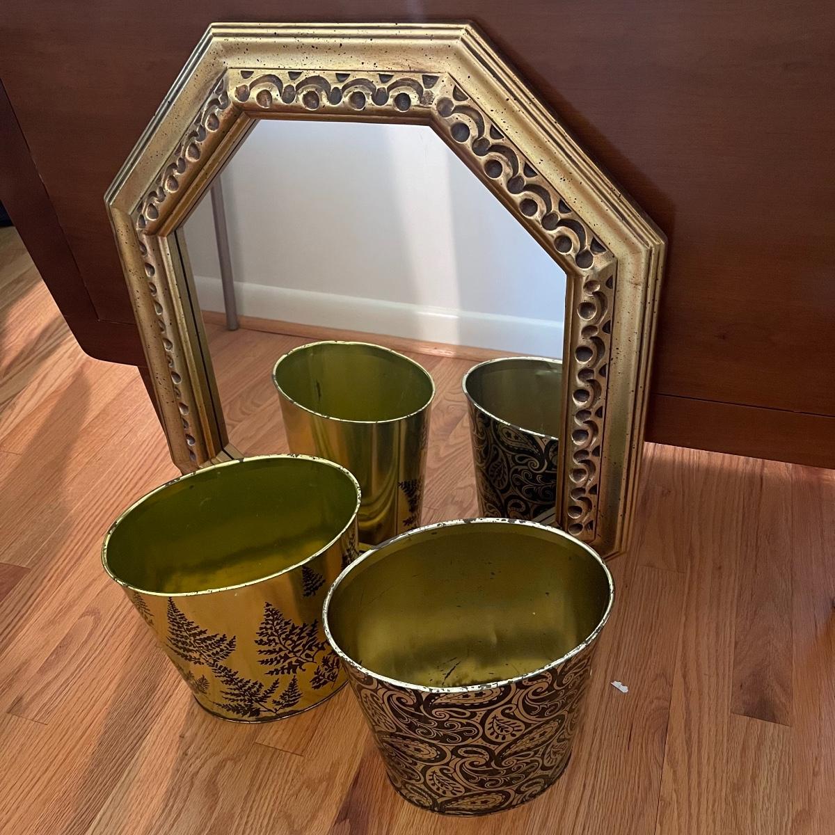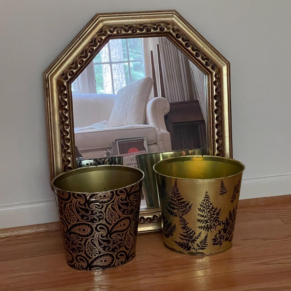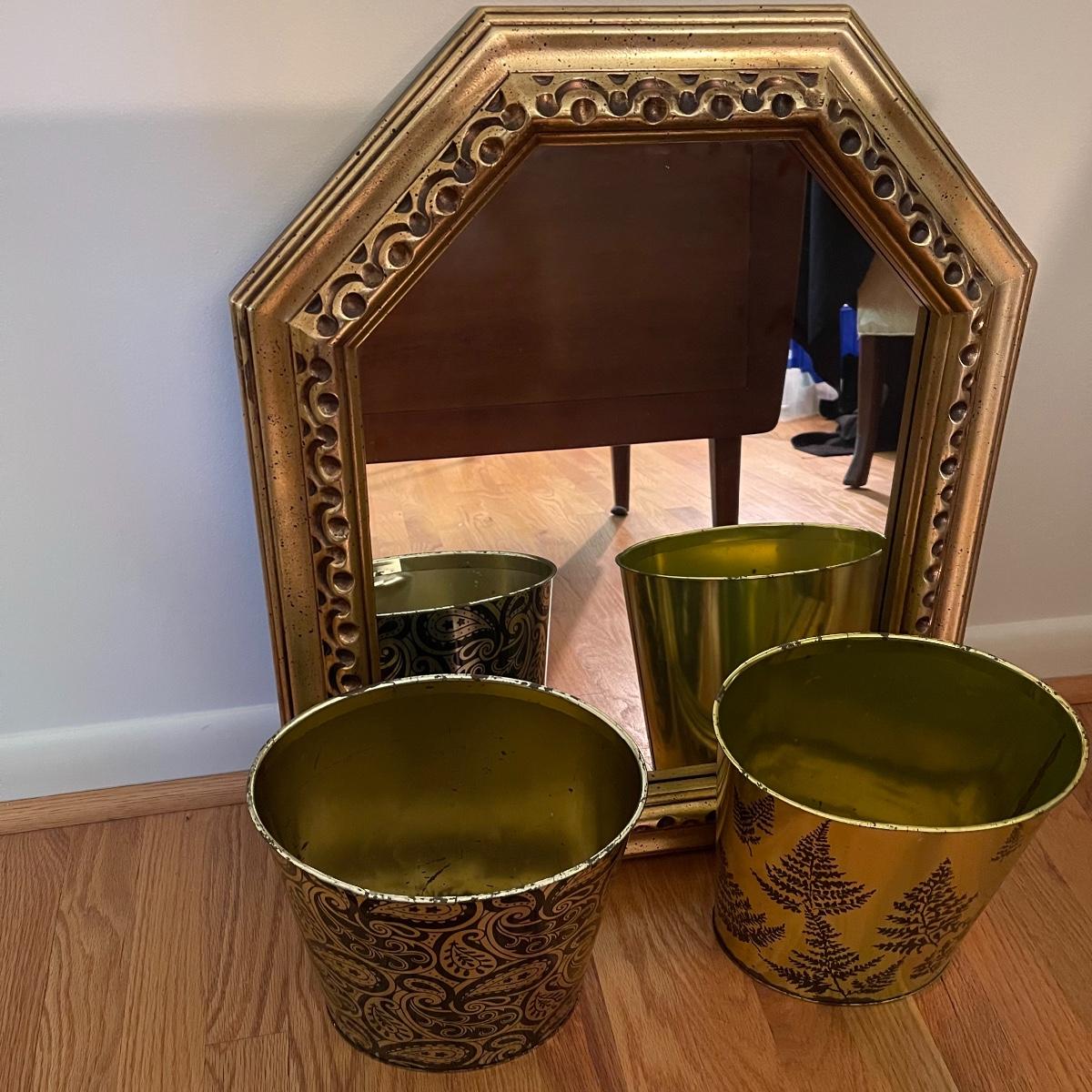 Lot 275 - Gold Mirror & Gold Trash Cans