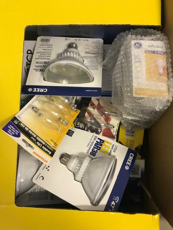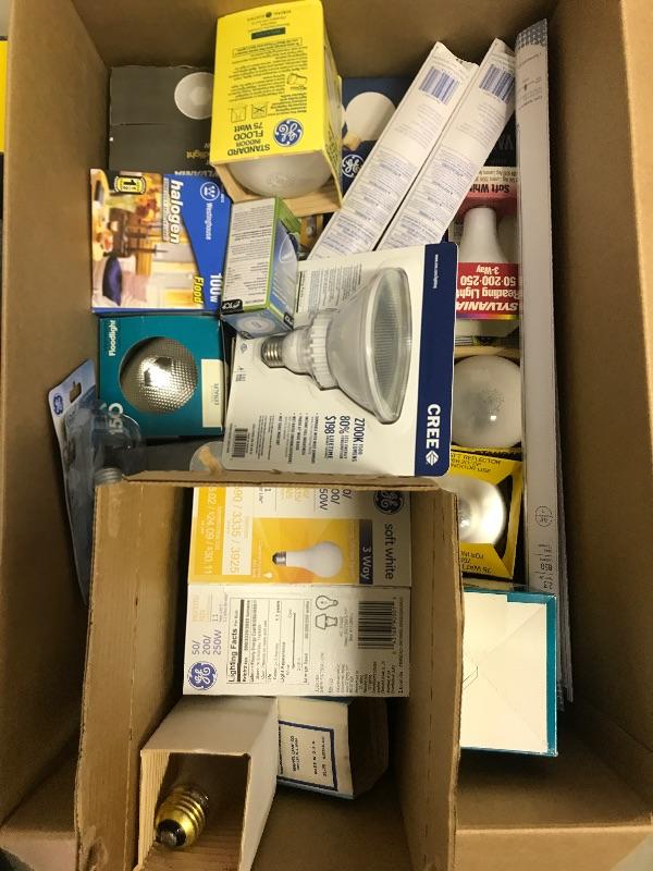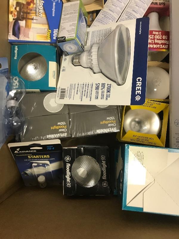 Large lot of lightbulbs. Floodlight bulbs, Nite lite bulbs, 3 way bulbs, Sylvania, Westinghouse, Cree and more
