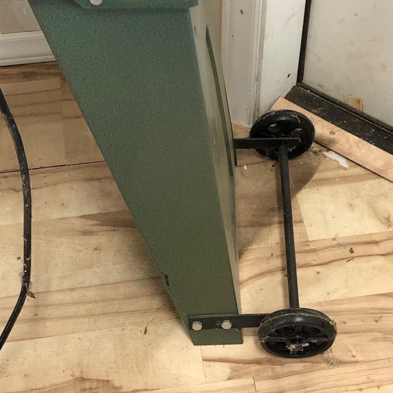 workshop. It is both sturdy yet easy to move with a handle on one end and a set of hard plastic wheels on the other.