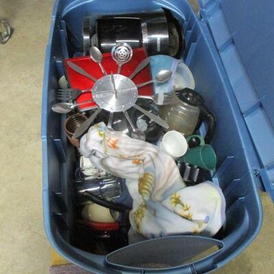 Lot 275 - Storage Container Of Kitchen Items & Microwave