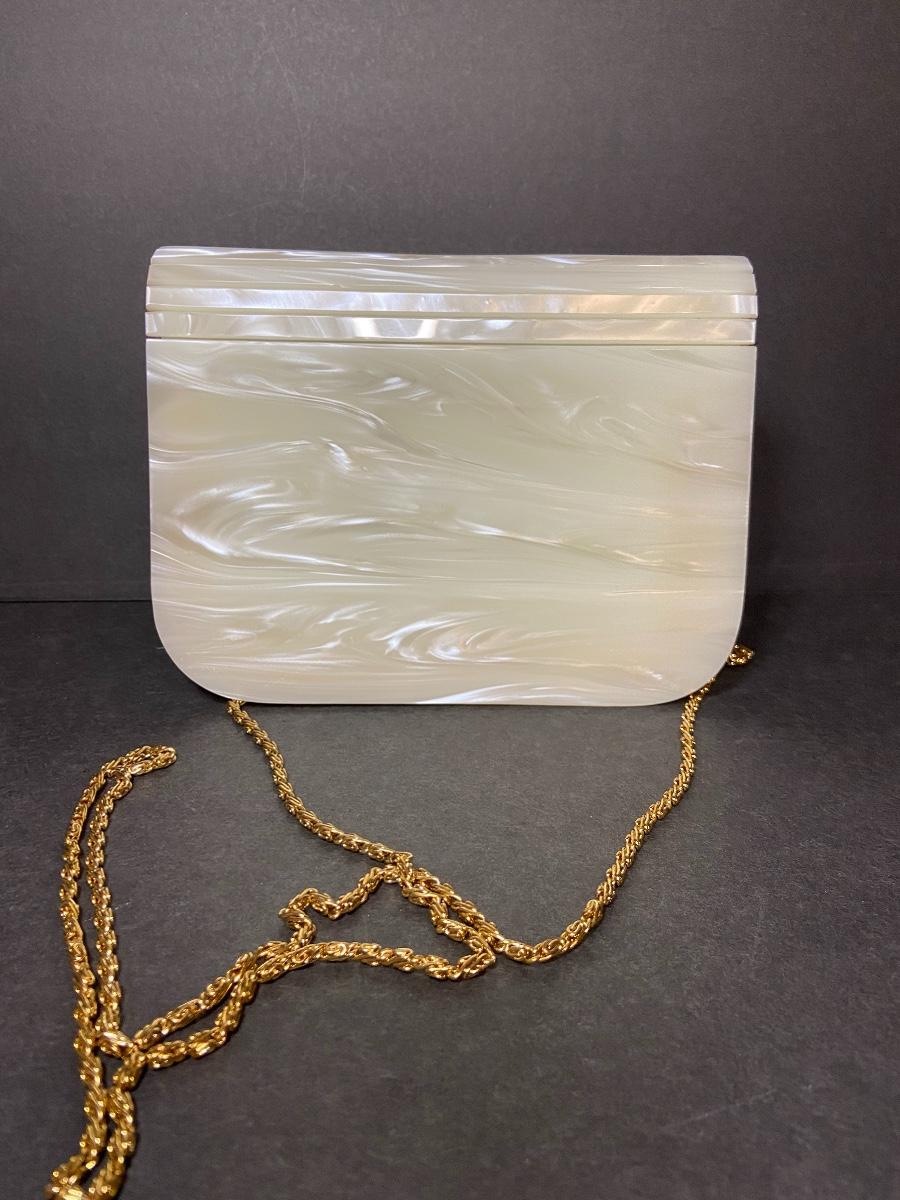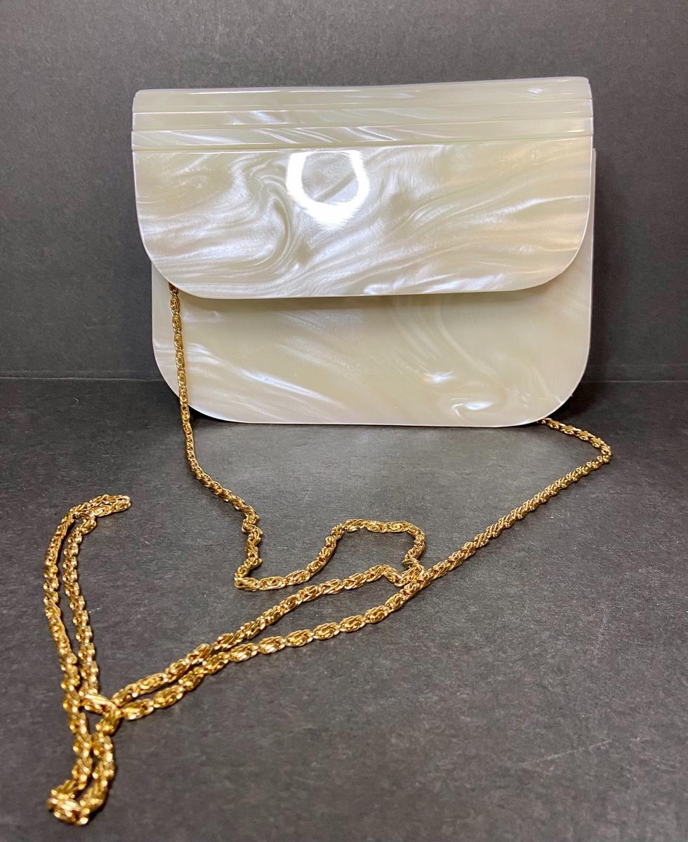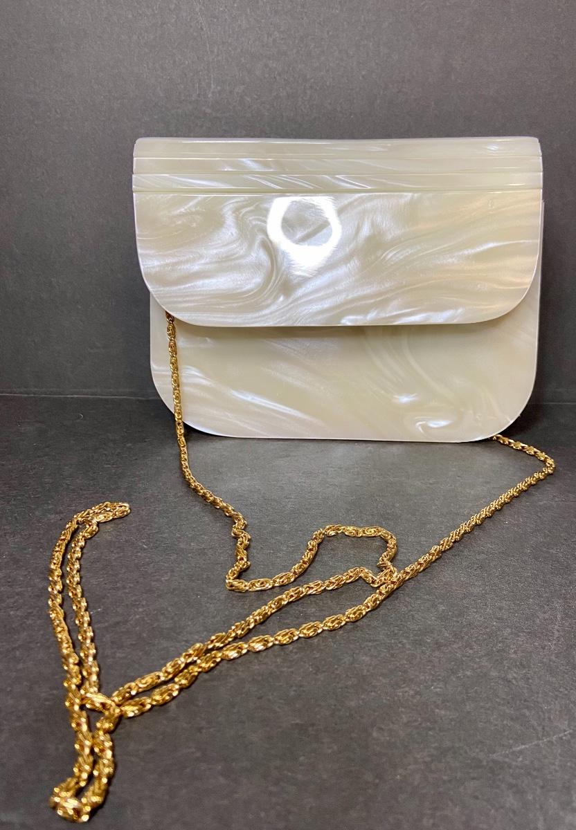 Lot 275: Vintage Lisette Marble/Lucite Clutch/Handbag (Straps Inside)