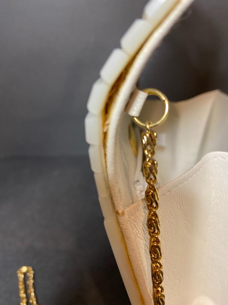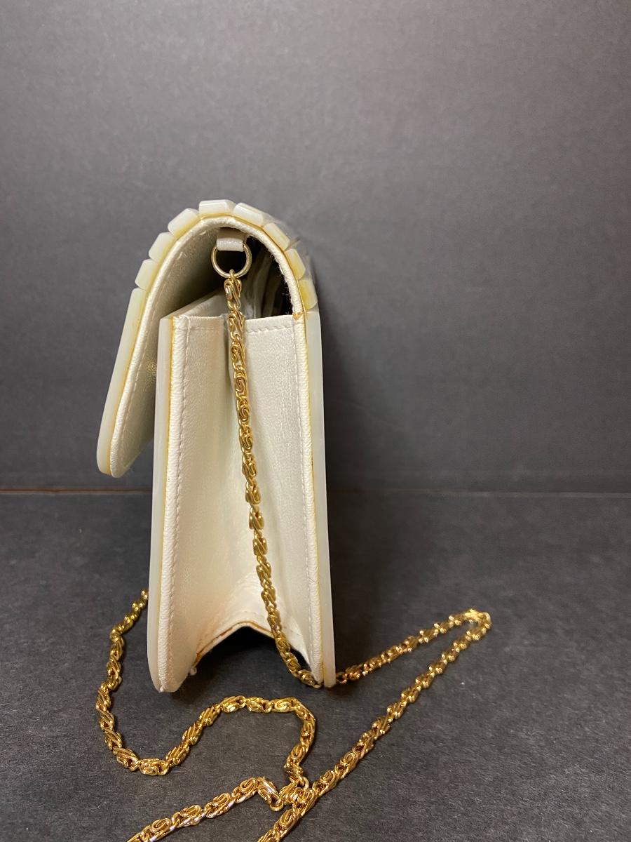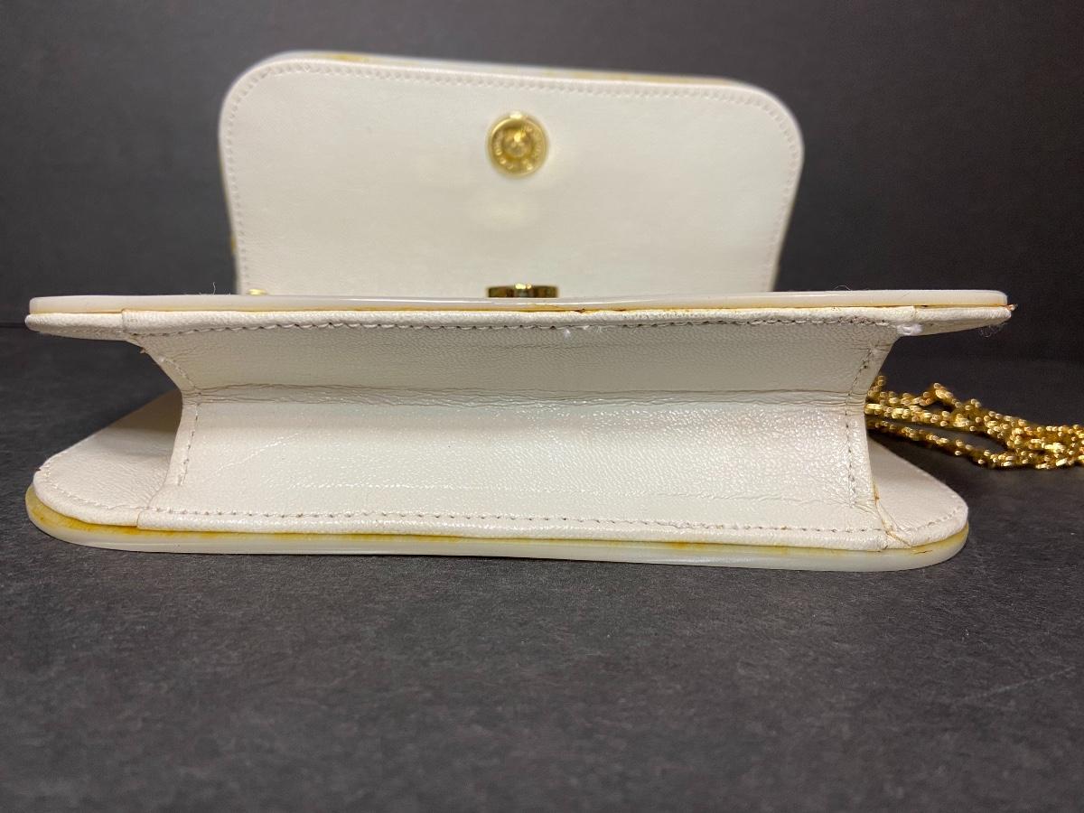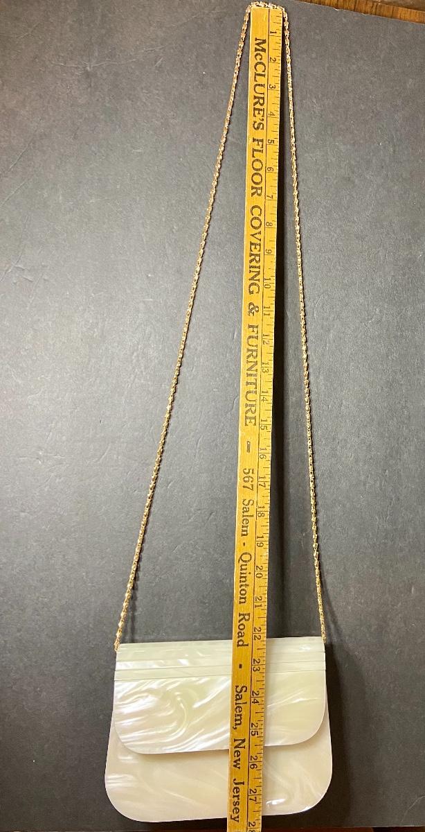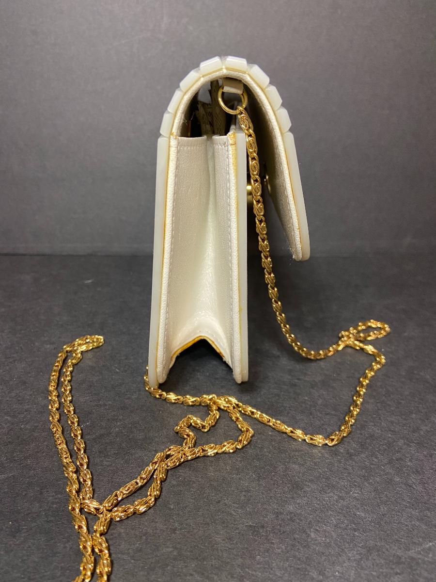 This vintage handbag comes in it's original box. The exterior hard shell is most likely lucite. This can be carried like a clutch with handles inside or out it is a shoulder handbag. Please see all pictures as they are the best representation of the items. The pictures show condition, measurements if taken, and what is included in the lot. Due to the large amount that we photograph and the time frame, we are not always able to take measurements. All items unless noted, are pre-owned and have been used. If you purchased furniture, you must bring help. We do not allow one person to carry large furniture out on their own. Bring help, tools and a truck for the safety of our client’s homes, and your personal safety. Company policy. Thank you
