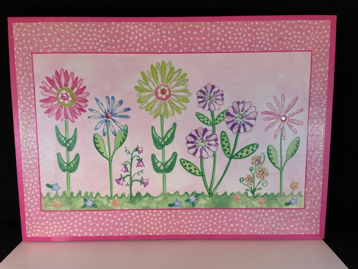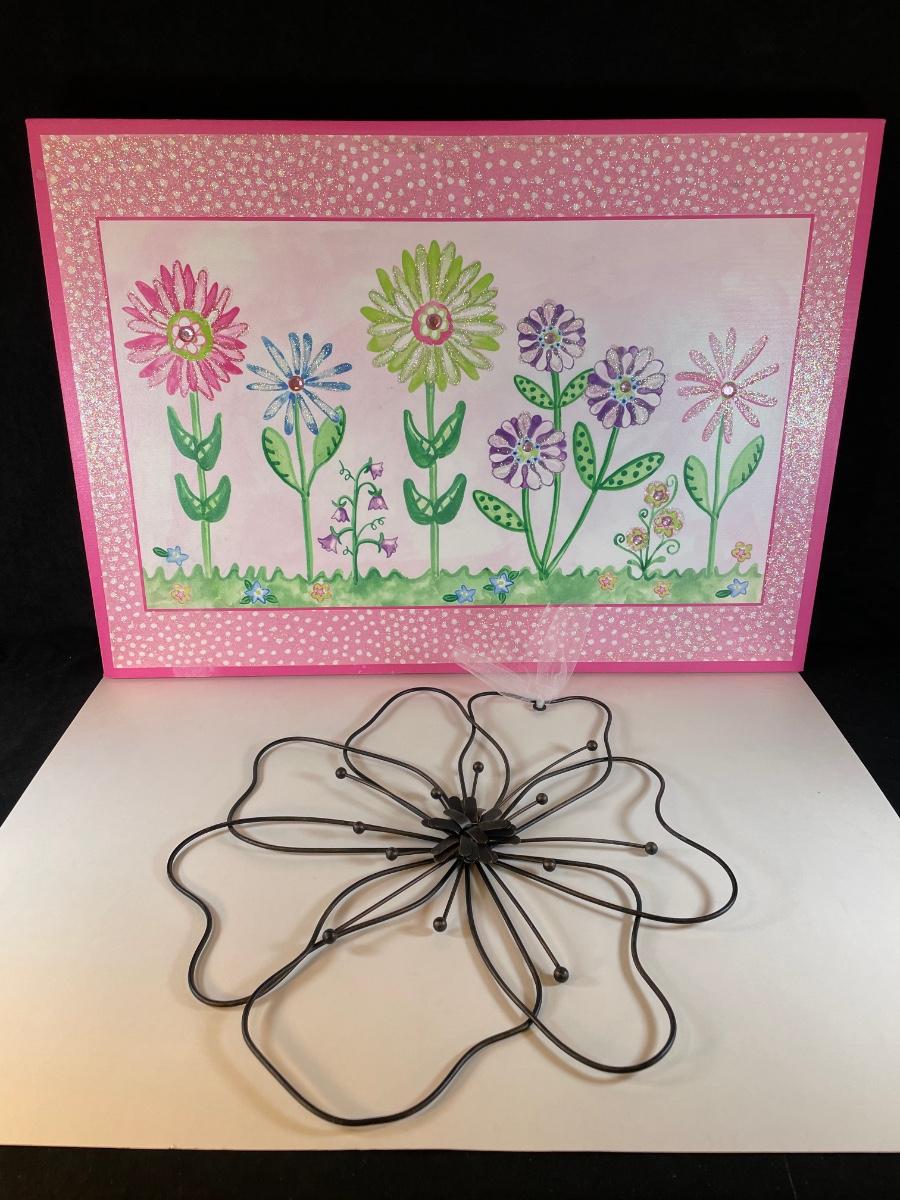 Juvenile girl's canvas print 28"w X 20" hi. and metal flower wall sculpture