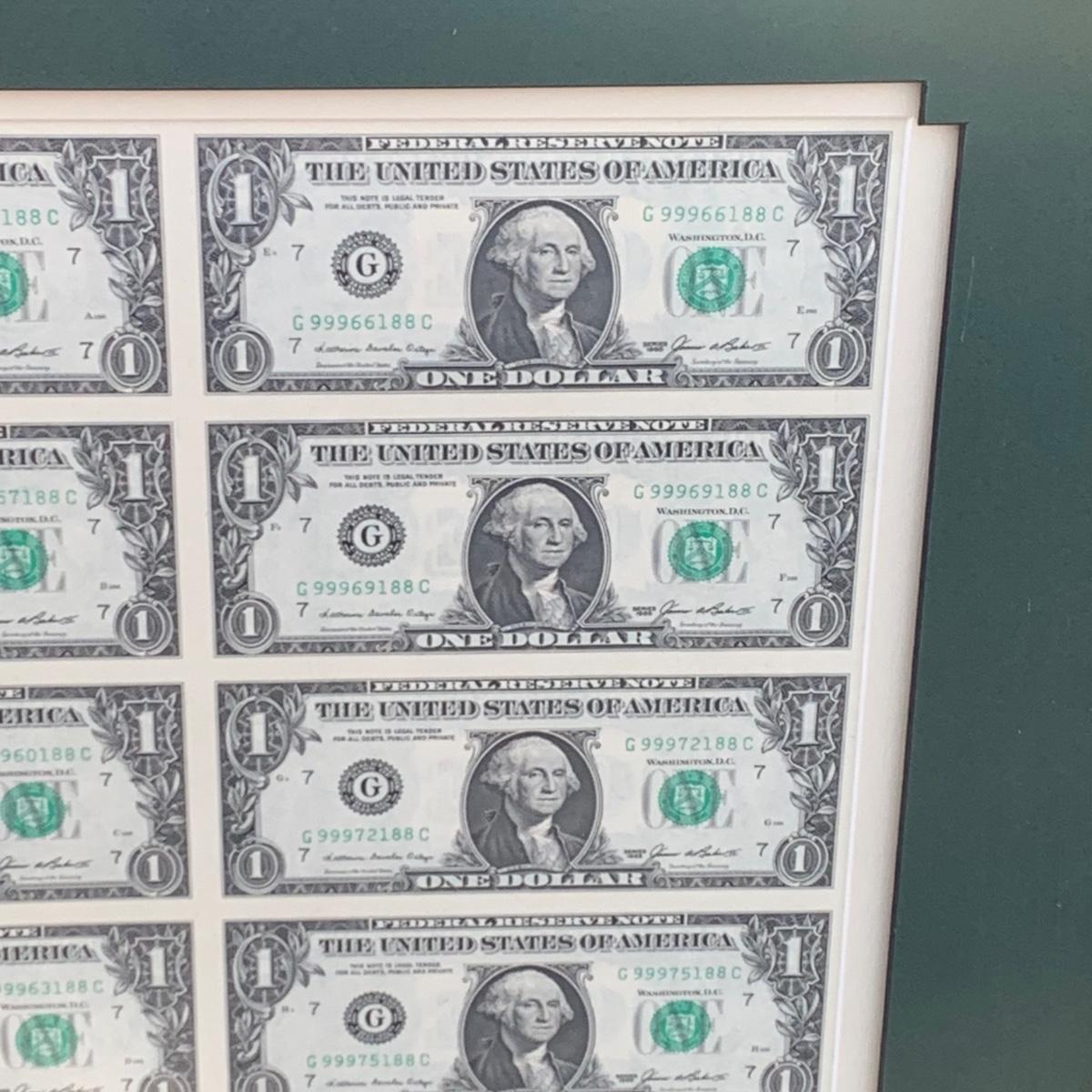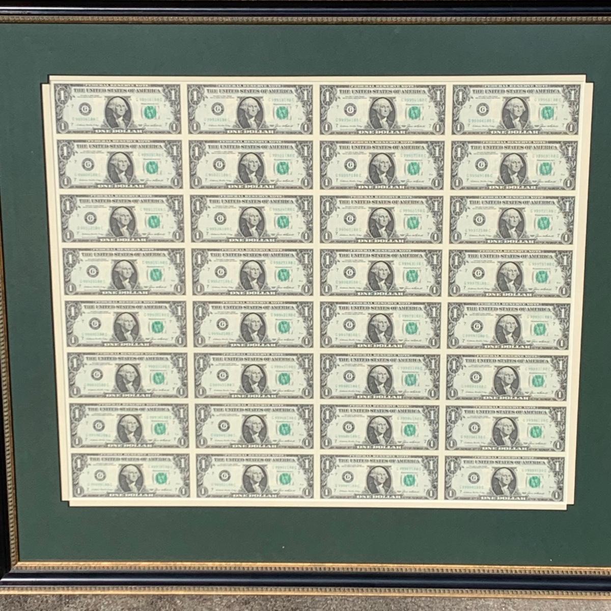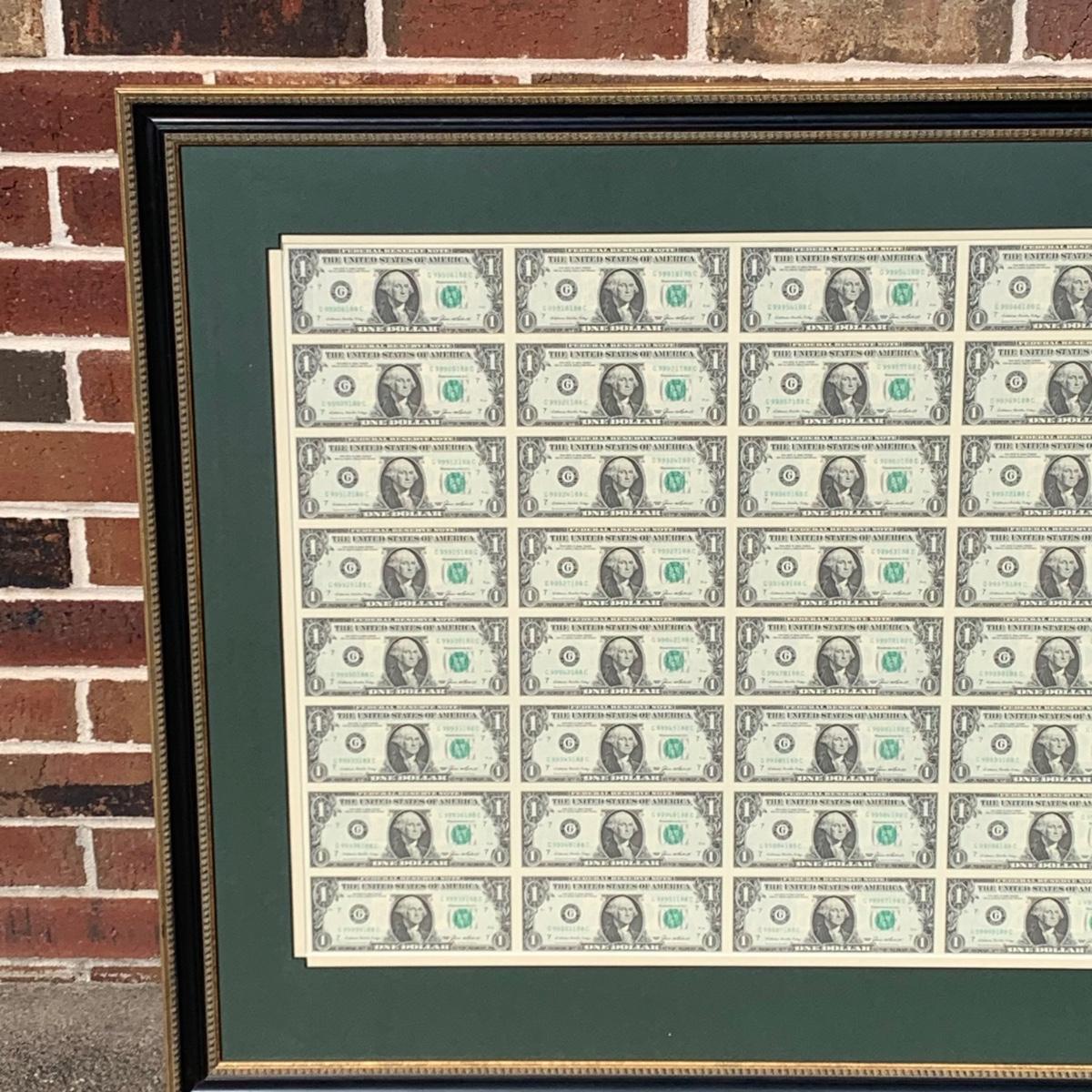 Lot 275R: Framed Uncut Sheet  Dollar Bills