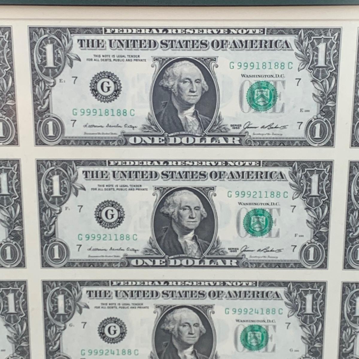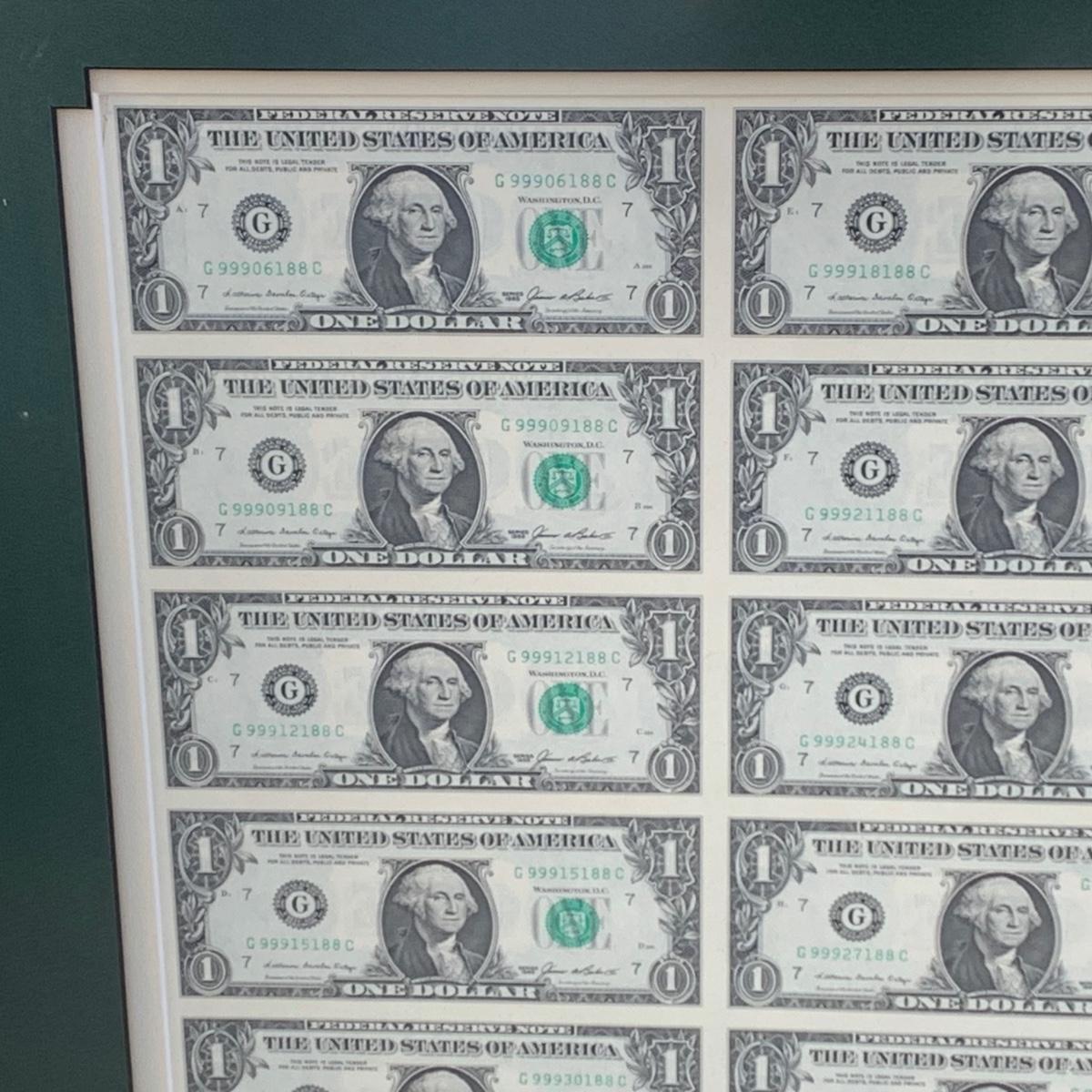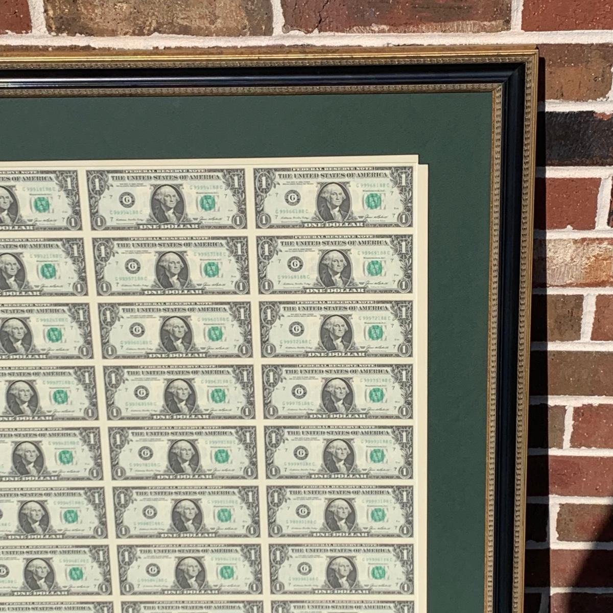 Lot 275R: Framed Uncut Sheet  Dollar Bills