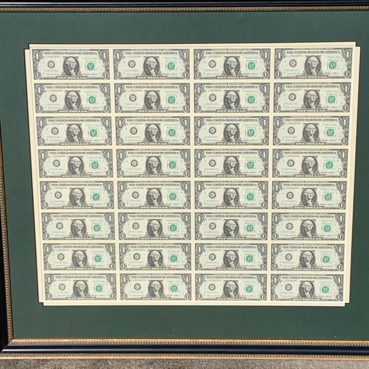 Lot 275R: Framed Uncut Sheet Dollar Bills