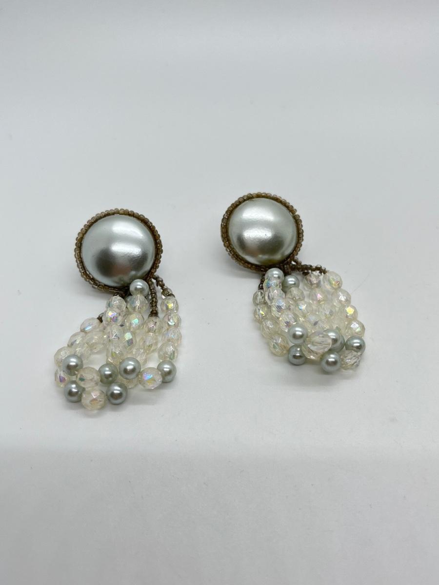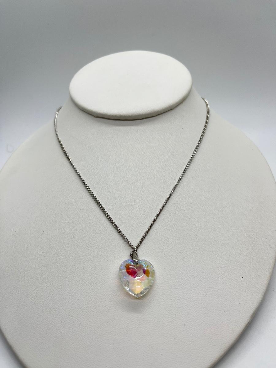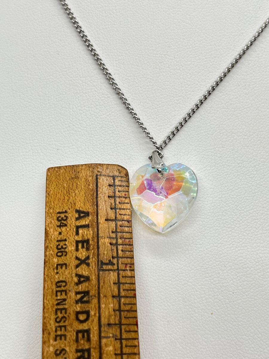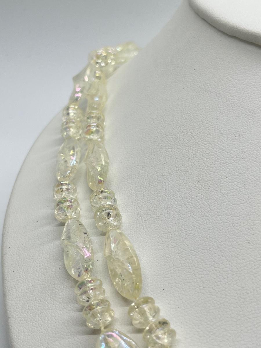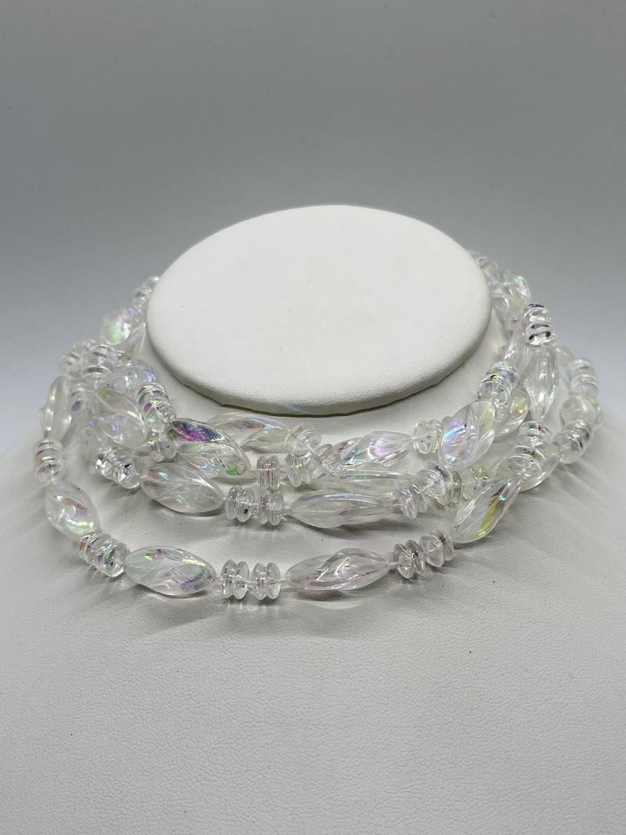 LOT 276: Two Long Iridescent Beaded Necklaces + Matching Earrings - One Iridescent Heart Pendant