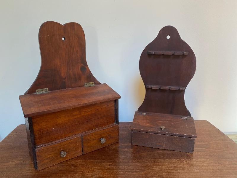 Antique handmade in Massachusetts Candlebox and flatware wall shelves/holders