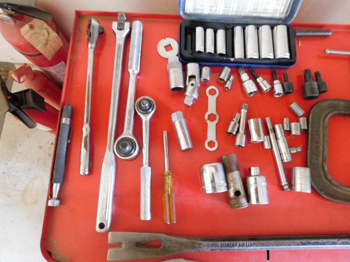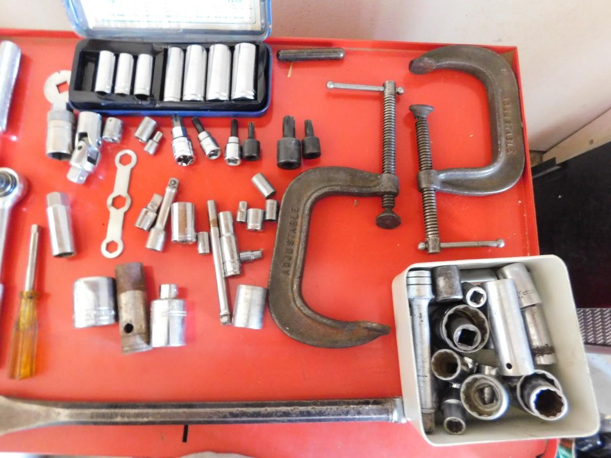 LOT 276 ASSORTMENT OF RATCHETS AND SOCKETS, CLAMPS AND PRY BAR