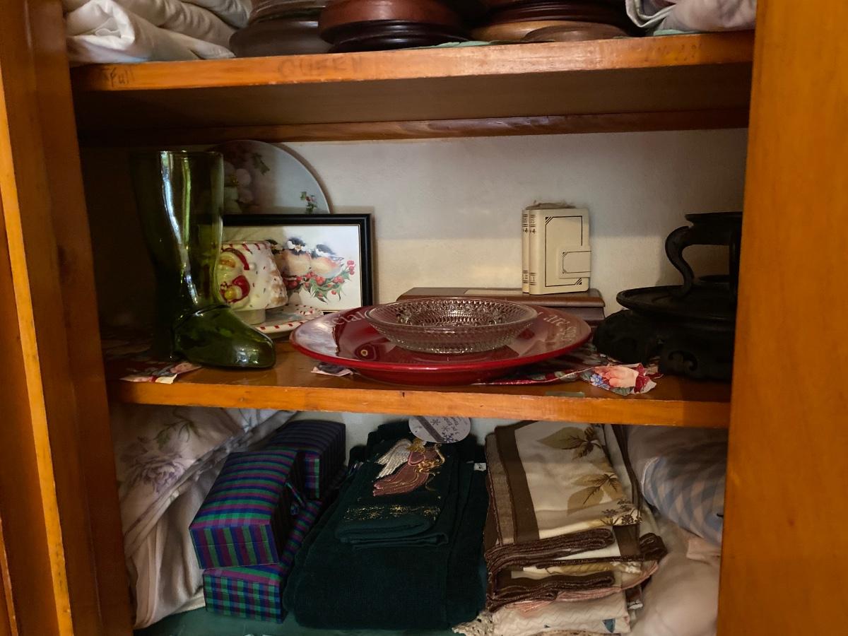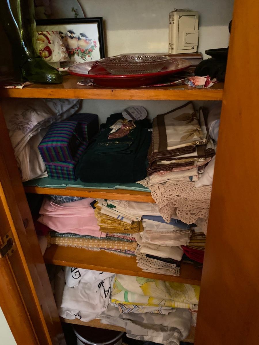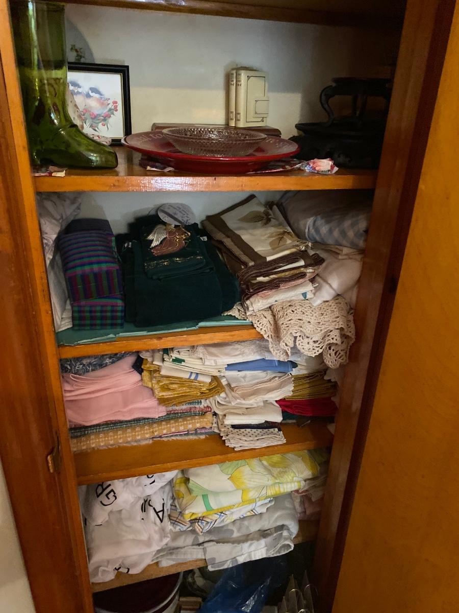 Contents include sheets, towels, doilies, blankets, small glassware, vases and more. Please see all pictures as they are the best representation of the items. The pictures show condition, measurements if taken, and what is included in the lot. Due to the large amount that we photograph and the time frame, we are not always able to take measurements. All items unless noted, are pre-owned and have been used. If you purchased furniture, you must bring help. We do not allow one person to carry large furniture out on their own. Bring help, tools and a truck for the safety of our client’s homes, and your personal safety. Any damages that result to the property including walls, and floors due to moving of the furniture will be charged to the buyer. Company policy. Thank you.